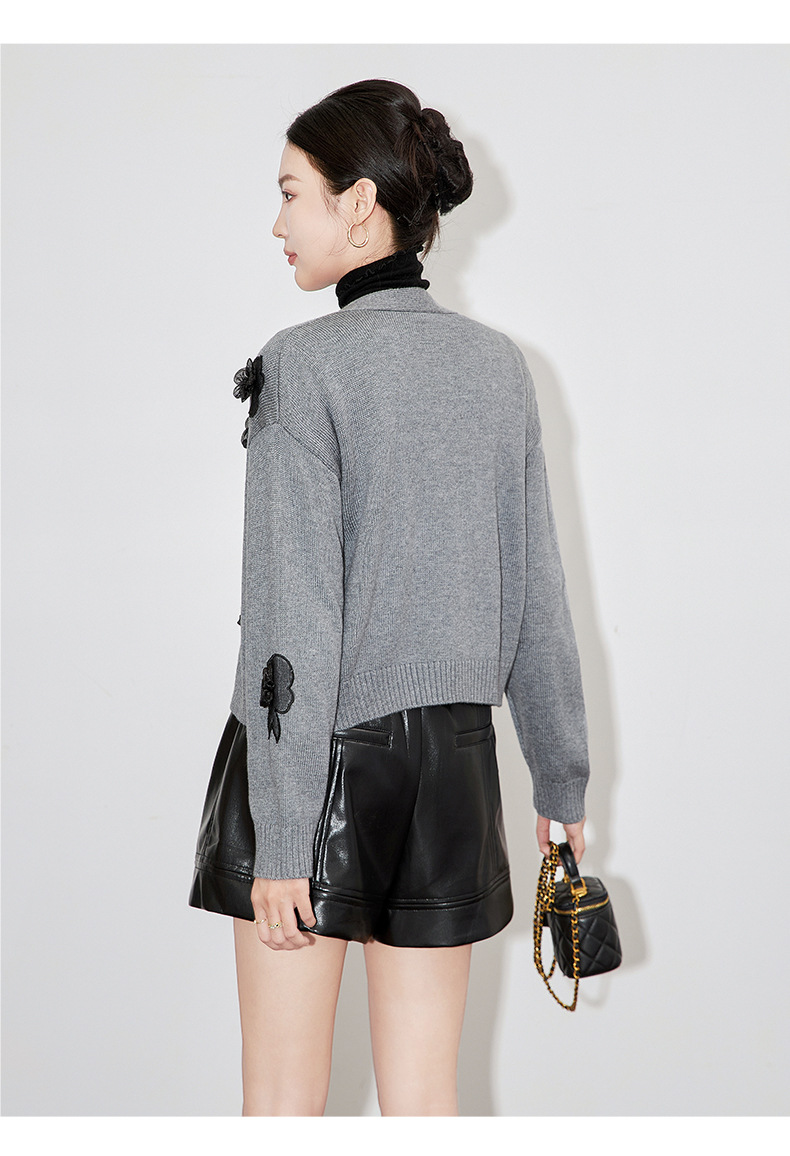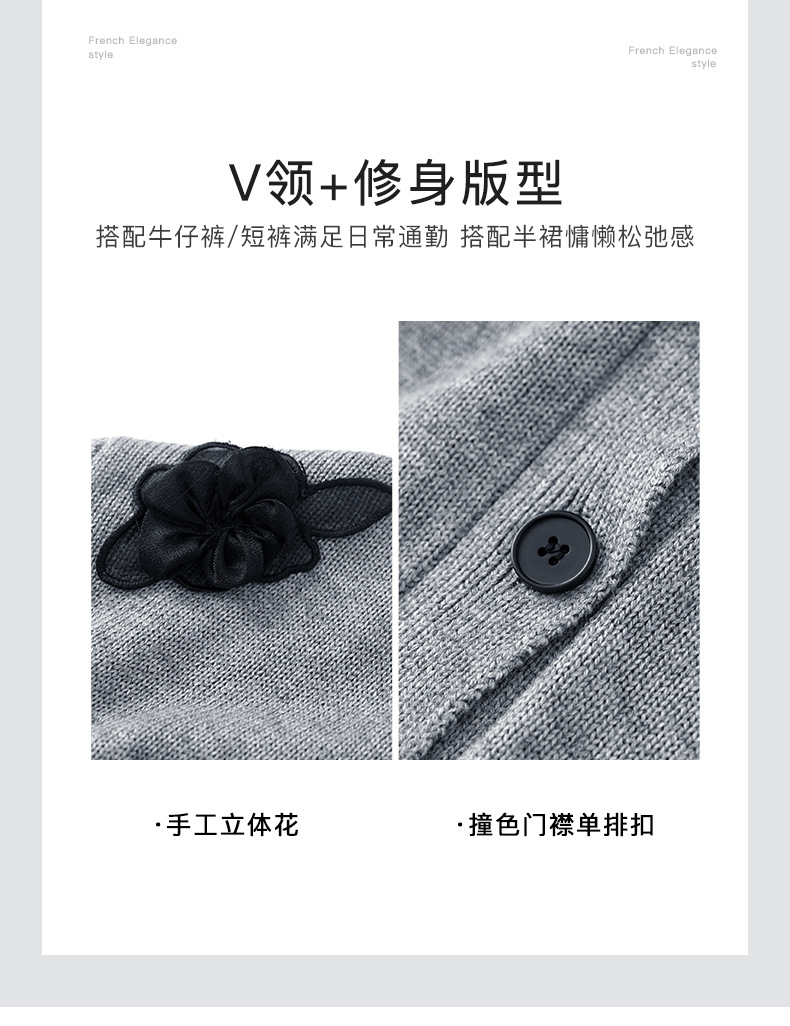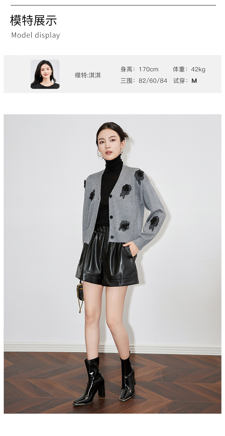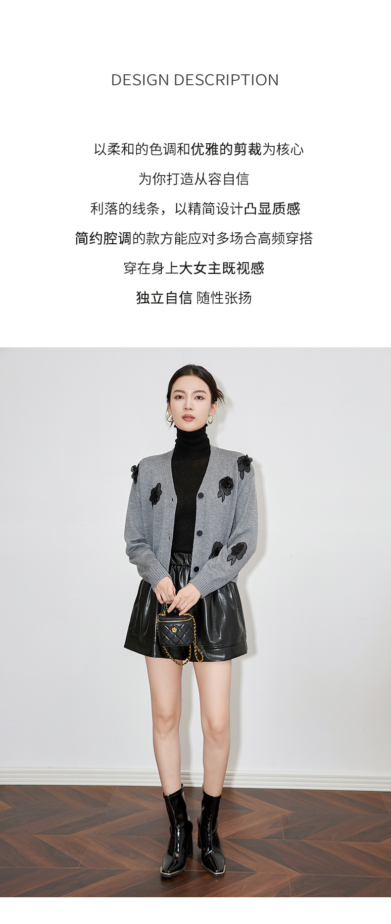 【高货】全新升级【铂金会员220/天猫299/差价79】(03442) 洛诗琳秋季重工设计感手工立体花朵针织开衫毛衣外套女