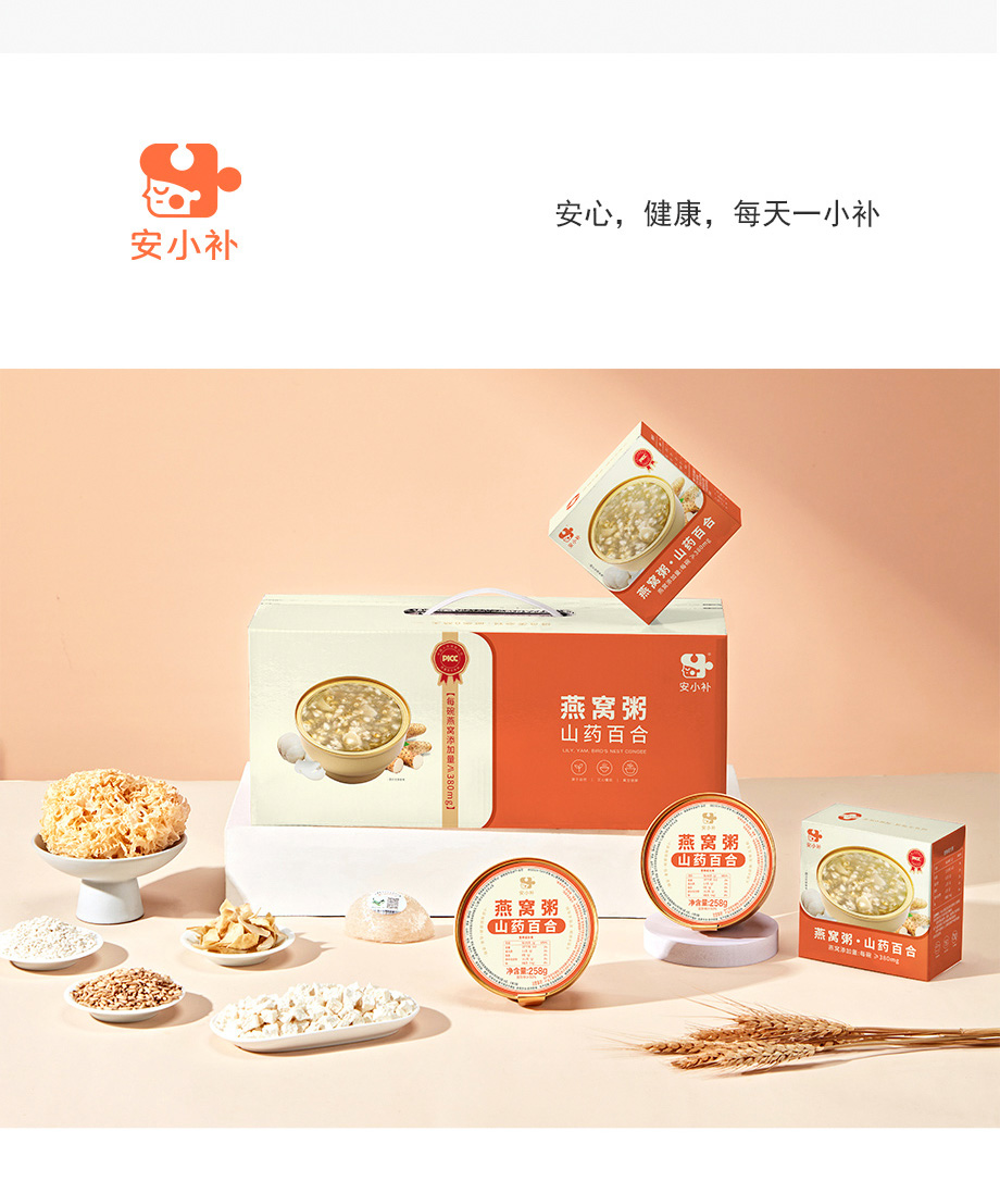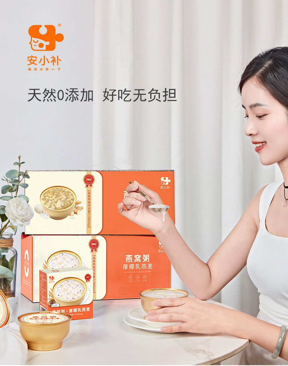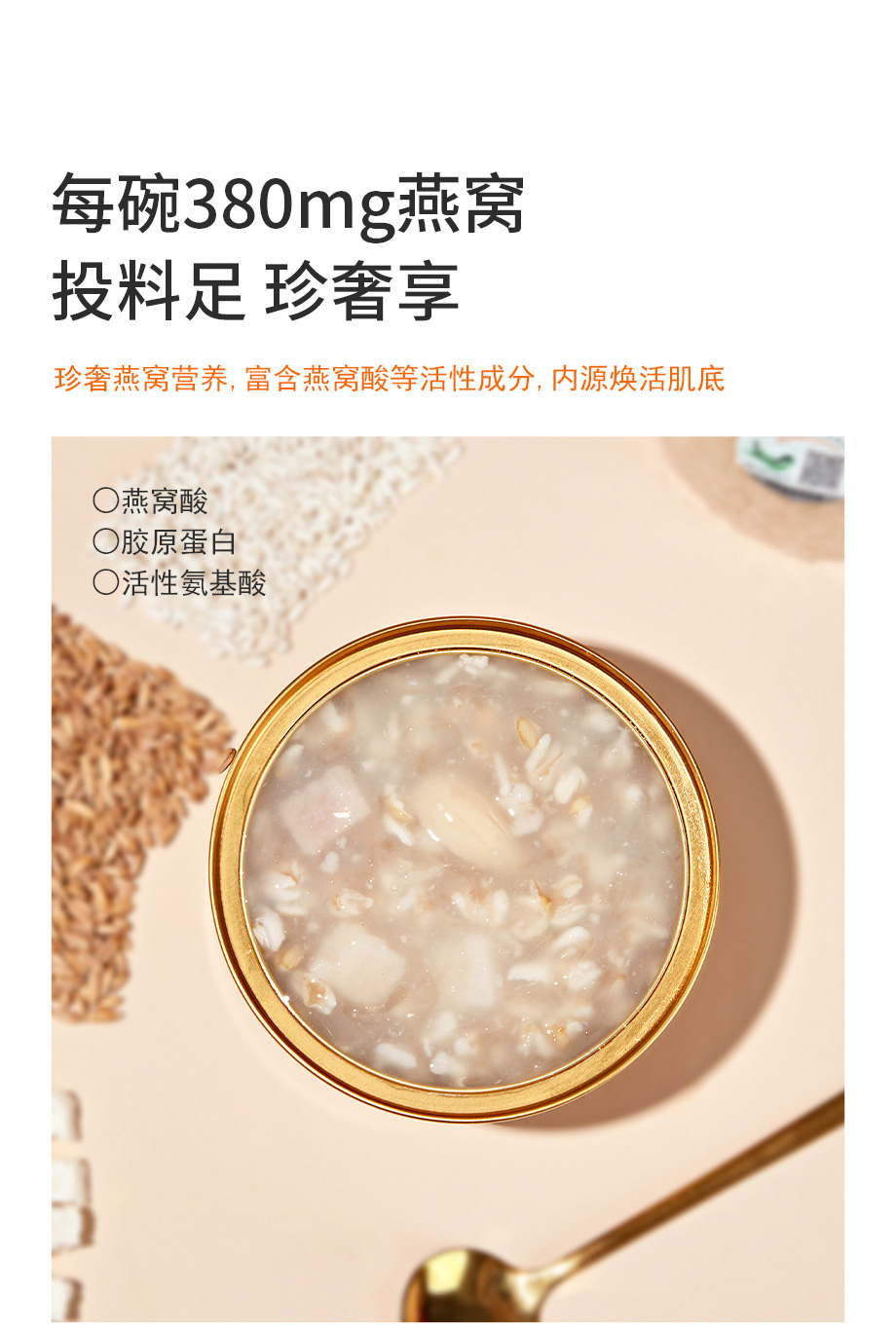 每碗添加380mg进口马拉西亚金丝燕燕窝 | 安小补·厚椰乳燕麦/山药百合燕窝粥 ,固形物含量≧50%,开盖即食