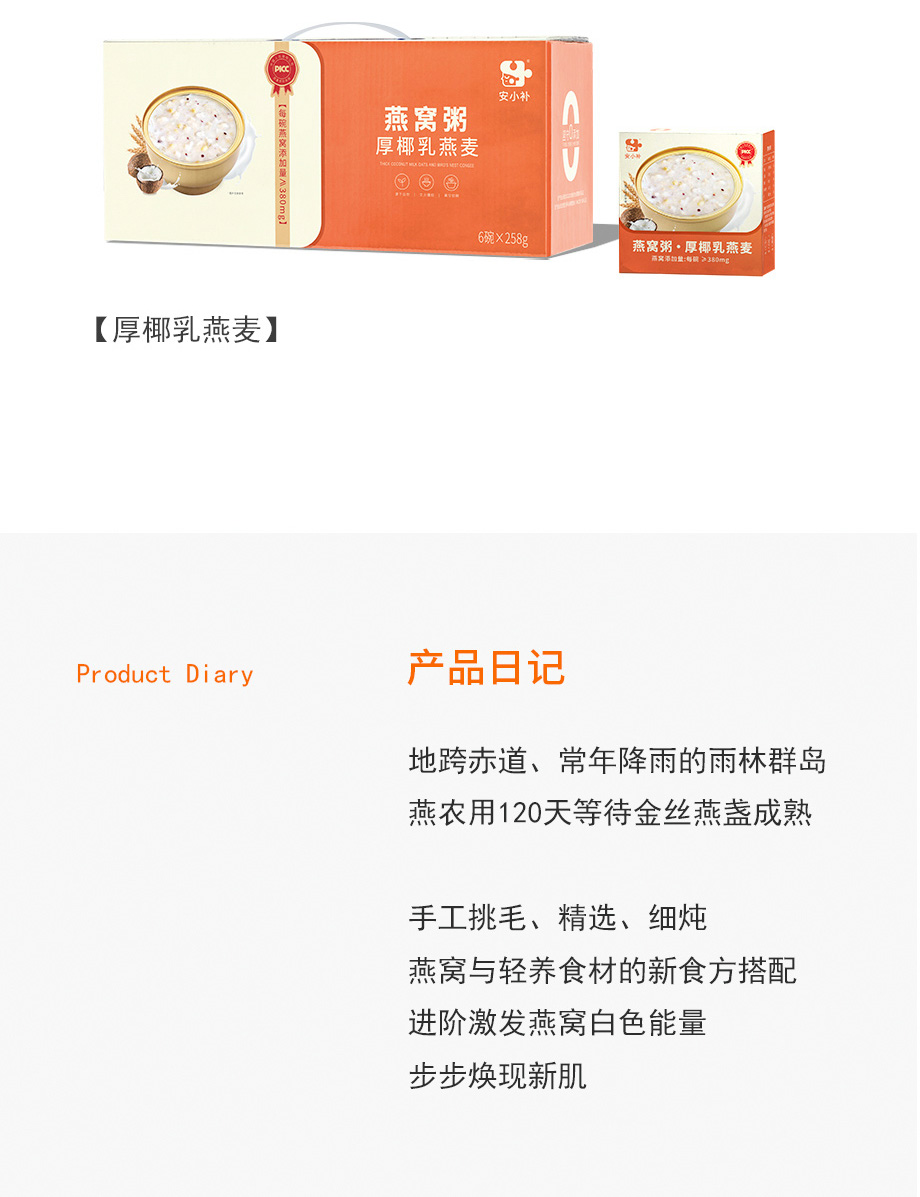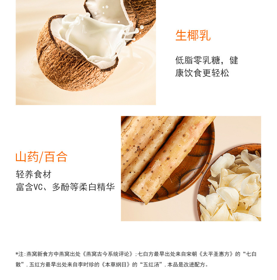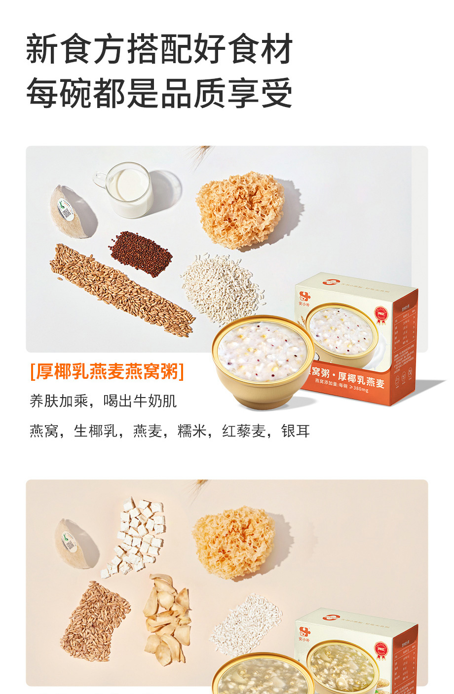 每碗添加380mg进口马拉西亚金丝燕燕窝 | 安小补·厚椰乳燕麦/山药百合燕窝粥 ,固形物含量≧50%,开盖即食