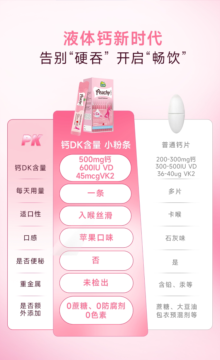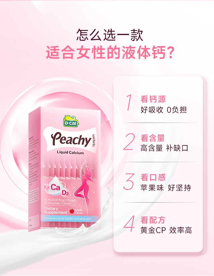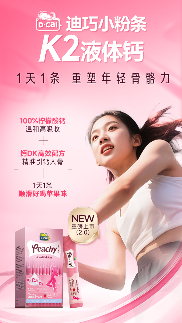 【跨境】迪巧(D-CAL)小粉条女士液体钙18ml*20条/盒*2(保健)(非组套)