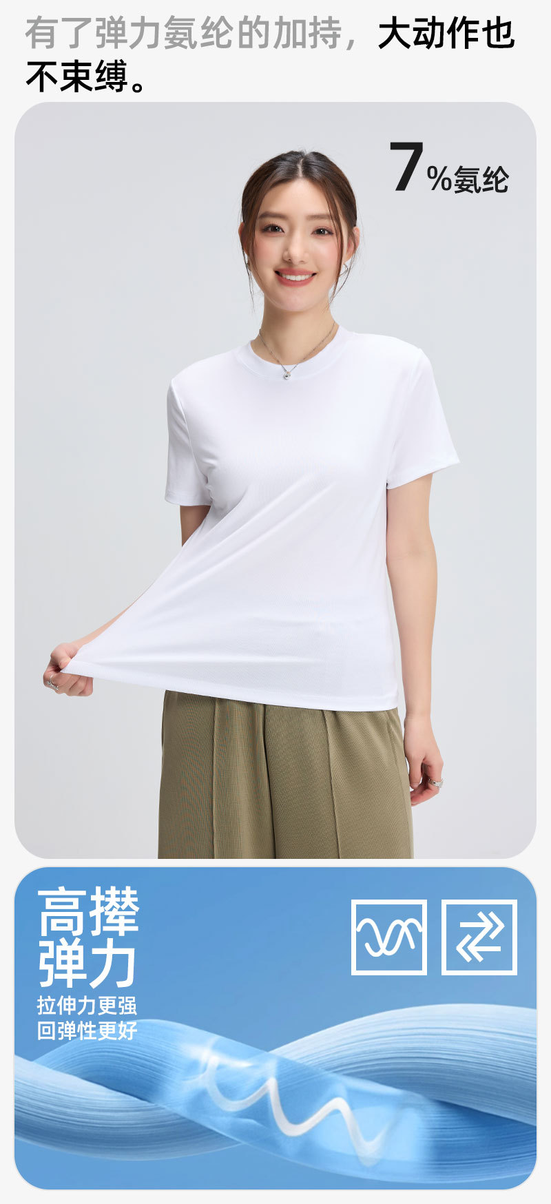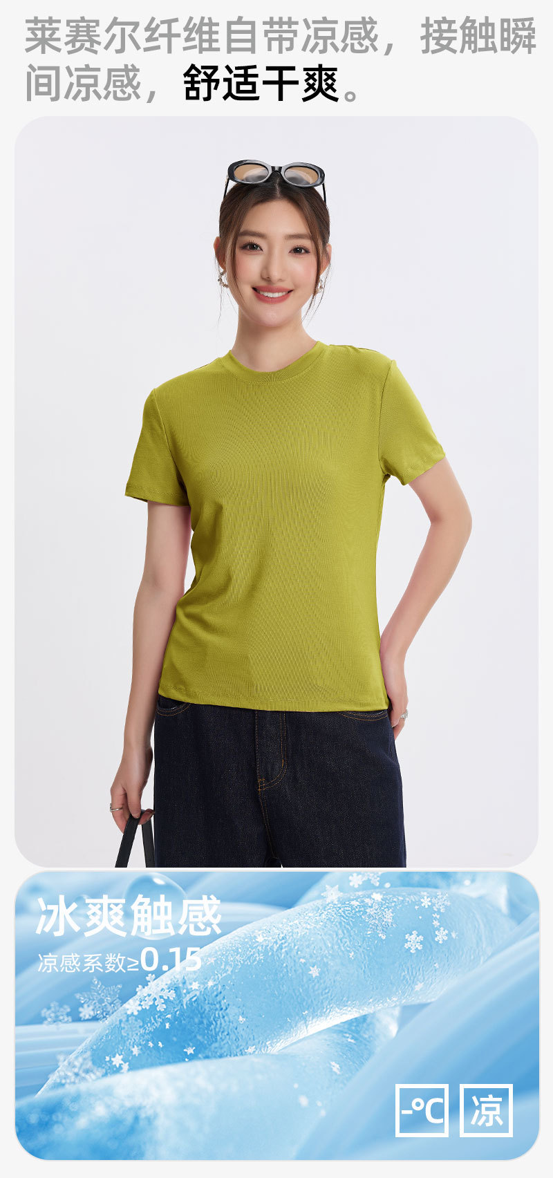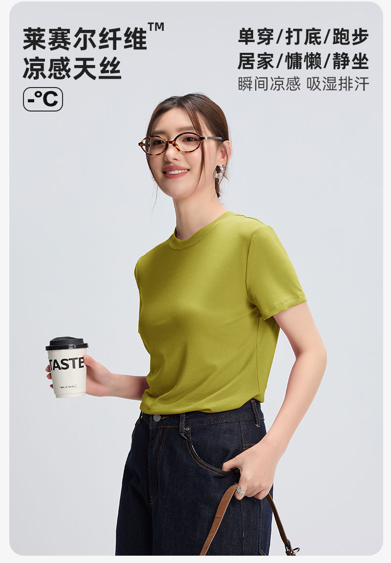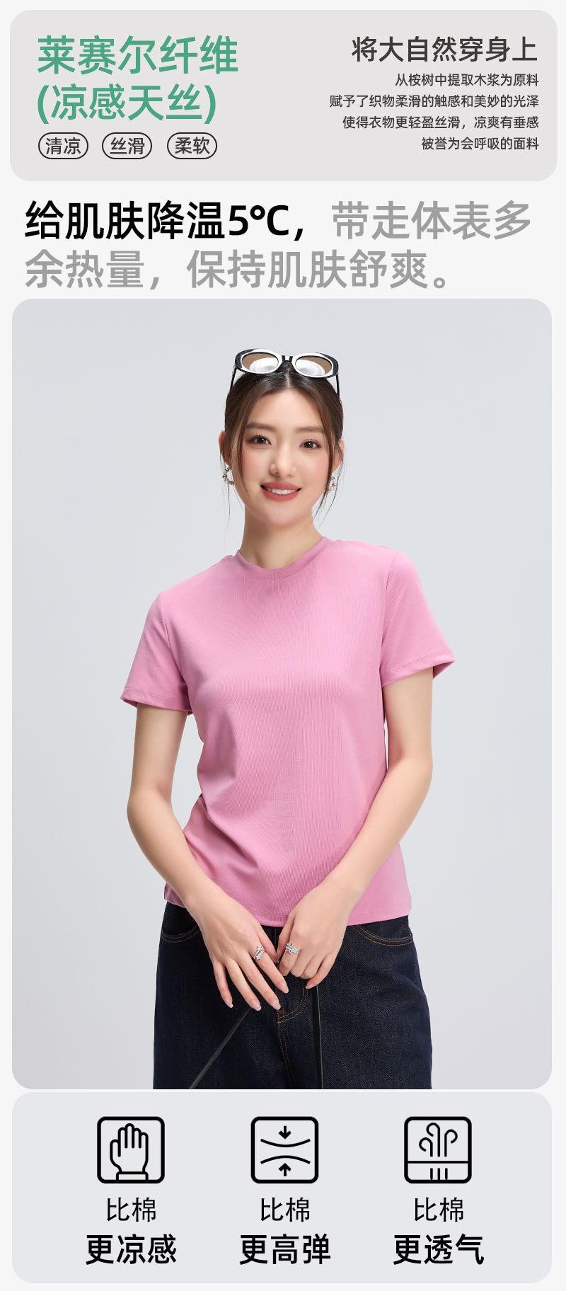 「自」全新升级【铂金会员119/天猫159/差价40】(03301)洛诗琳凉感天丝韩系慵懒风T恤2025夏季正肩高级感短袖女
