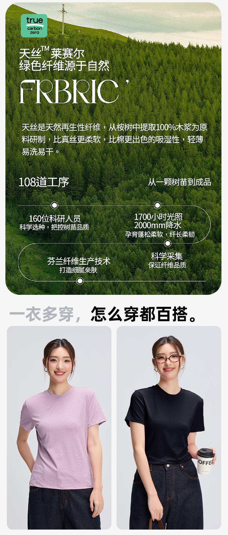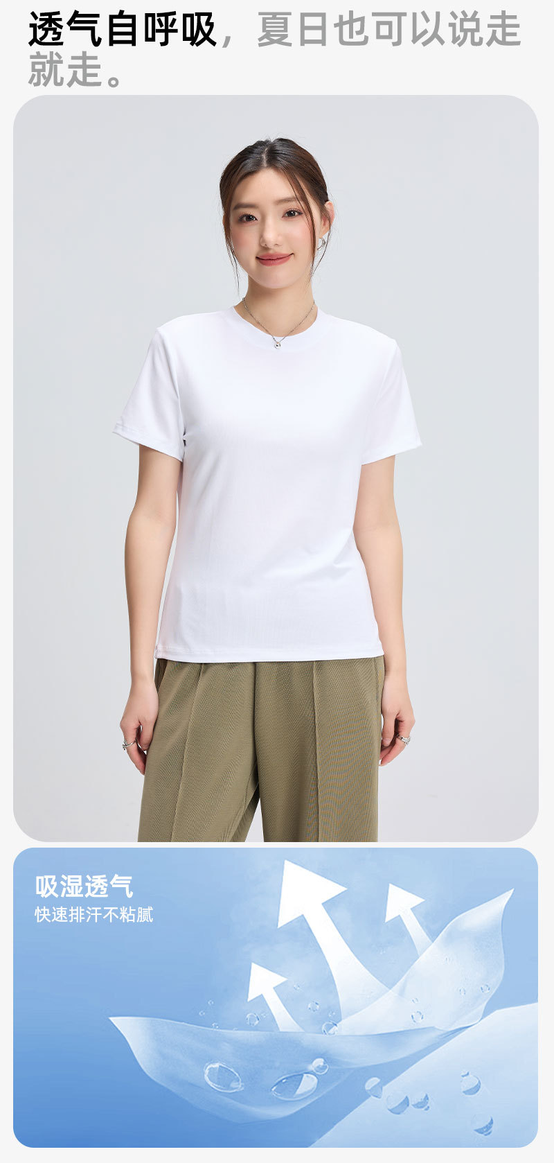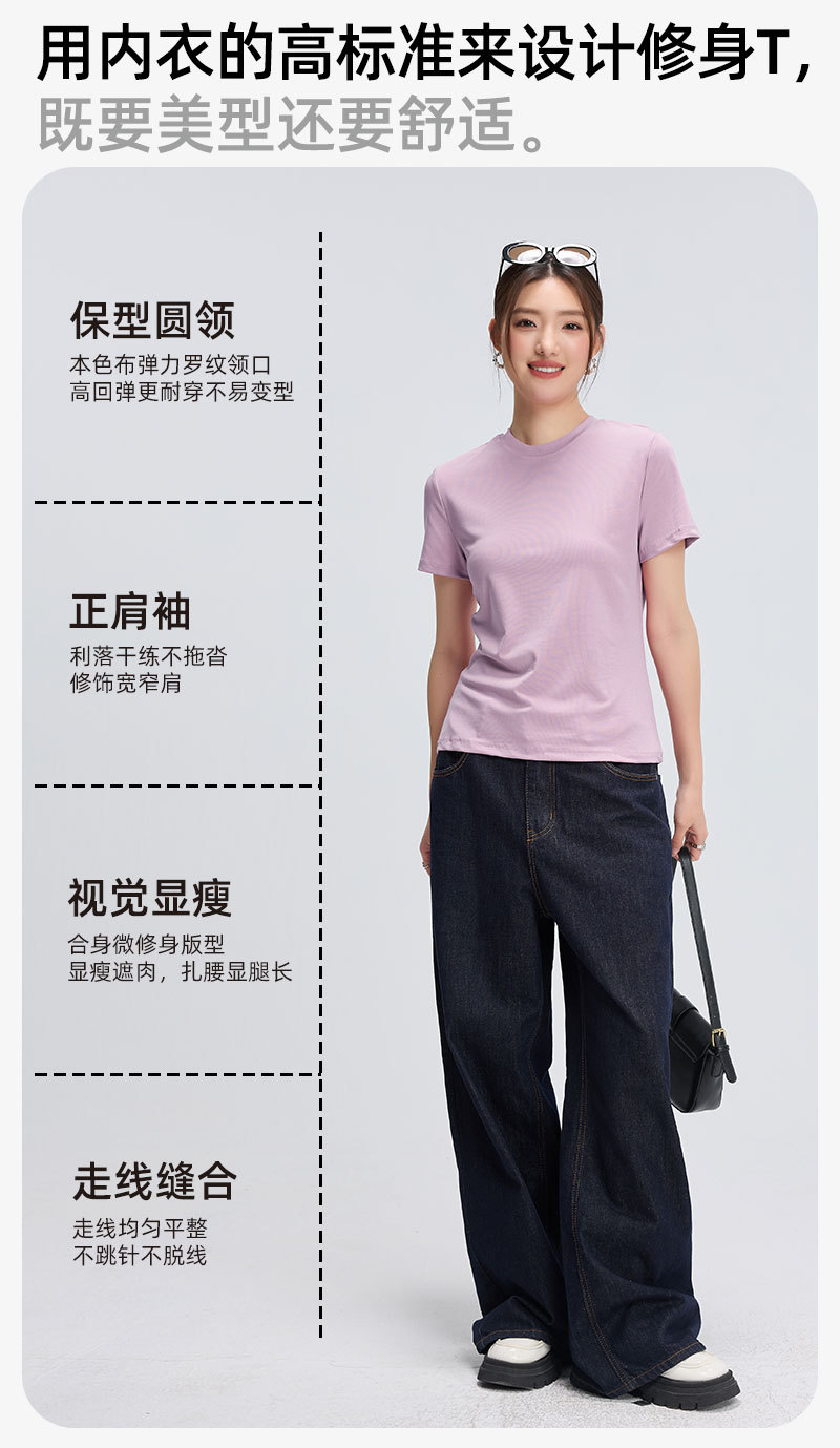「自」全新升级【铂金会员119/天猫159/差价40】(03301)洛诗琳凉感天丝韩系慵懒风T恤2025夏季正肩高级感短袖女