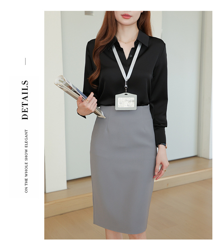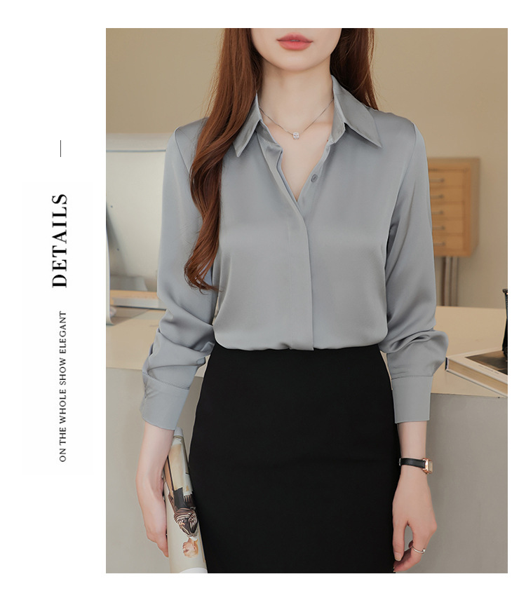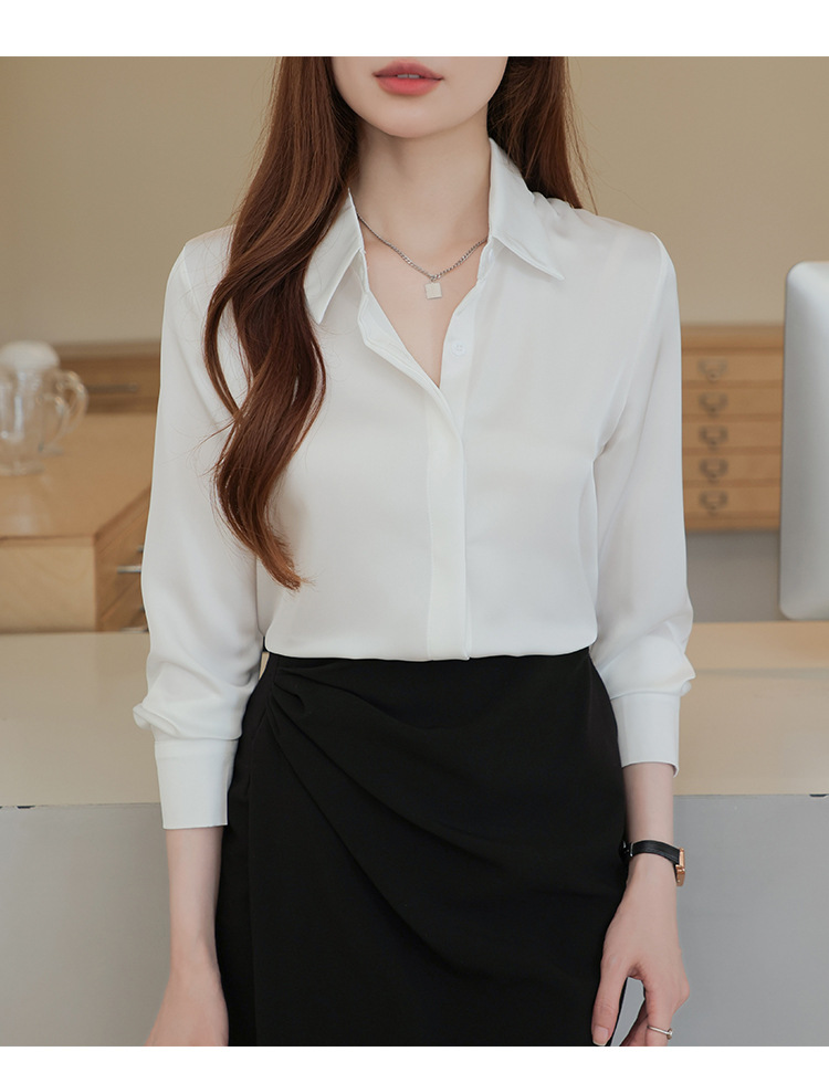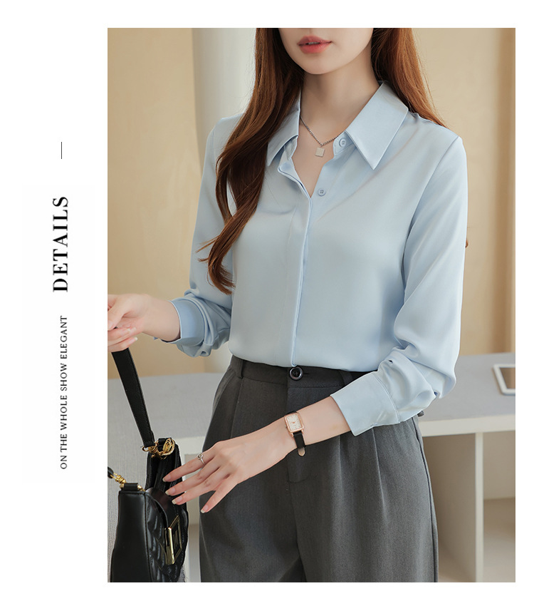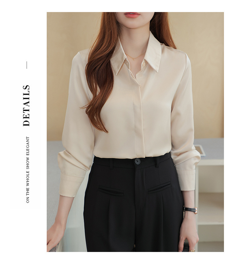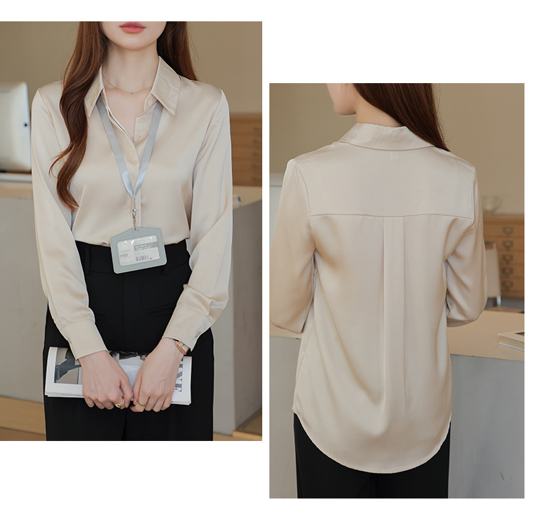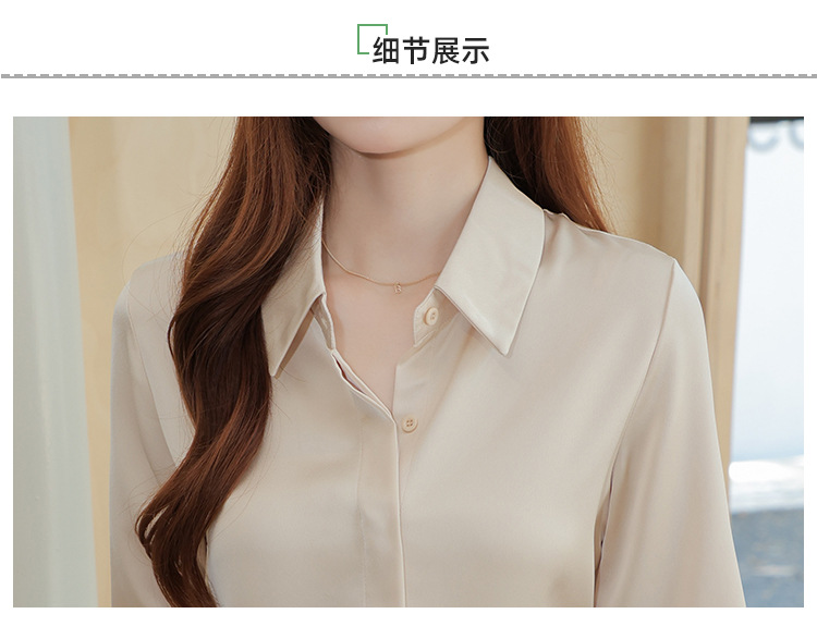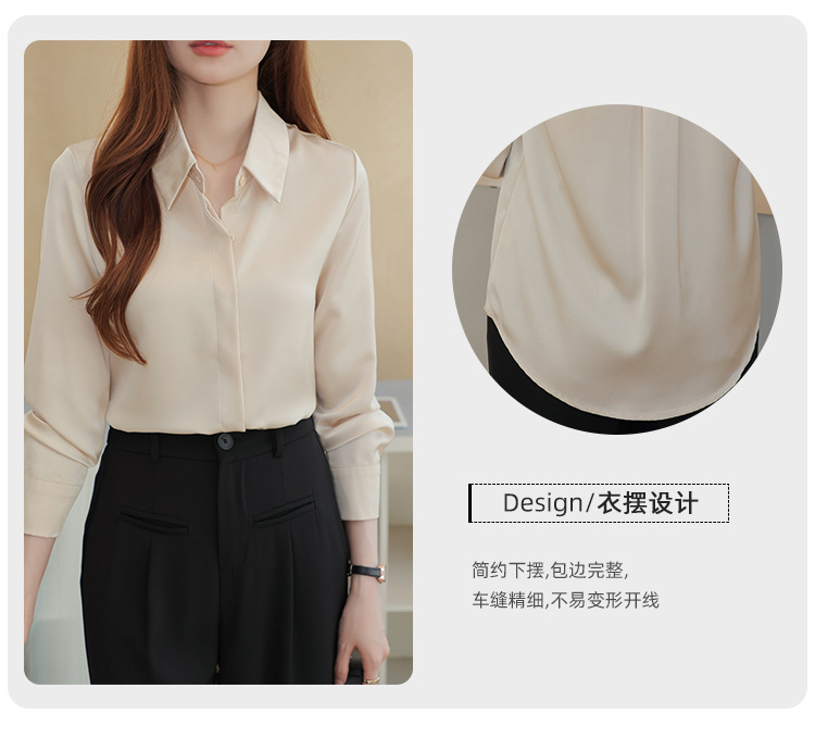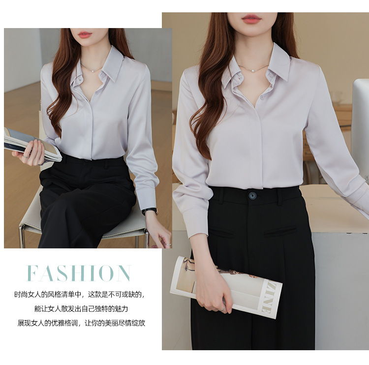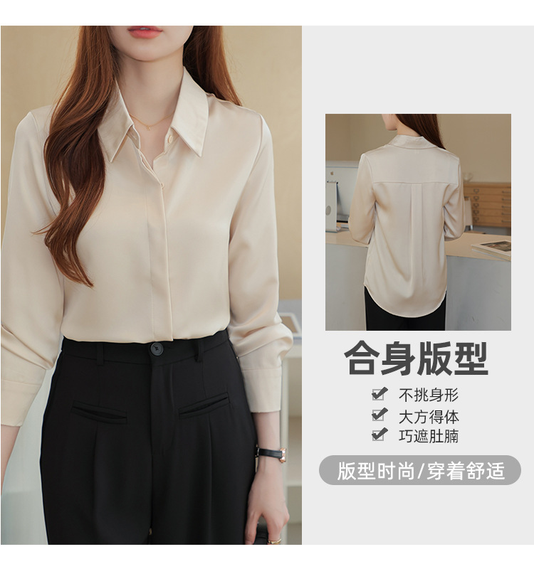 KQL2025醋酸缎面白色衬衫女士长袖秋装通勤职业衬衣气质打底上衣