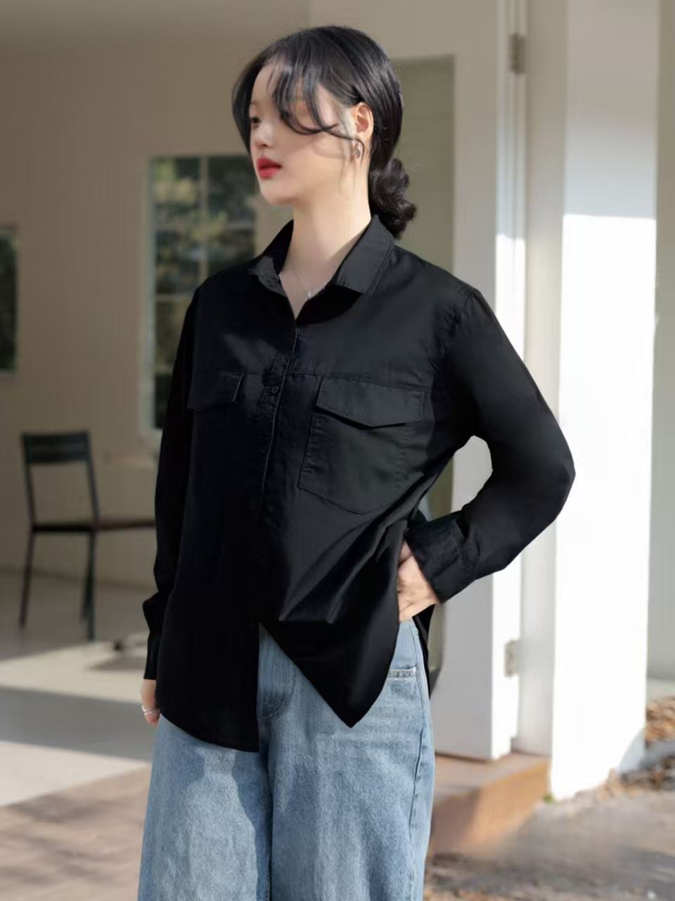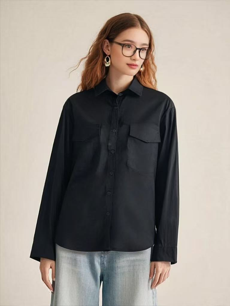 冰点价!仅限11.11!退货勿拍【秋新品】古泥7077黑色双口袋精致走线衬衫-喜出