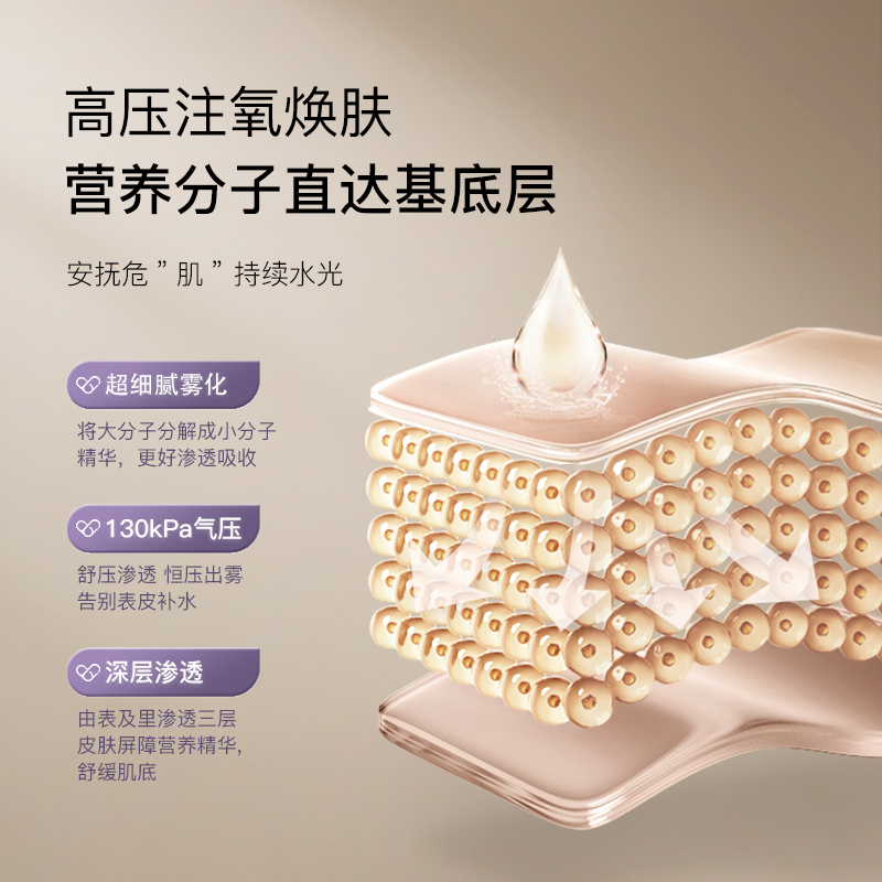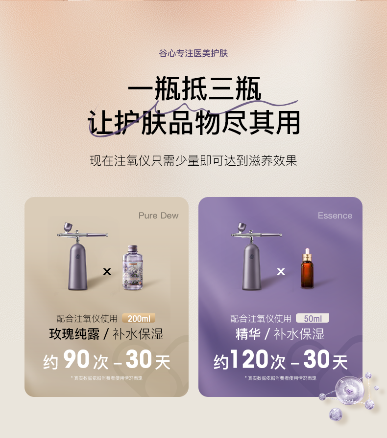💁谷心注氧仪通过130KPA高压注氧焕肤,将纯露/爽肤水/精华/的营养分子直达基底屏,深层滋养、激活细胞新生💦随时随地滋润补水!
