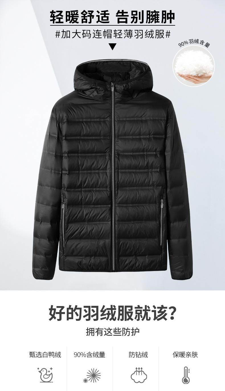 一口价【新款DK】大依优型大码连帽轻薄羽绒服大号外套休闲胖子穿大码男加肥加大上衣