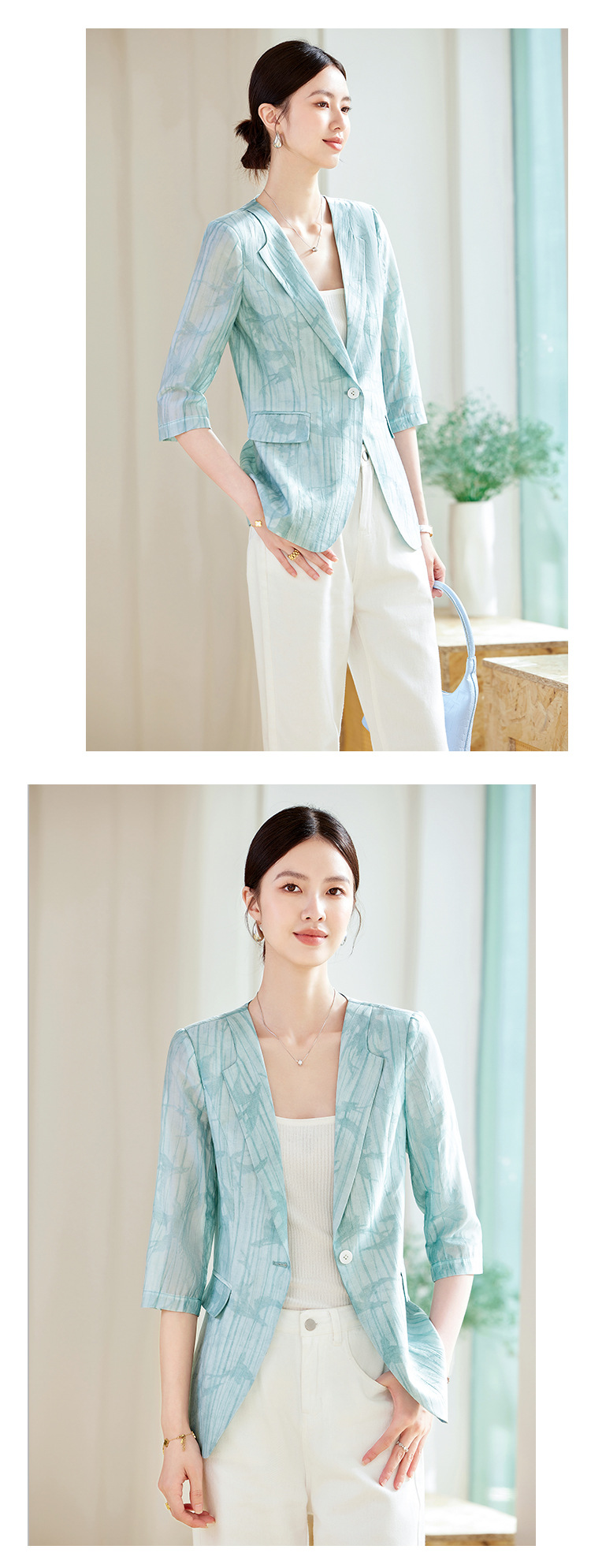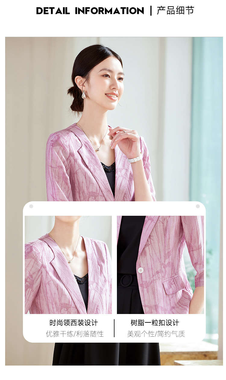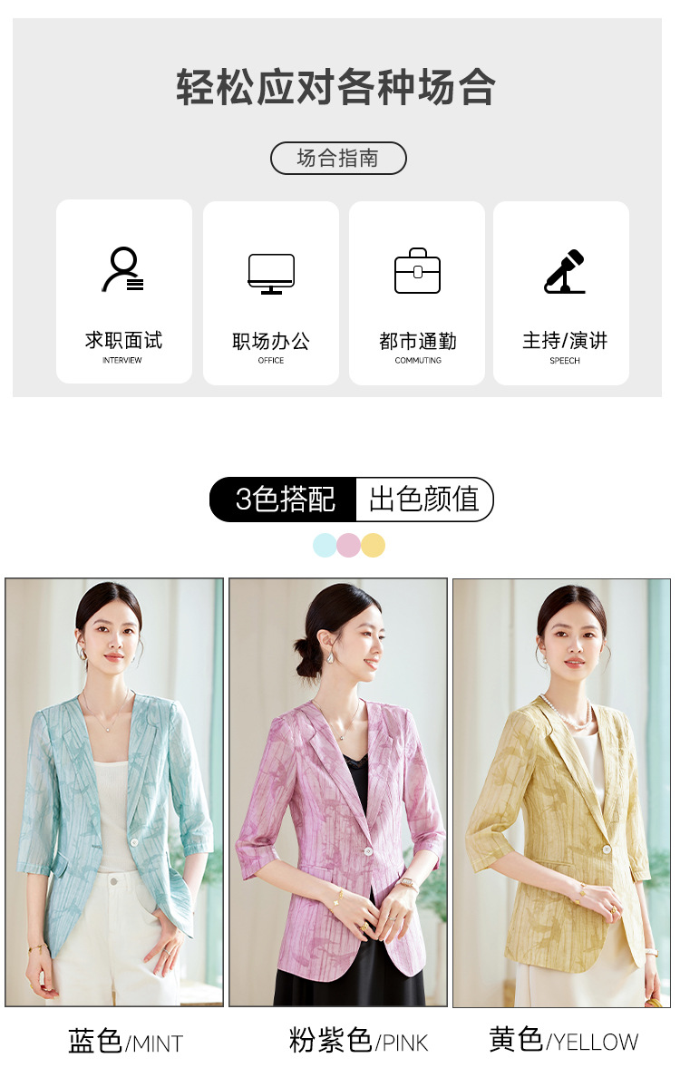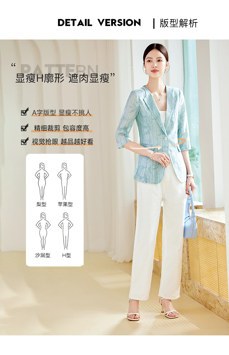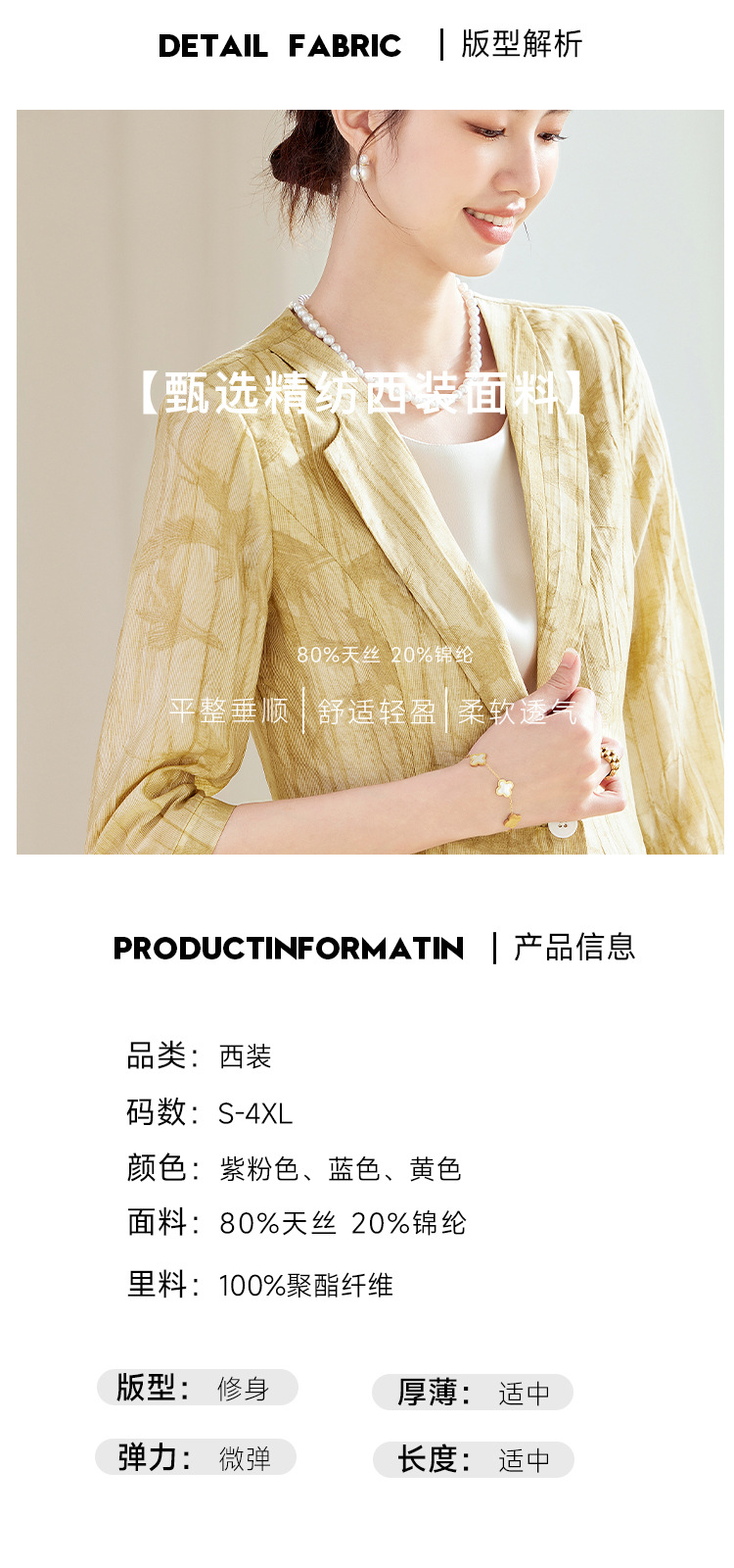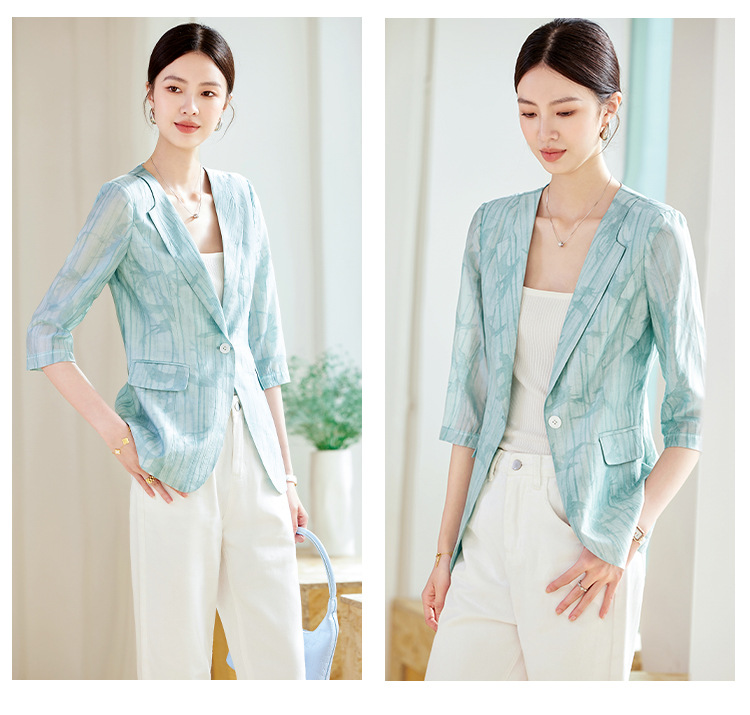 雀说天丝西装外套女薄款七分袖上衣韩版修身高级感气质休闲小西服AL24925