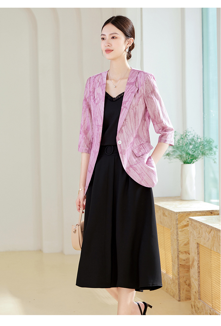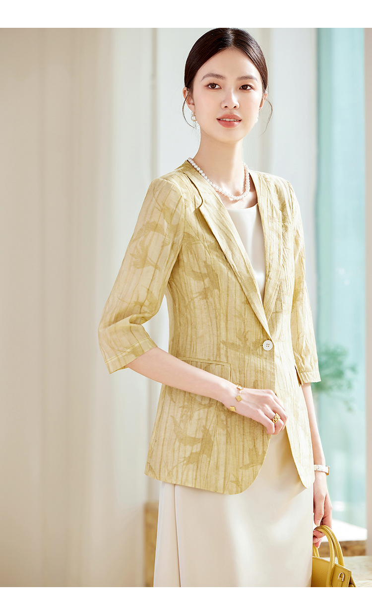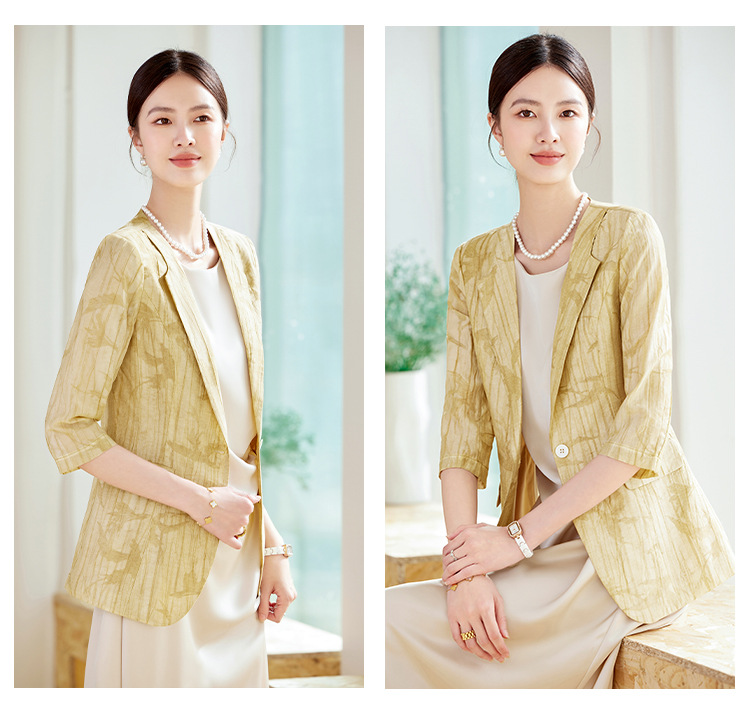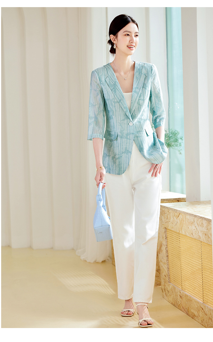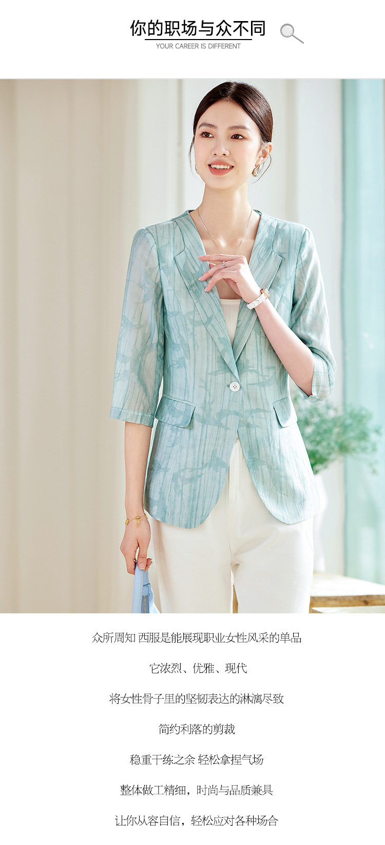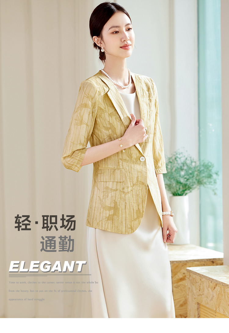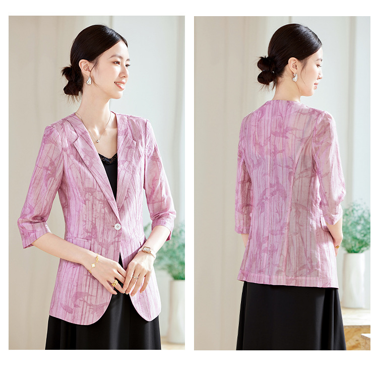 雀说天丝西装外套女薄款七分袖上衣韩版修身高级感气质休闲小西服AL24925