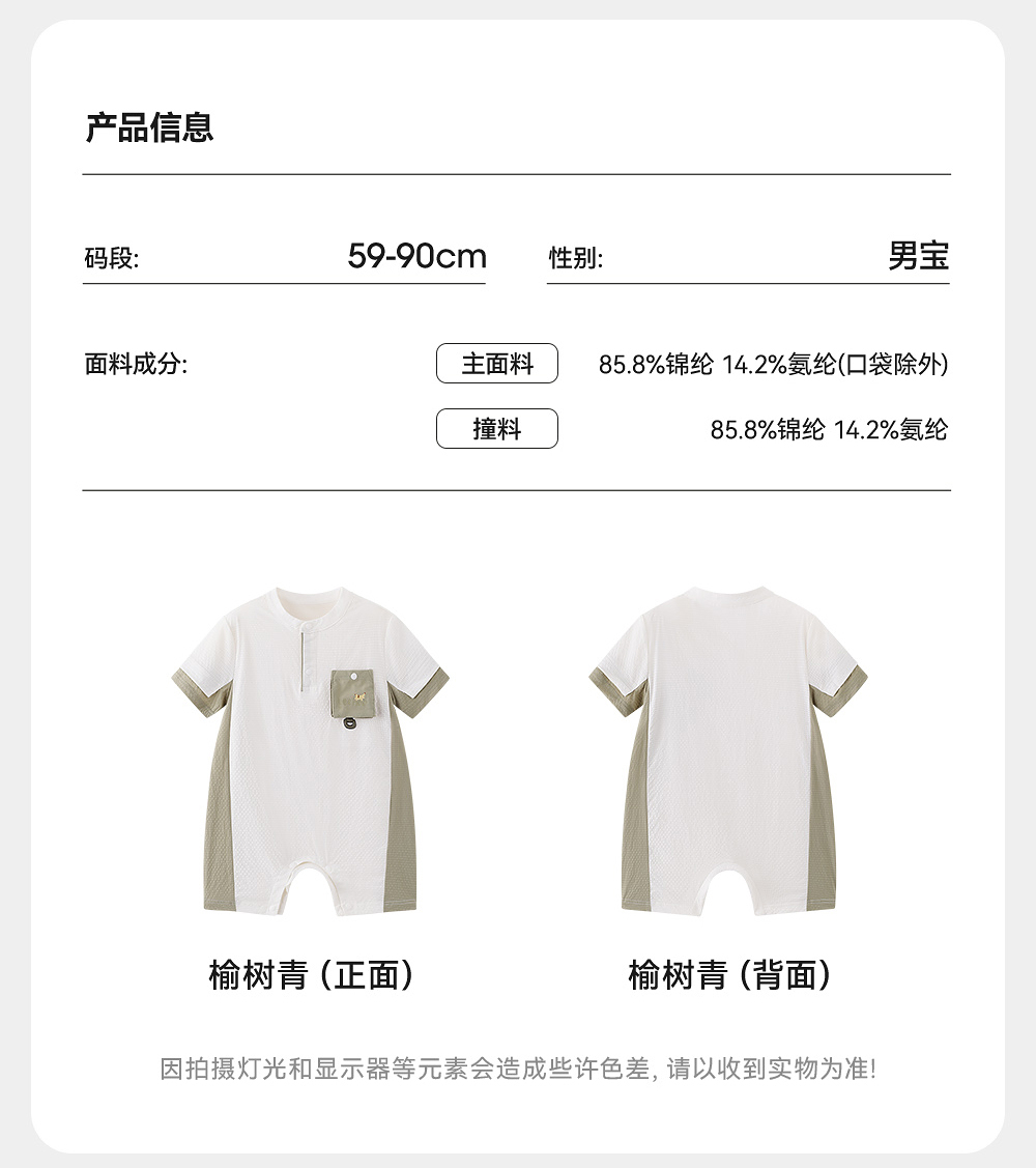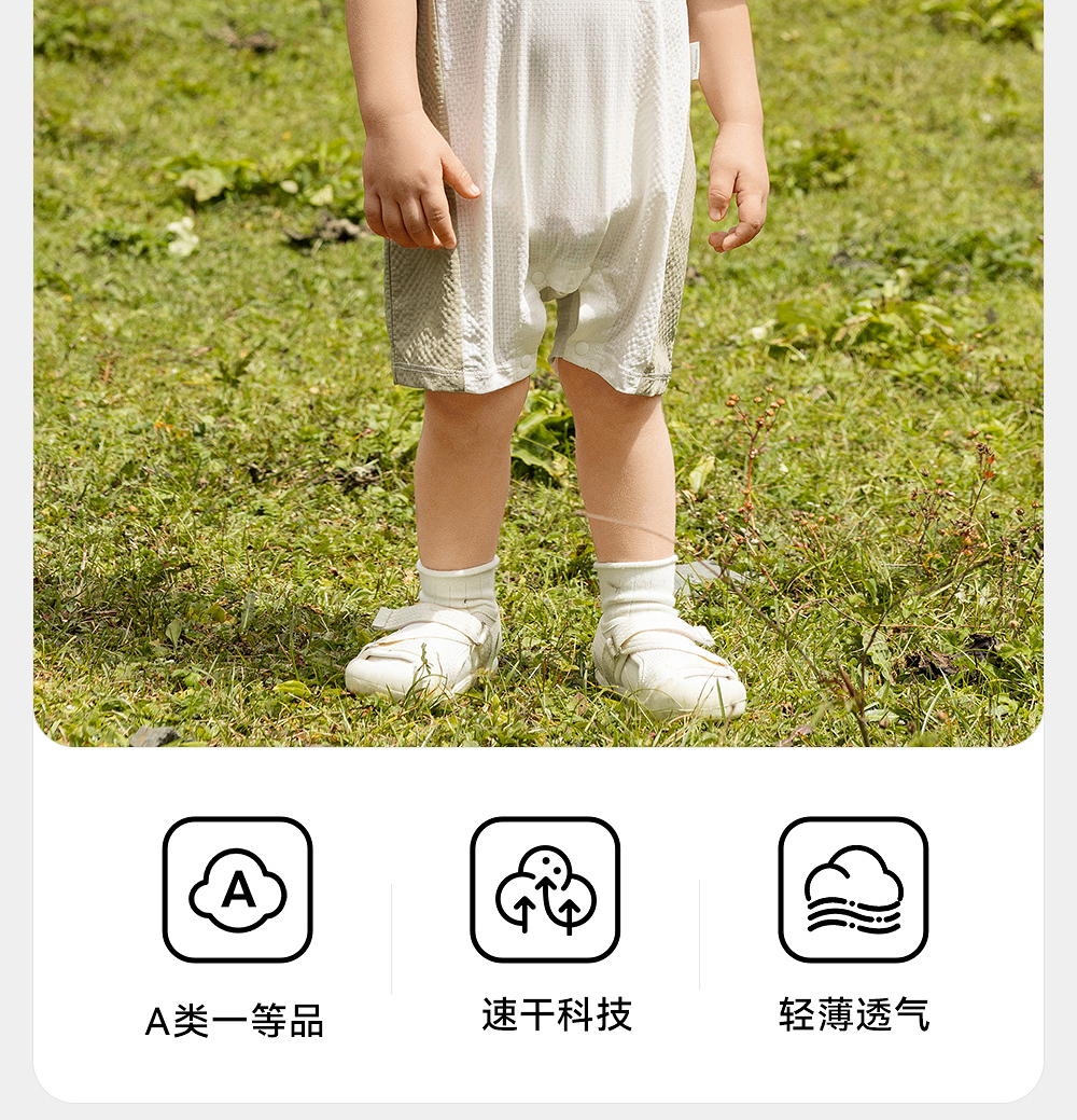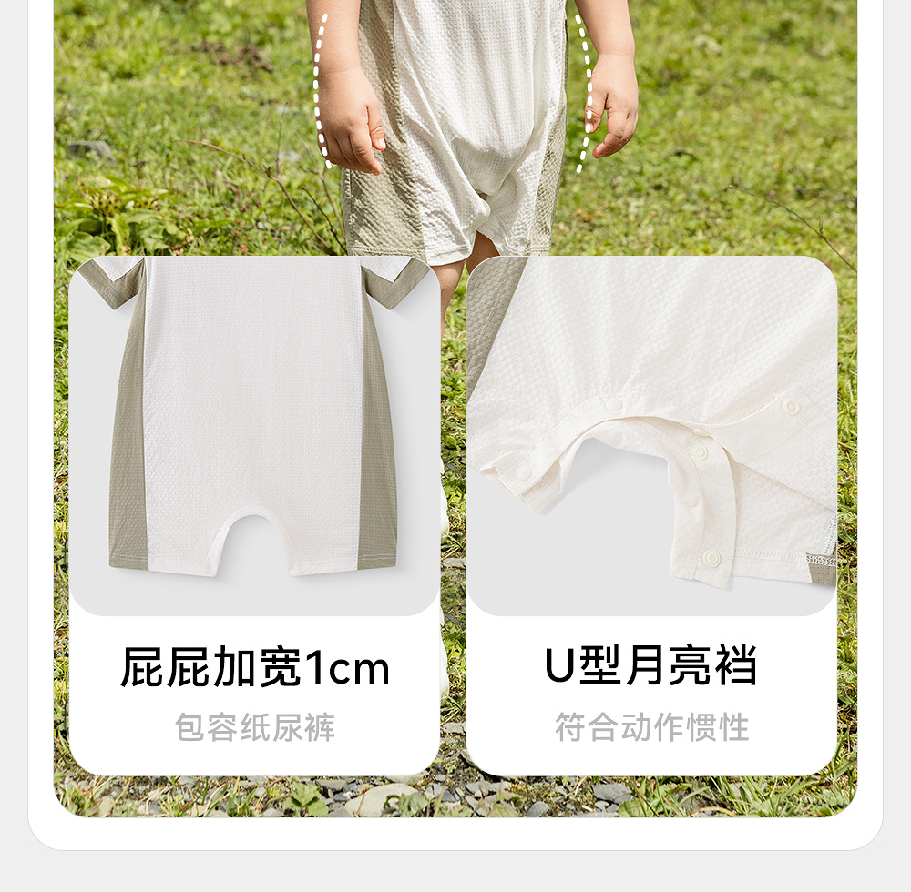【商场同款】英氏婴儿衣服夏季透气速干男宝连体衣短袖月亮裆哈衣