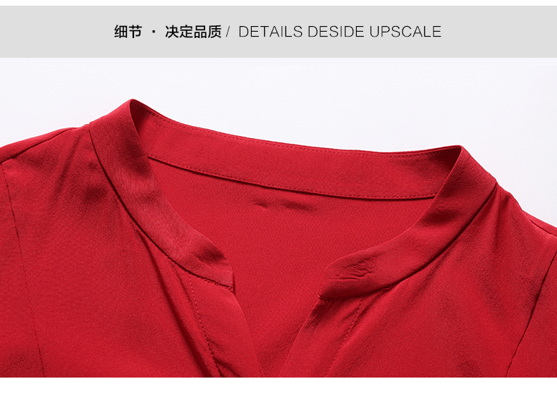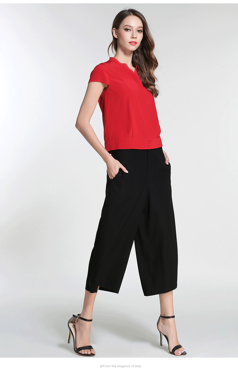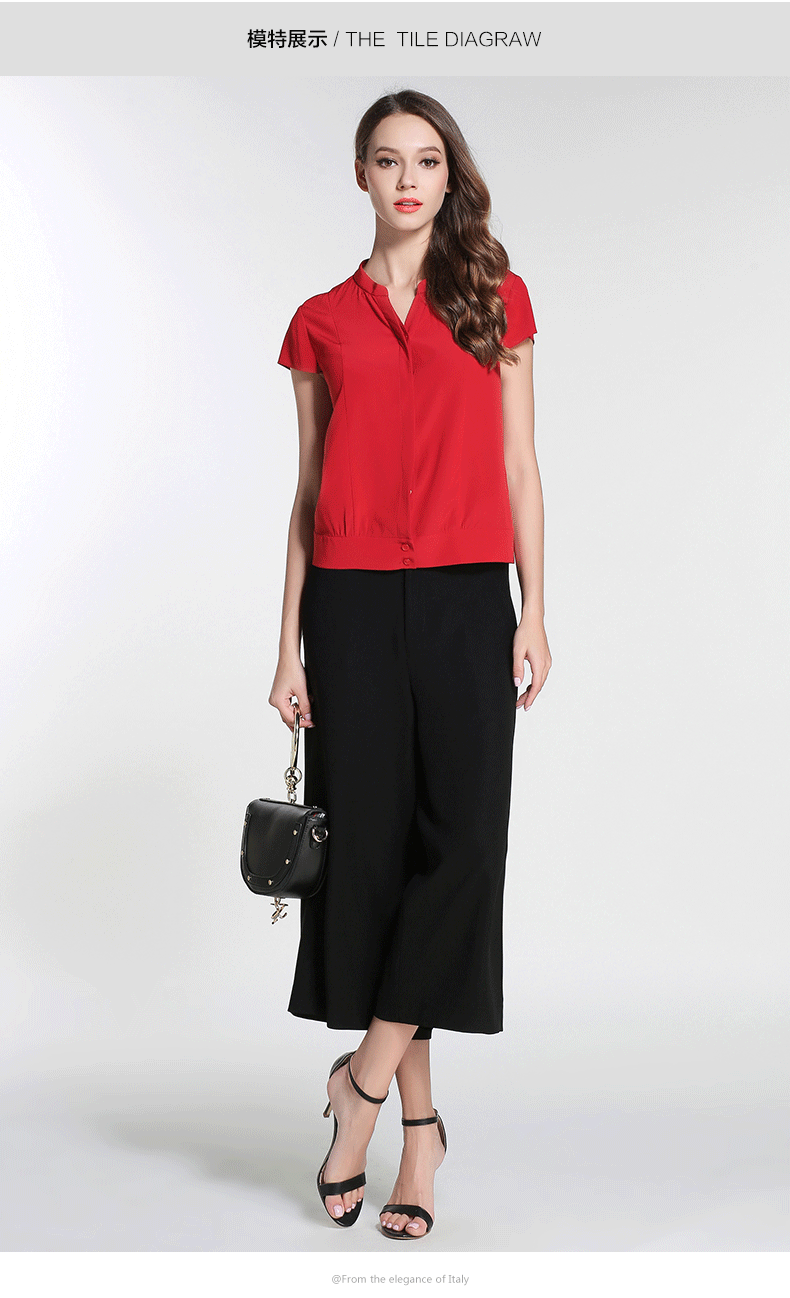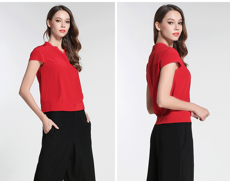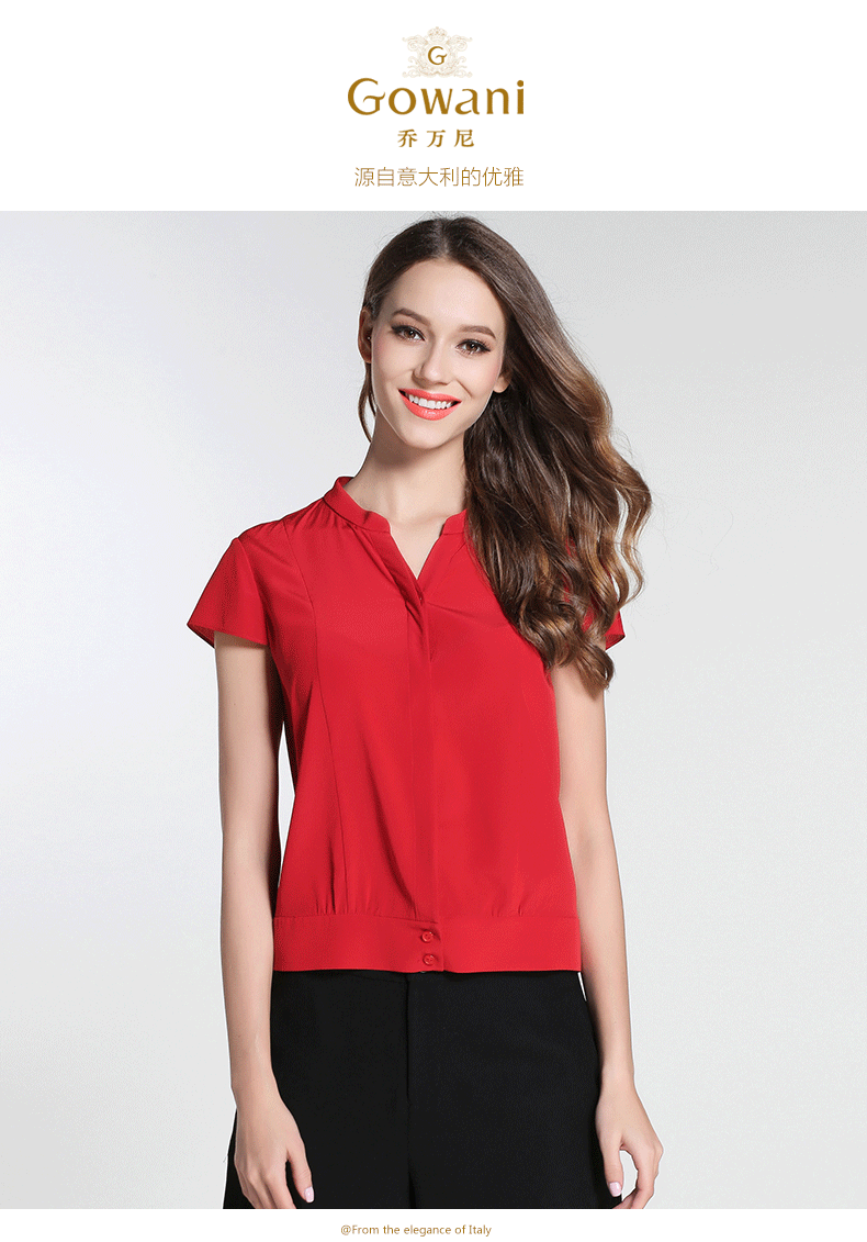 乔万尼夏装简约V领真丝纯色衬衫百搭短袖桑蚕丝衬衣EB2C895