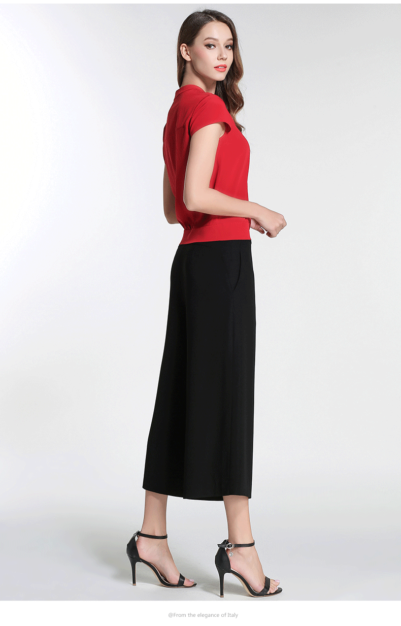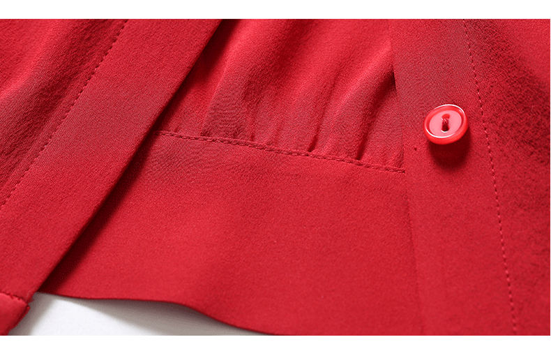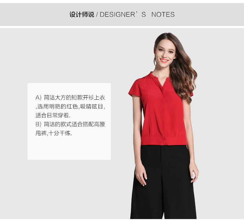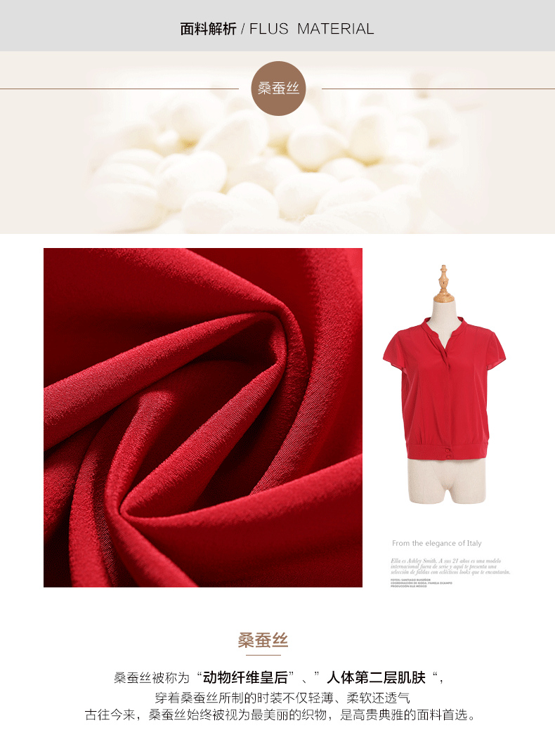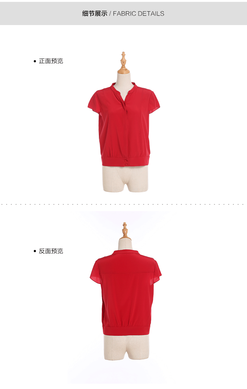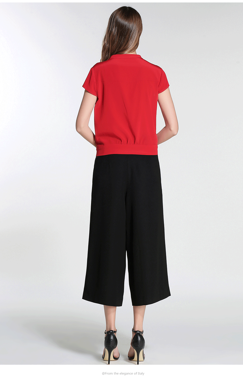 乔万尼夏装简约V领真丝纯色衬衫百搭短袖桑蚕丝衬衣EB2C895