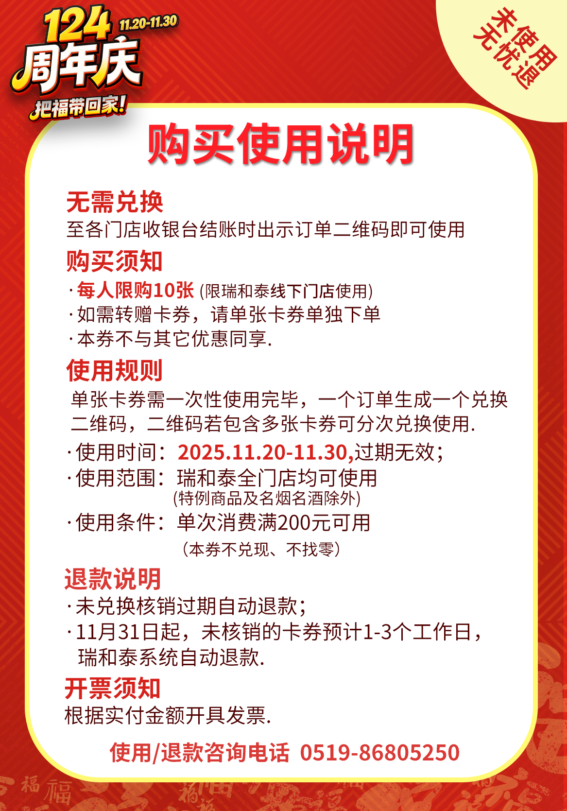 【福券到】瑞和泰124周年无敌通用券预售 150抵200限时疯抢!怎么买都划算 过期不用自动退款