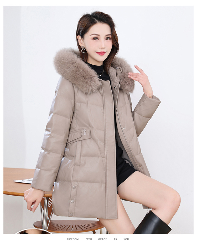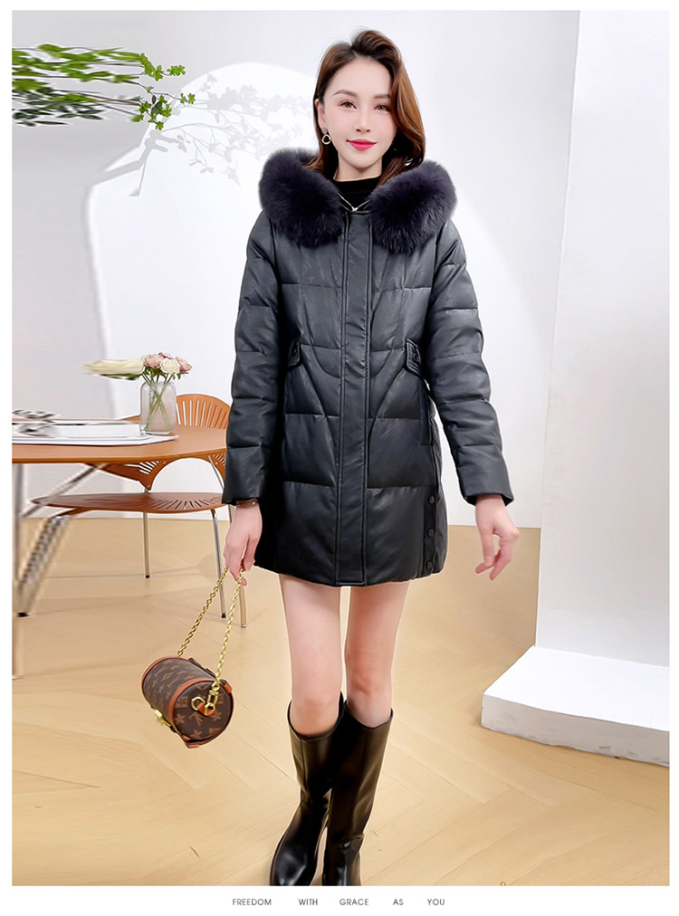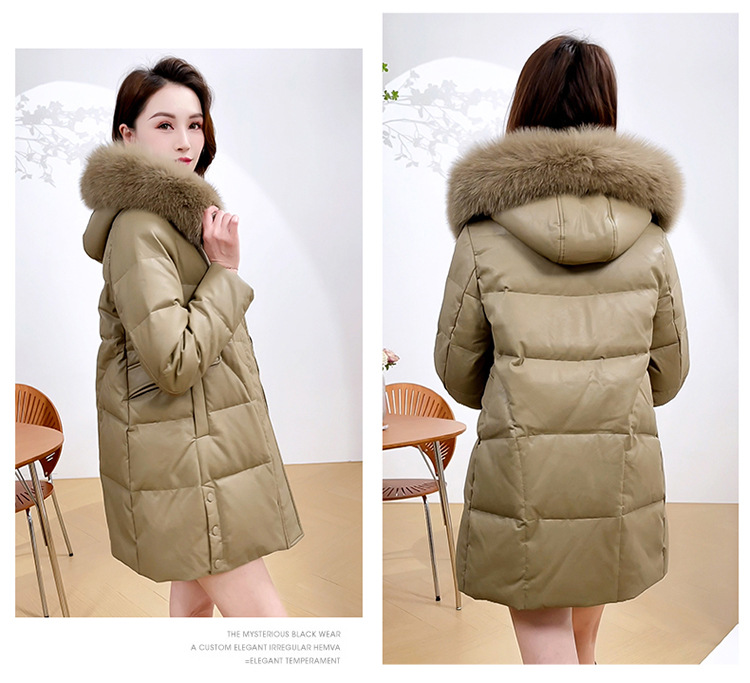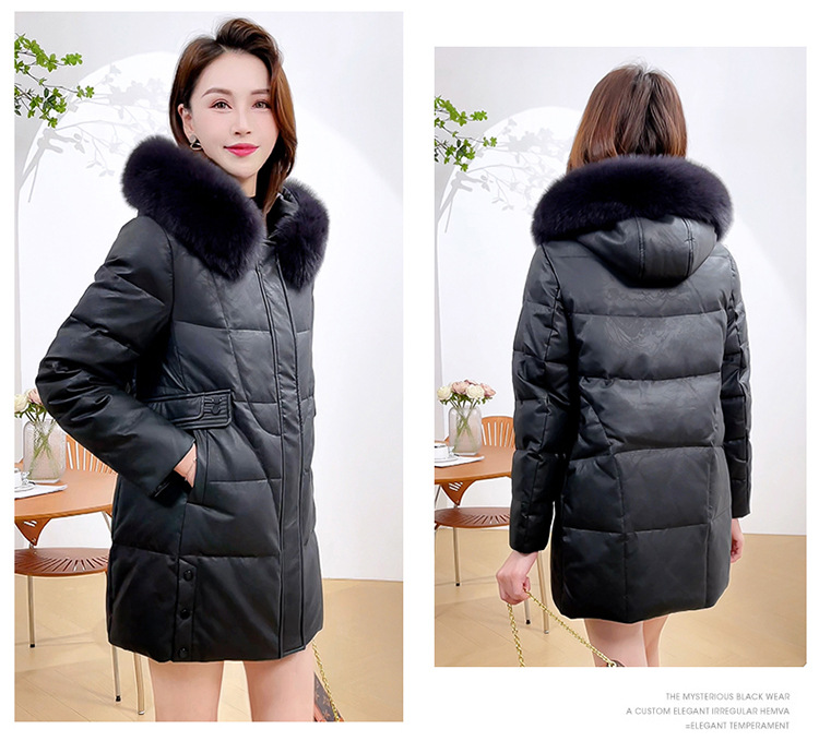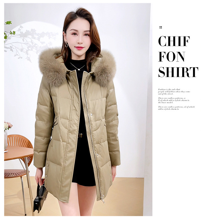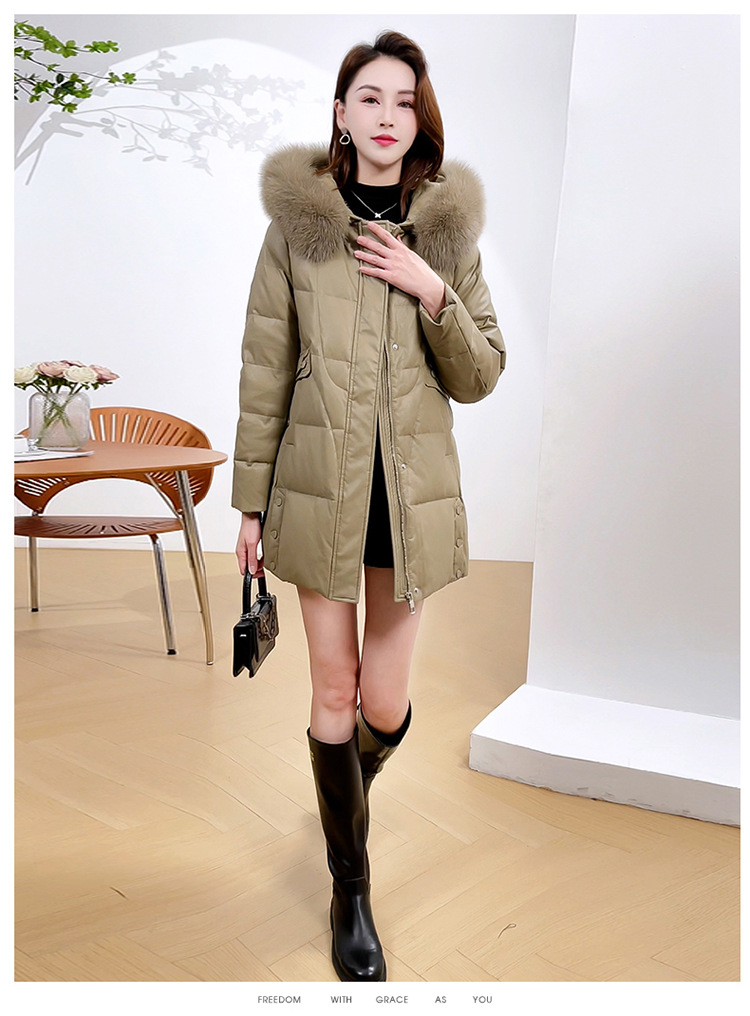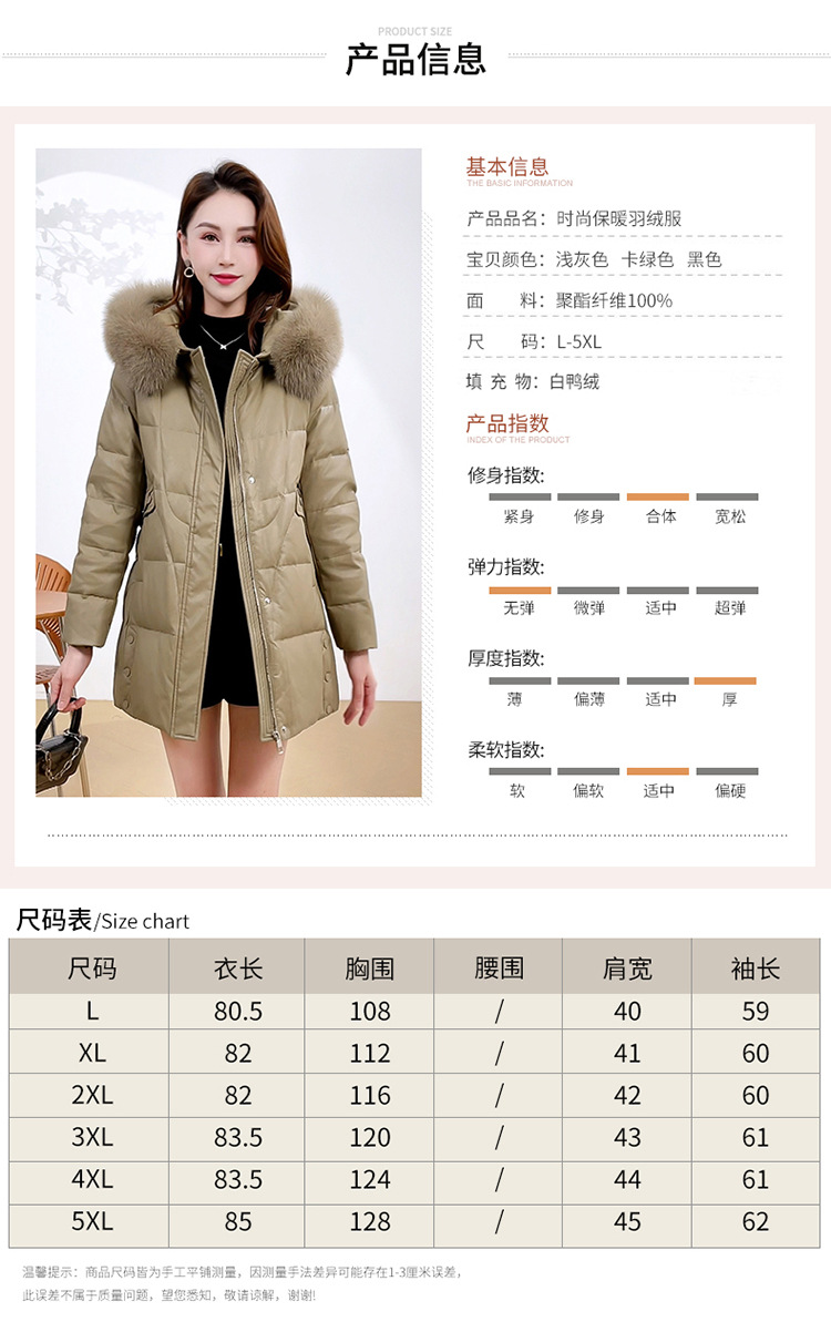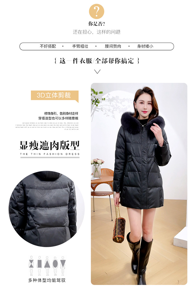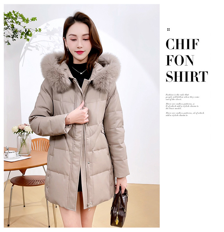 QYM 4B12羽绒服狐狸毛领连帽时尚白鸭绒中长款外套 商品图0
