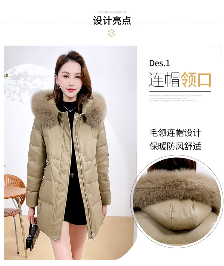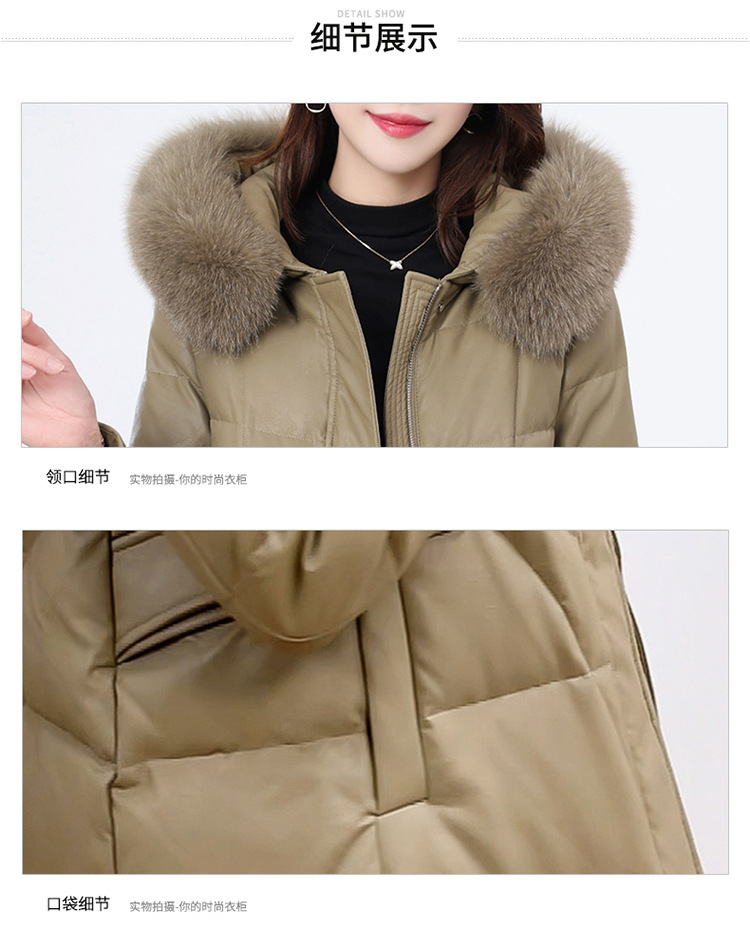 QYM 4B12羽绒服狐狸毛领连帽时尚白鸭绒中长款外套 商品图4