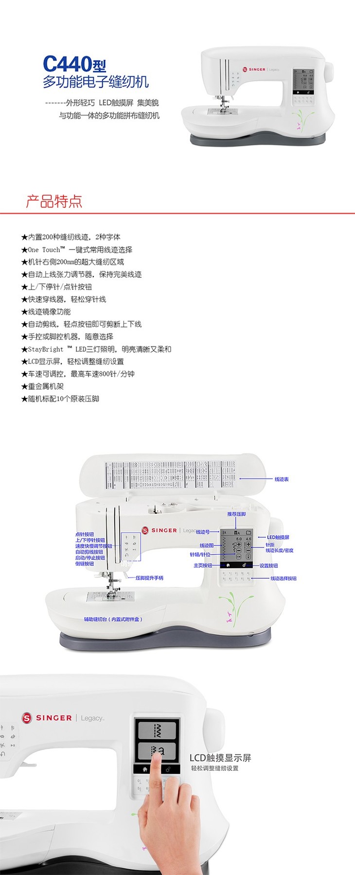 【胜家】C440多功能电子拼布缝纫机