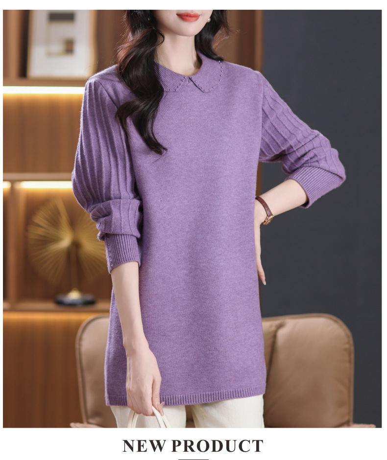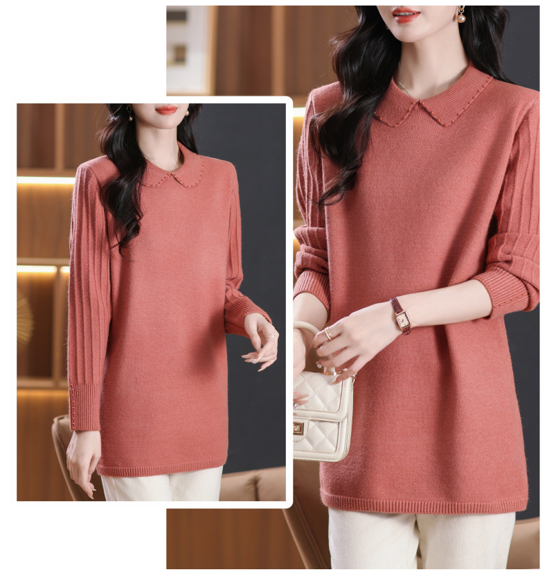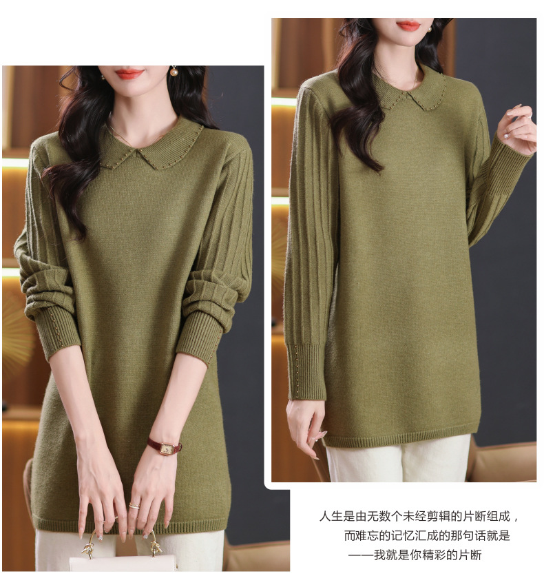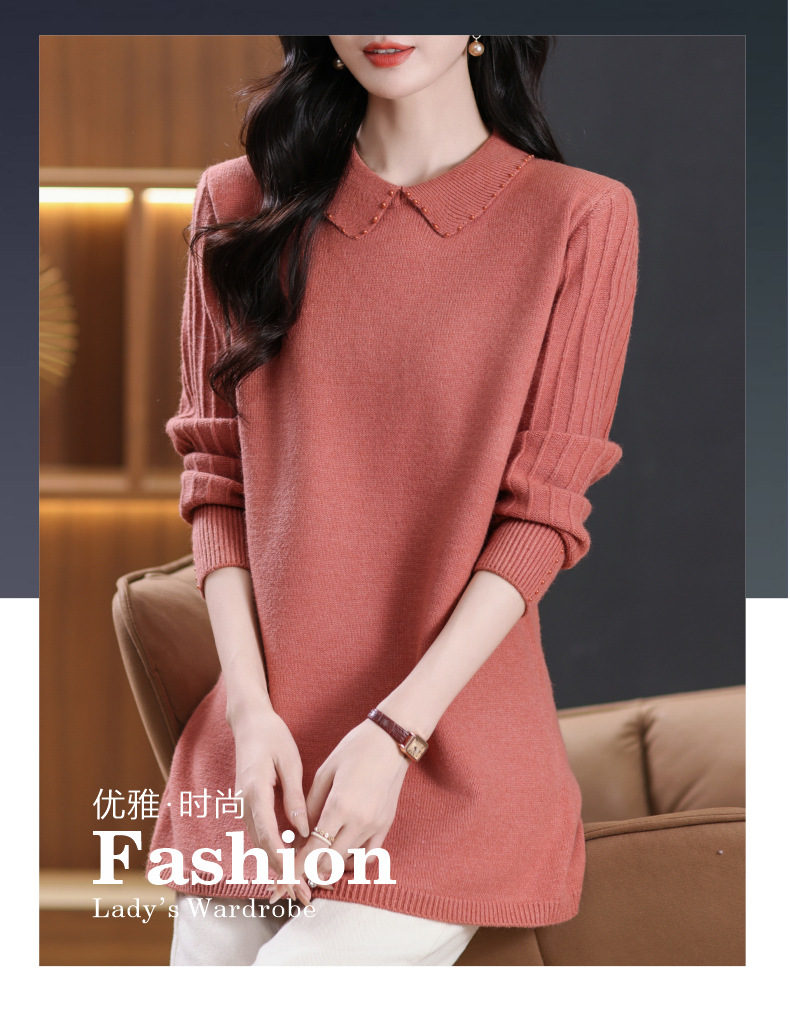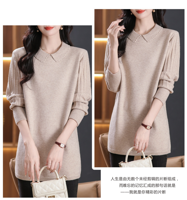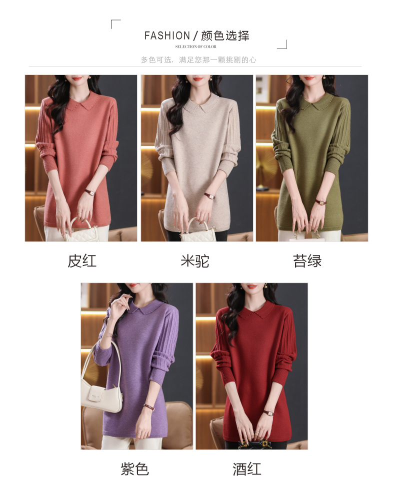 CC-5-6112中长款针织打底衫毛衣女2024秋冬新款娃娃领年轻洋气内搭上衣