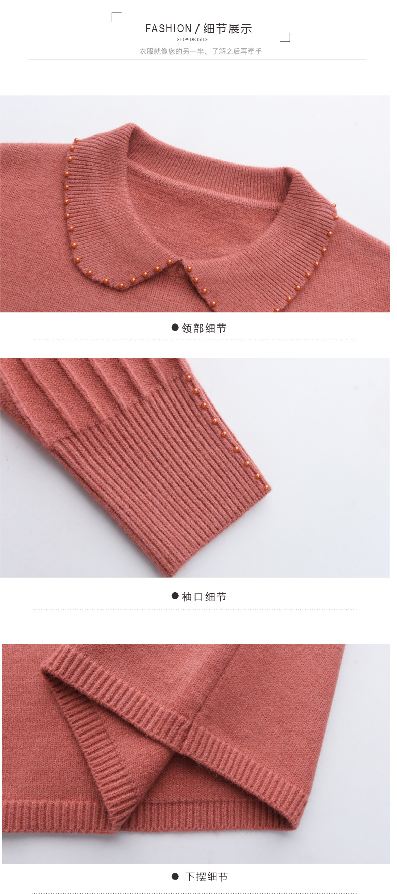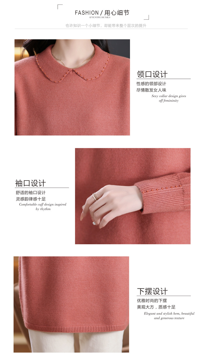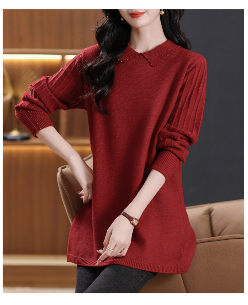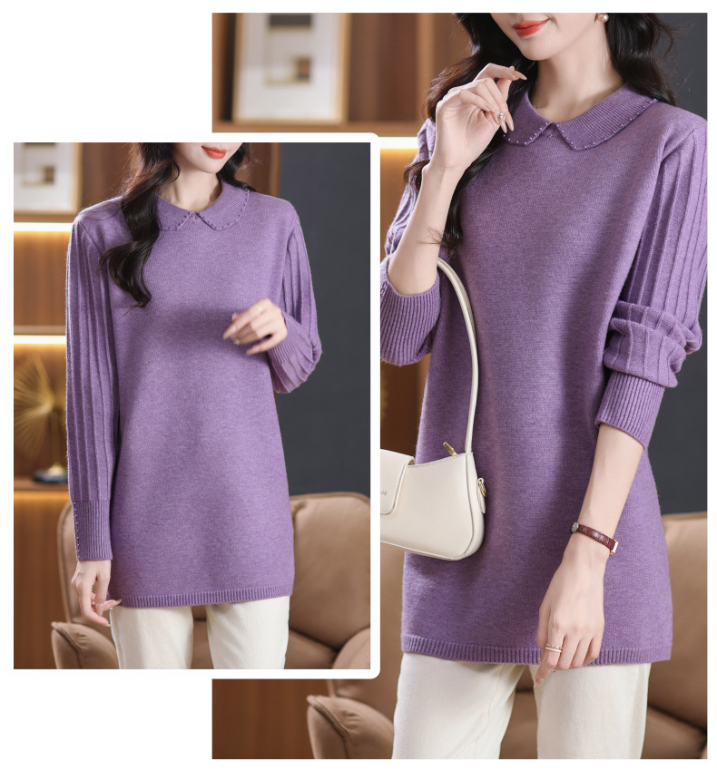 CC-5-6112中长款针织打底衫毛衣女2024秋冬新款娃娃领年轻洋气内搭上衣