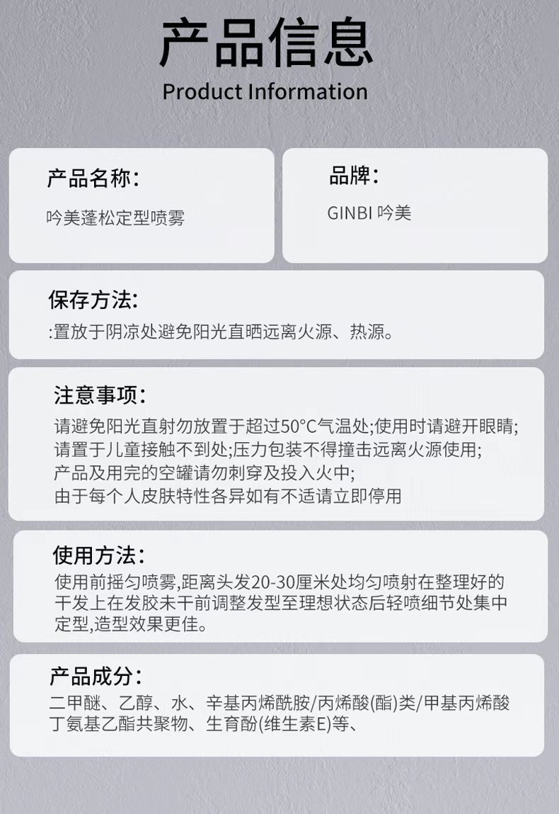 【一喷一抓,肆意塑型~】吟美蓬松定型喷雾 清爽持久定型喷雾 发胶发泥发蜡 干发免洗喷雾-QQ