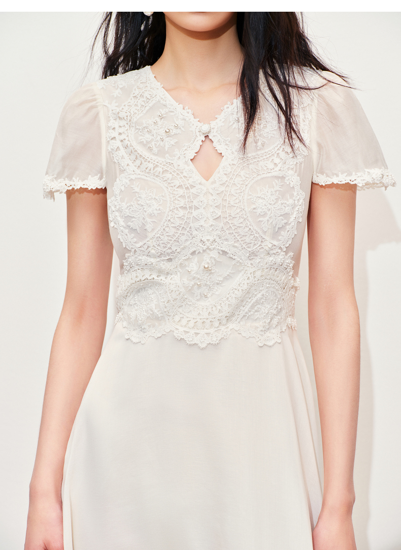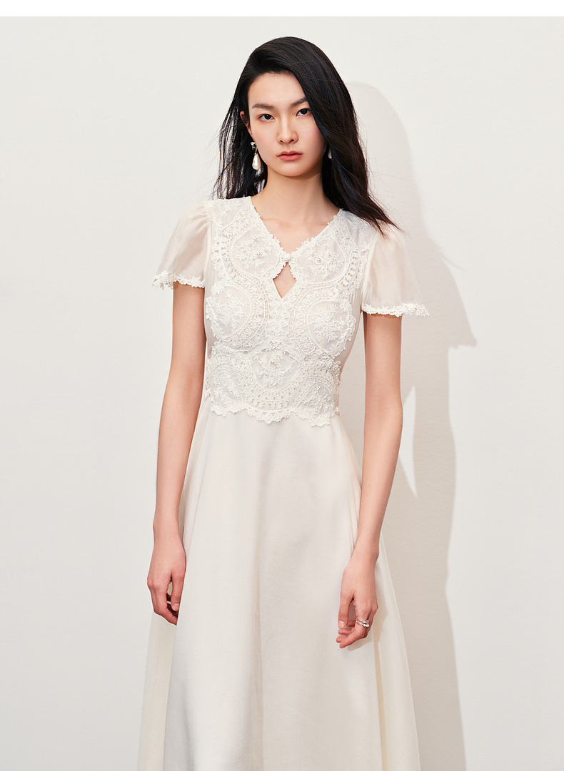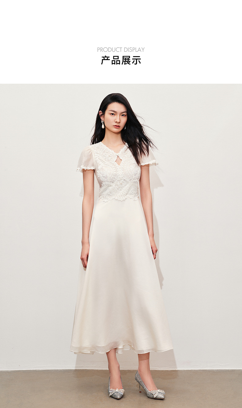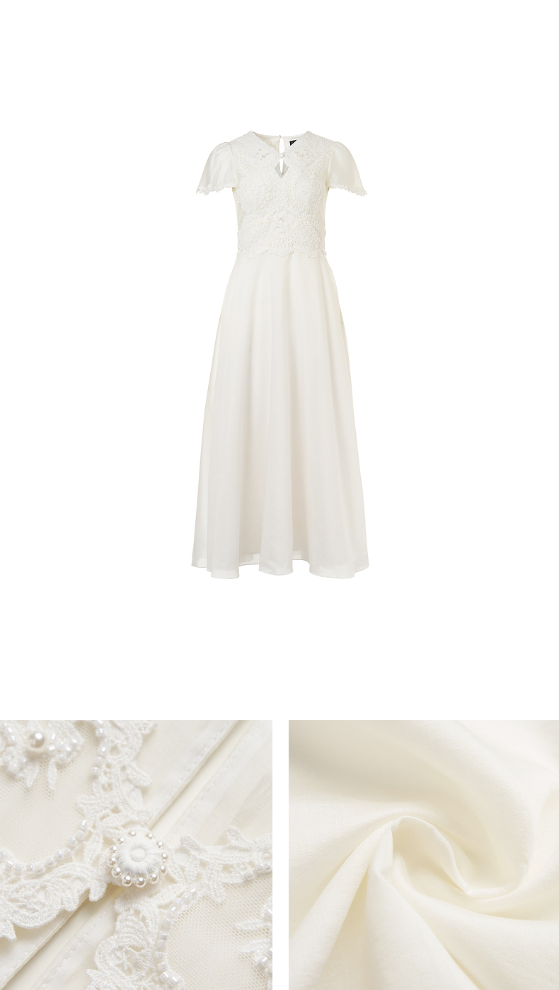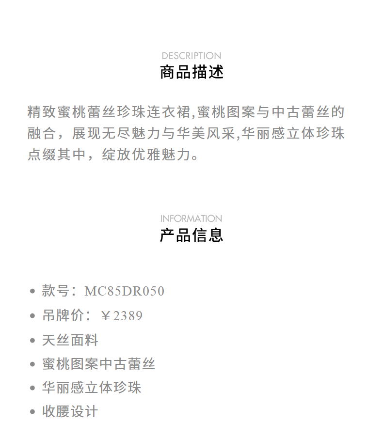【商场同款】MAXRIENY精致蜜桃蕾丝珍珠连衣裙修身长裙(货号:MC85DR050)