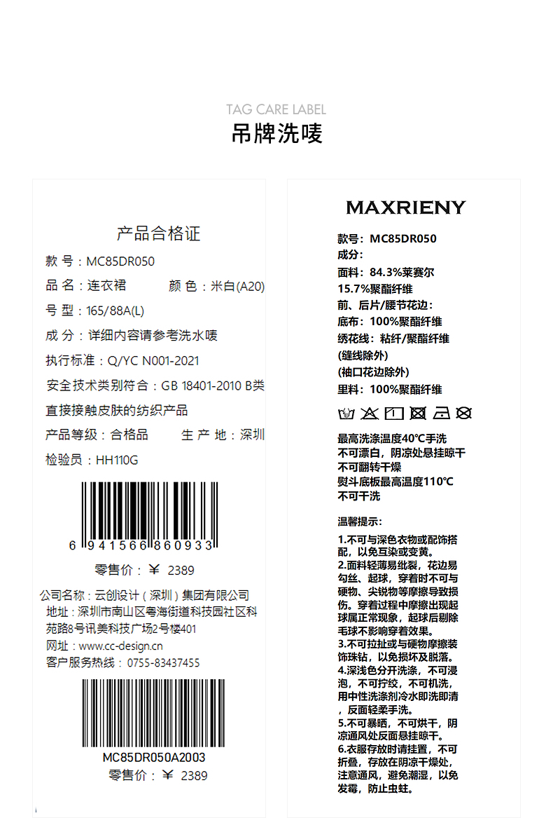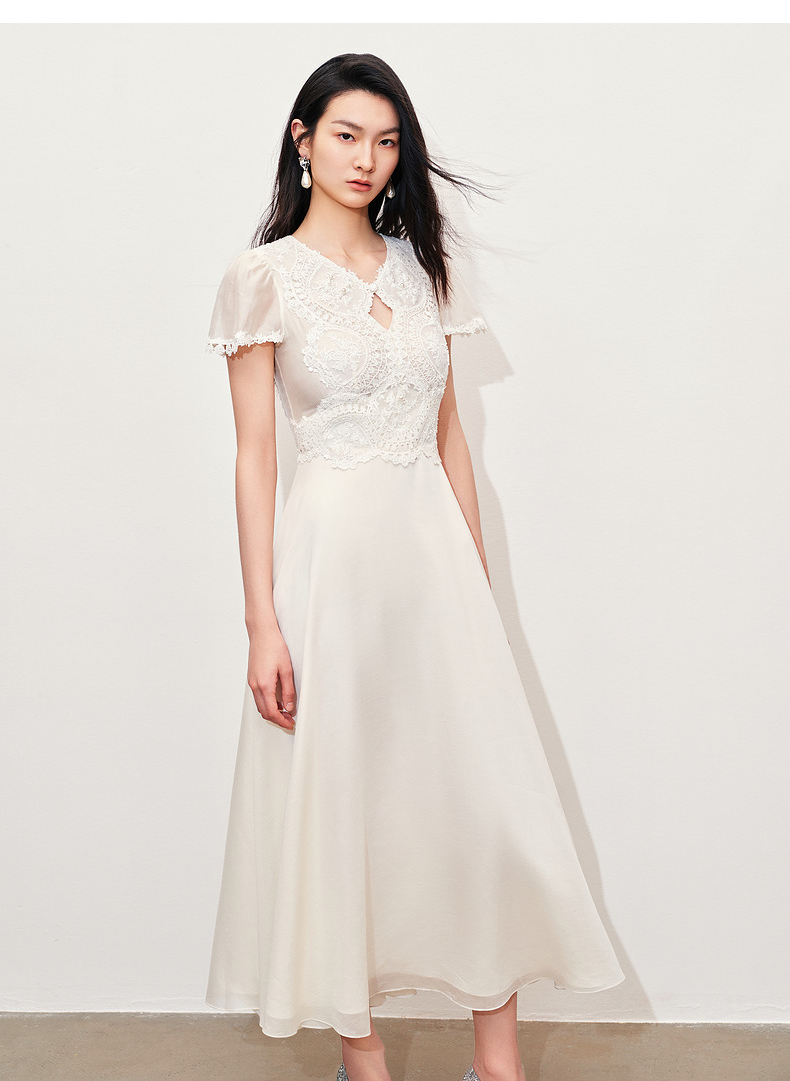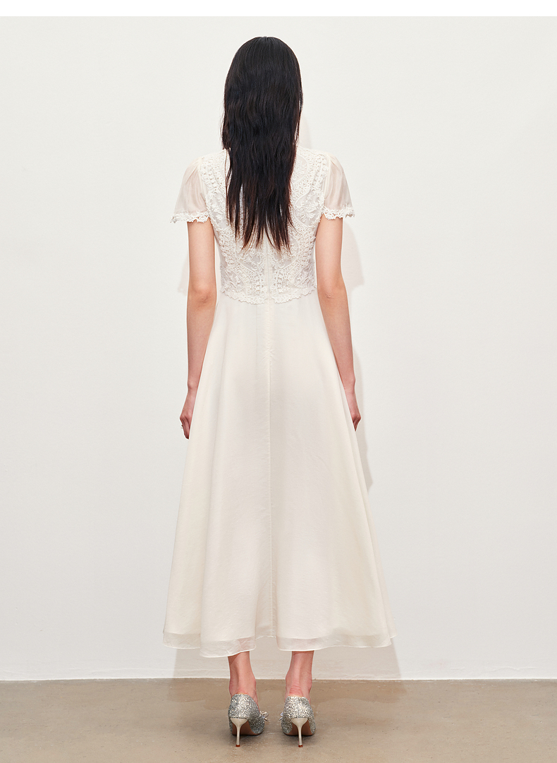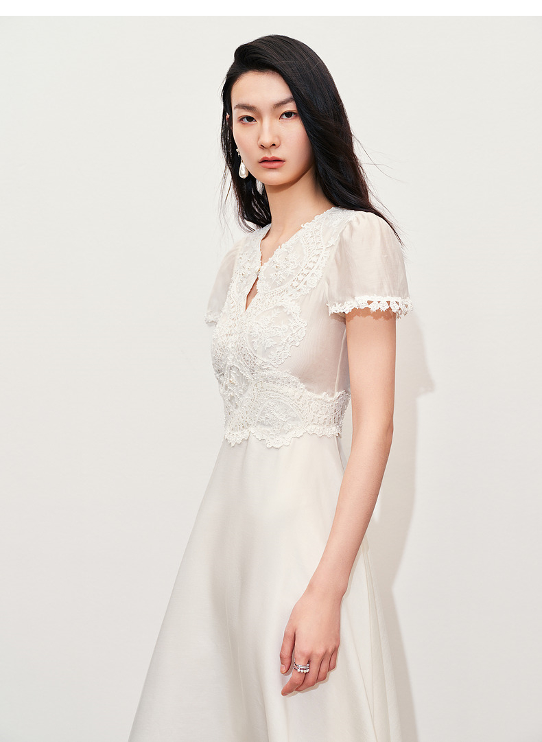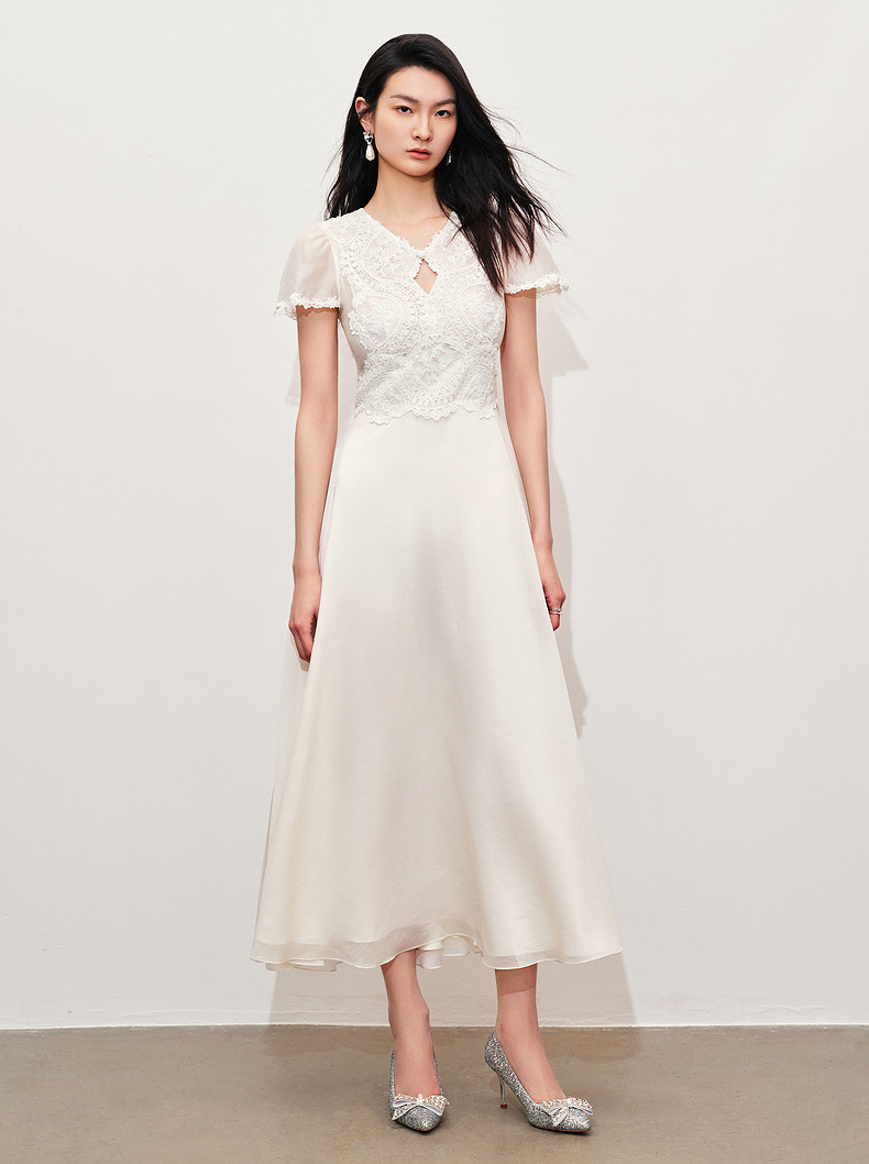 【商场同款】MAXRIENY精致蜜桃蕾丝珍珠连衣裙修身长裙(货号:MC85DR050)