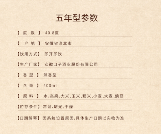 【推荐】口子窖5年型 兼香型40.8度400ML 单瓶装(新老包装随机发货)