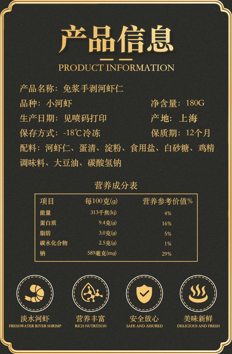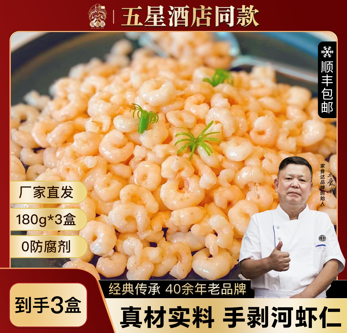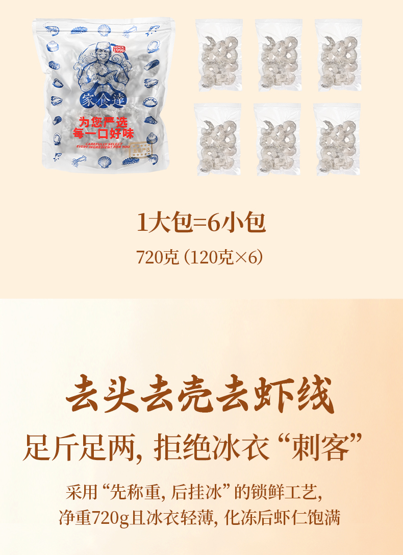 大号青虾仁720g/袋(120g*6包)免浆手剥小河虾仁180g/盒 手工现剥 活虾急冻去头去壳去虾线 0防腐剂0保水剂0增白剂