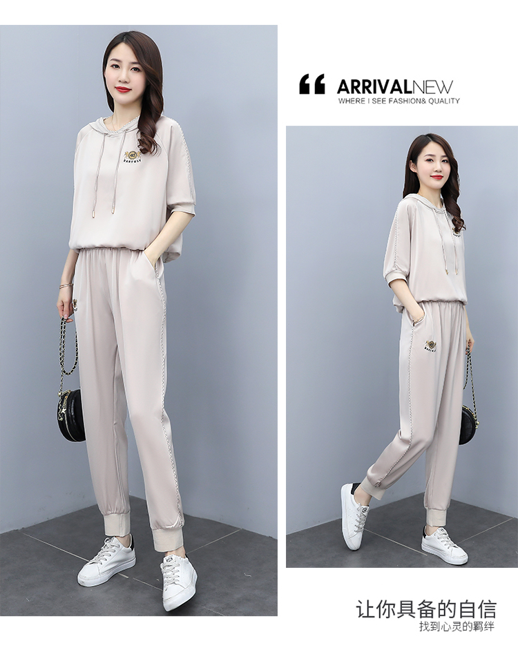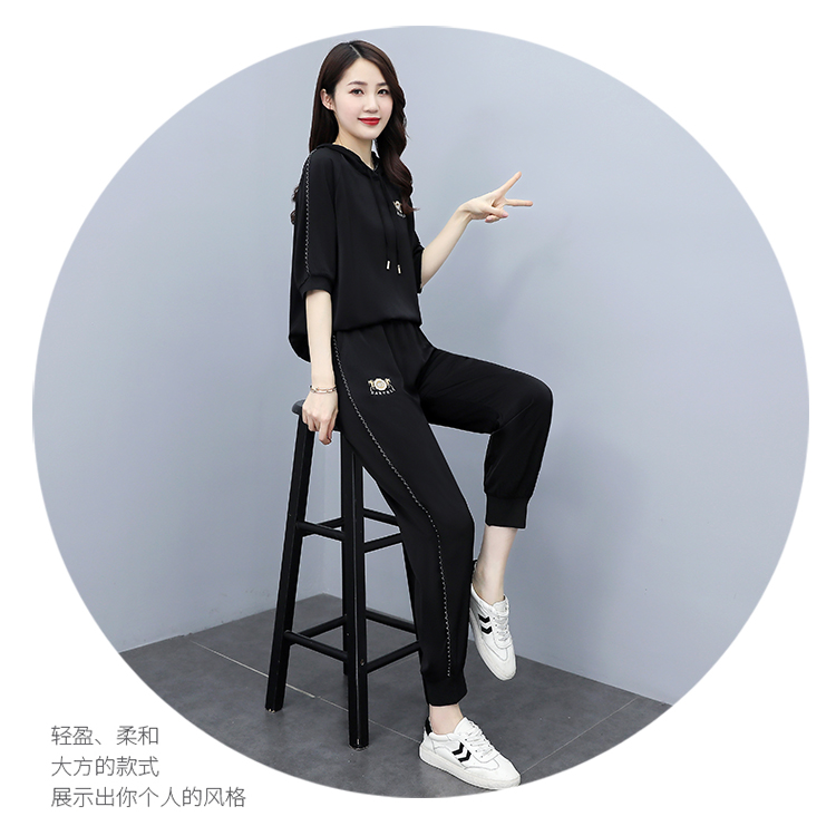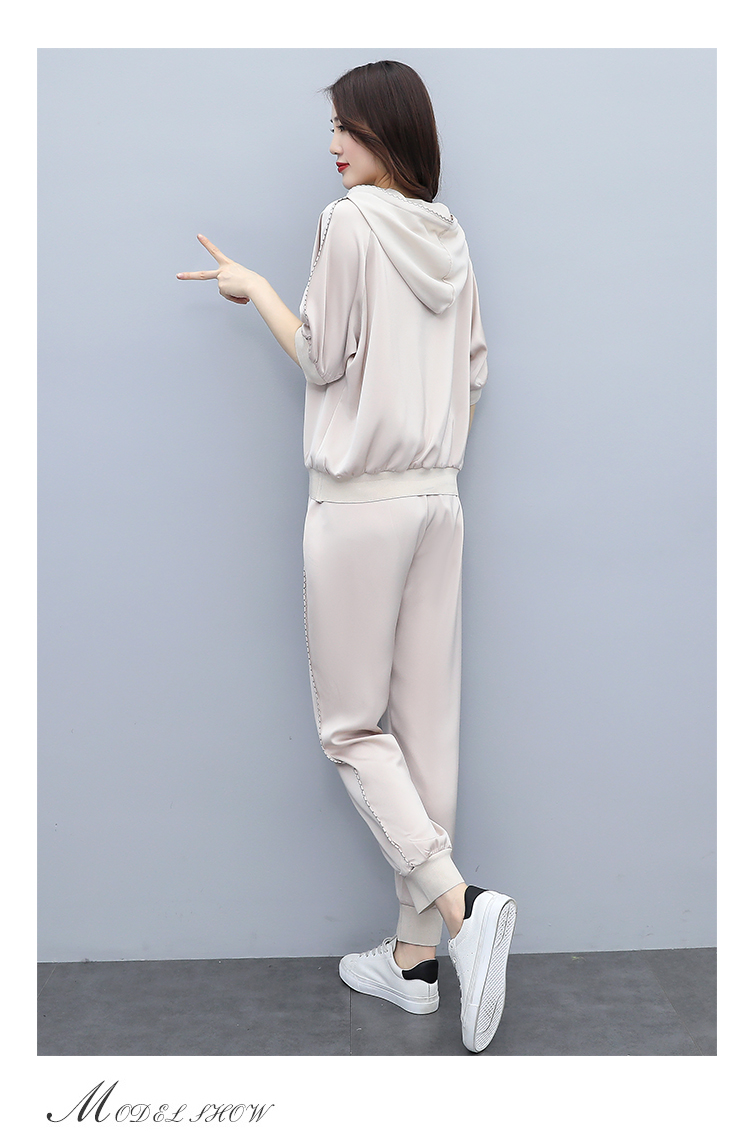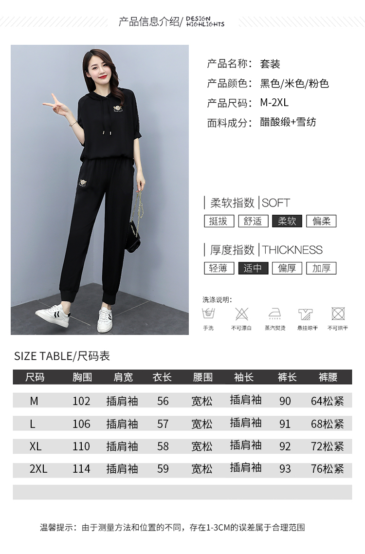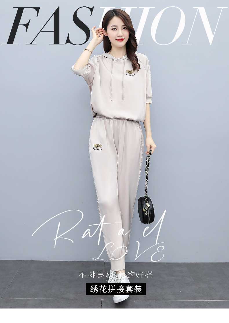23新款时尚醋酸绣花拼接连帽修身显瘦套装YWY8813K198-6