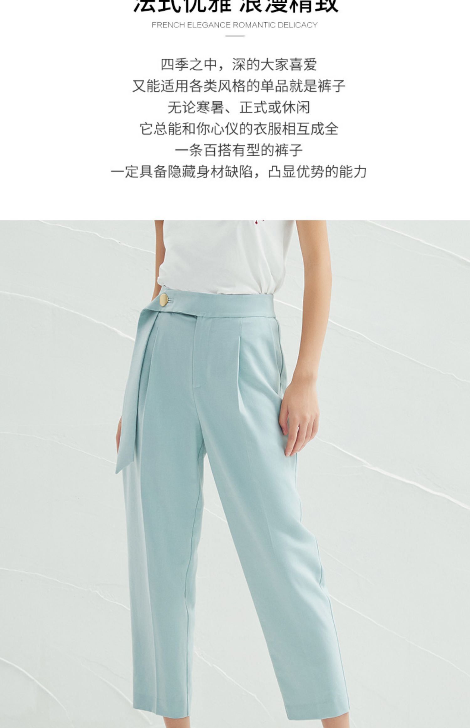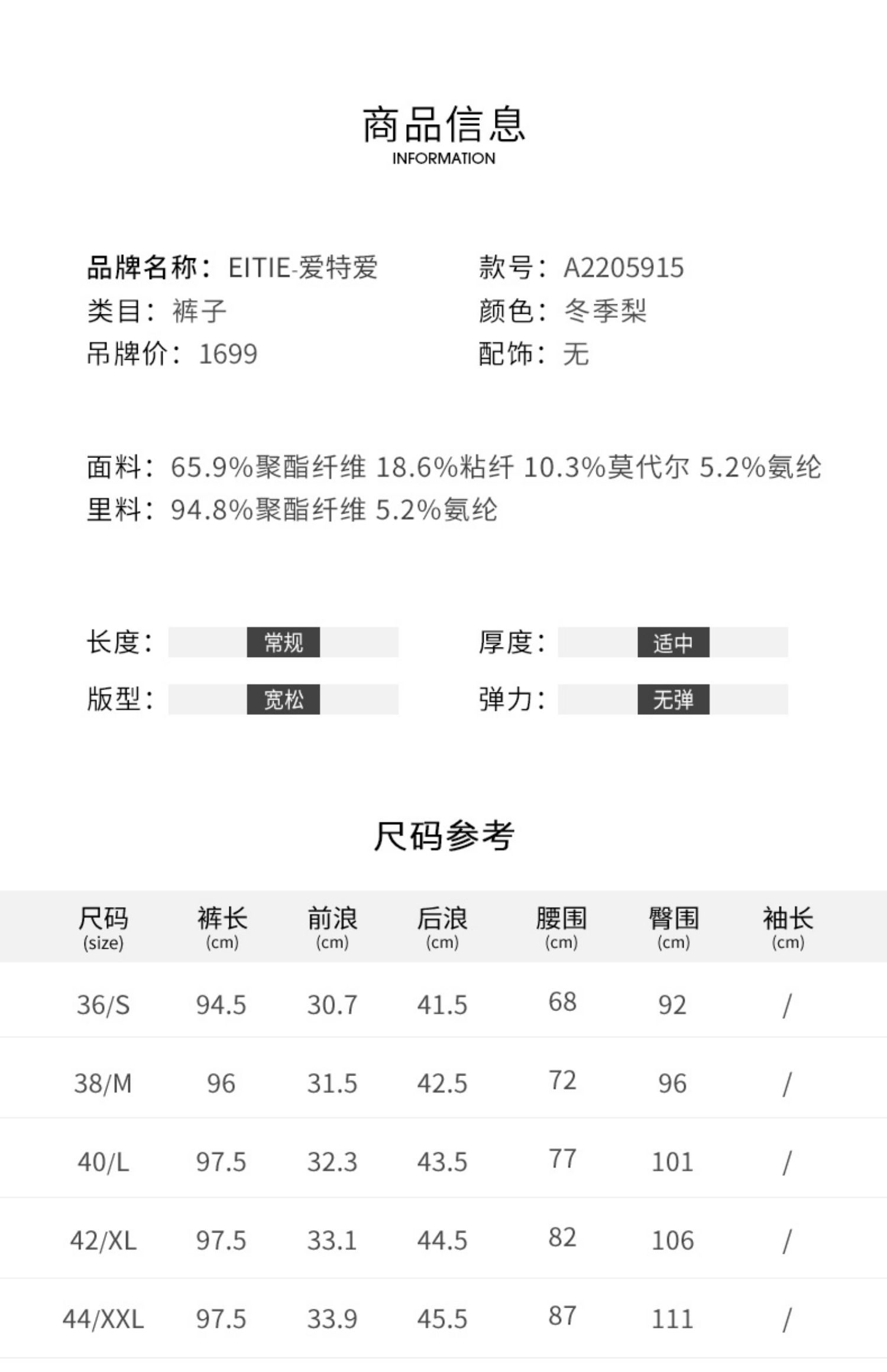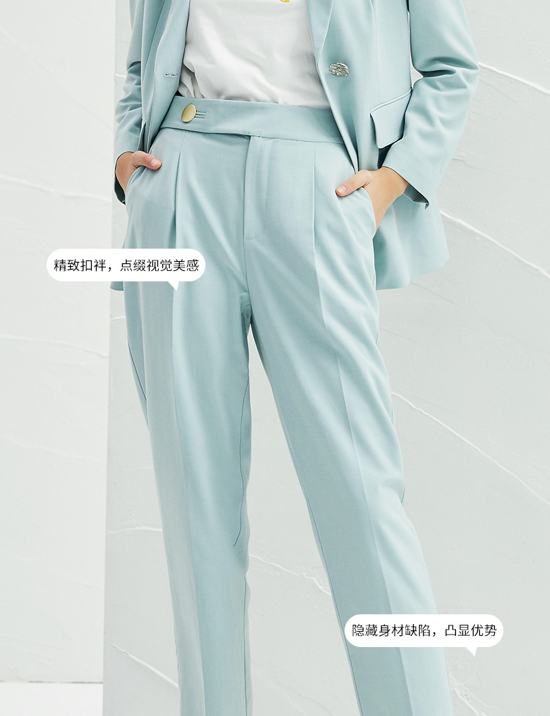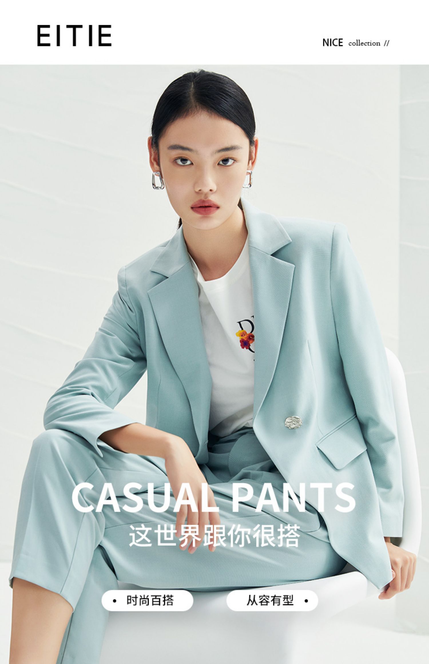 EITIE爱特爱春季新款高腰直筒西装裤女休闲舒适通勤纯色百搭裤子A2205915