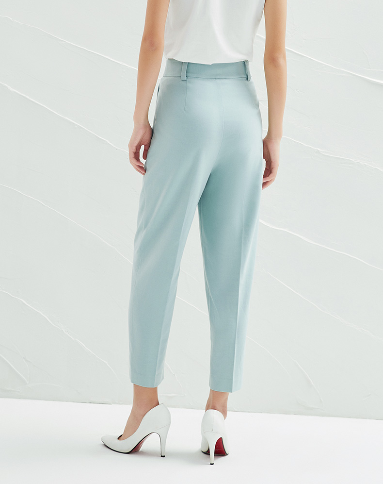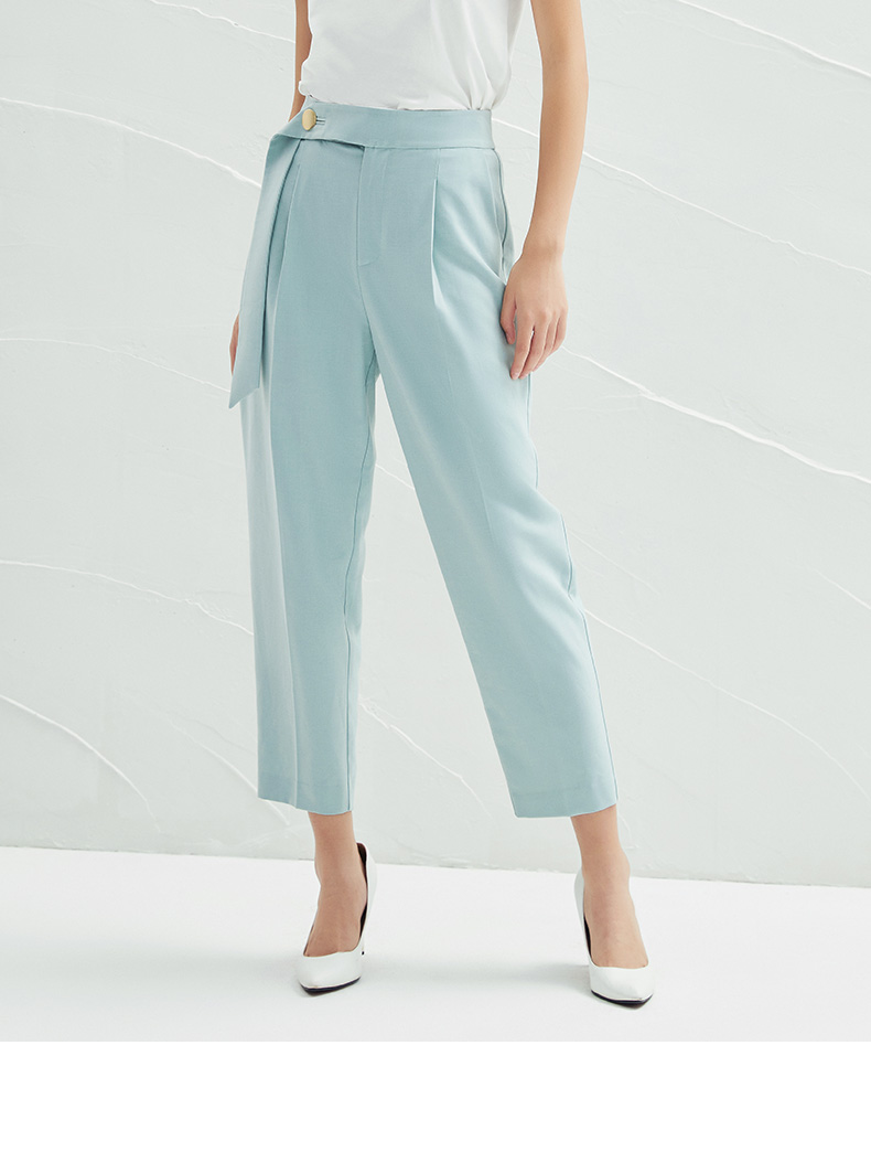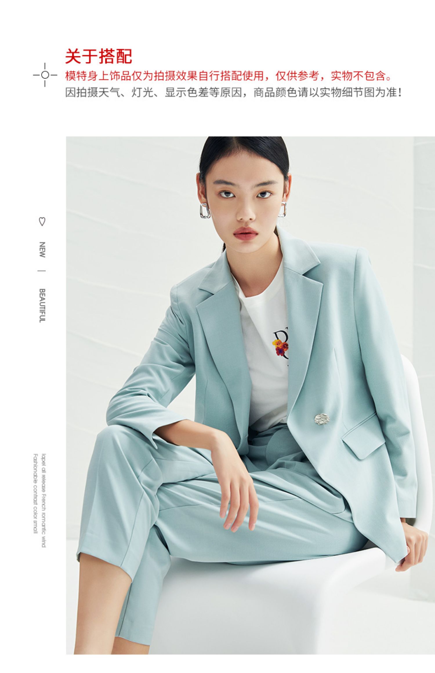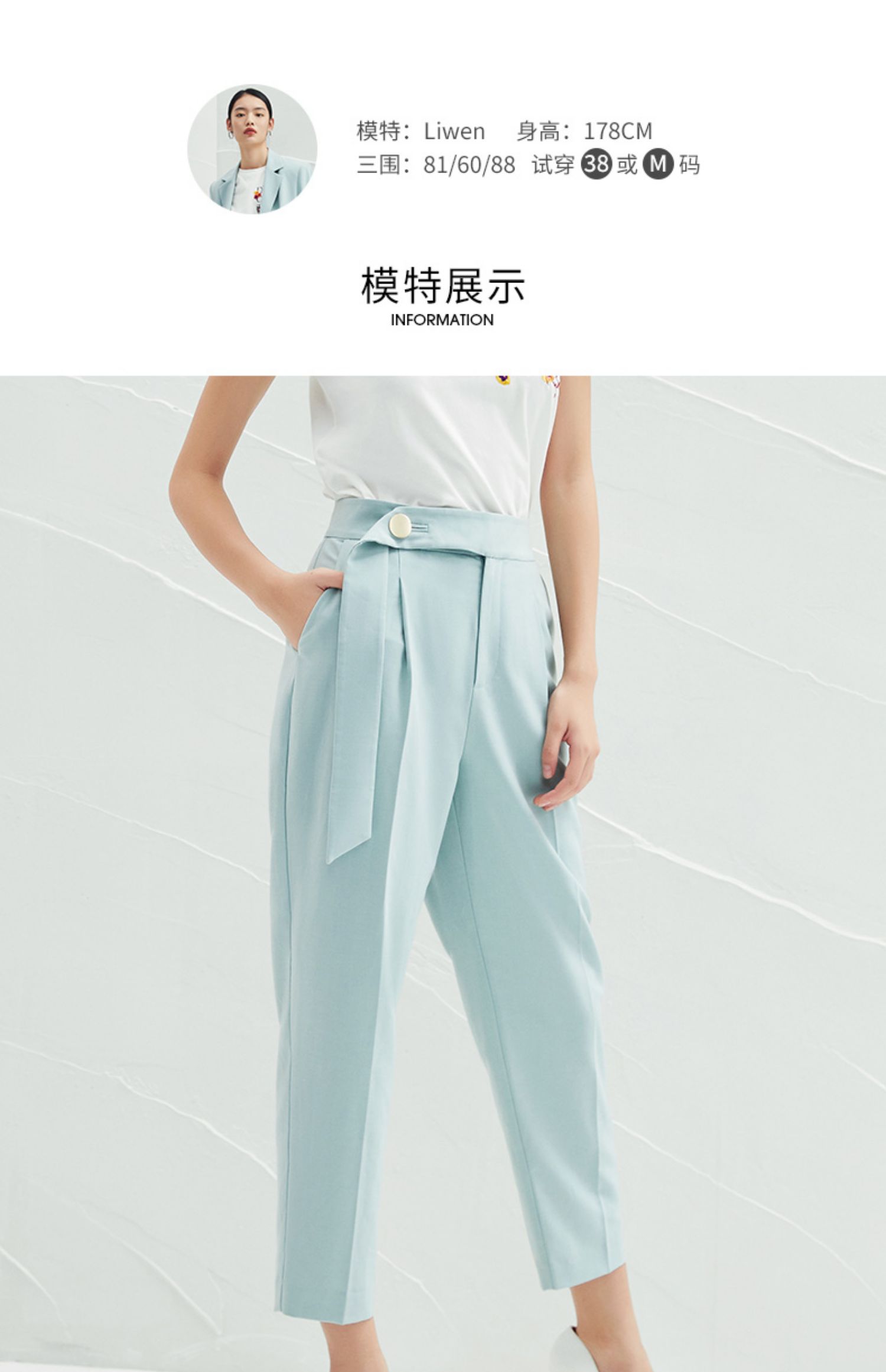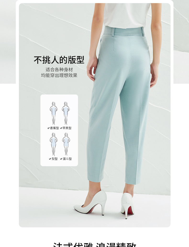 EITIE爱特爱春季新款高腰直筒西装裤女休闲舒适通勤纯色百搭裤子A2205915