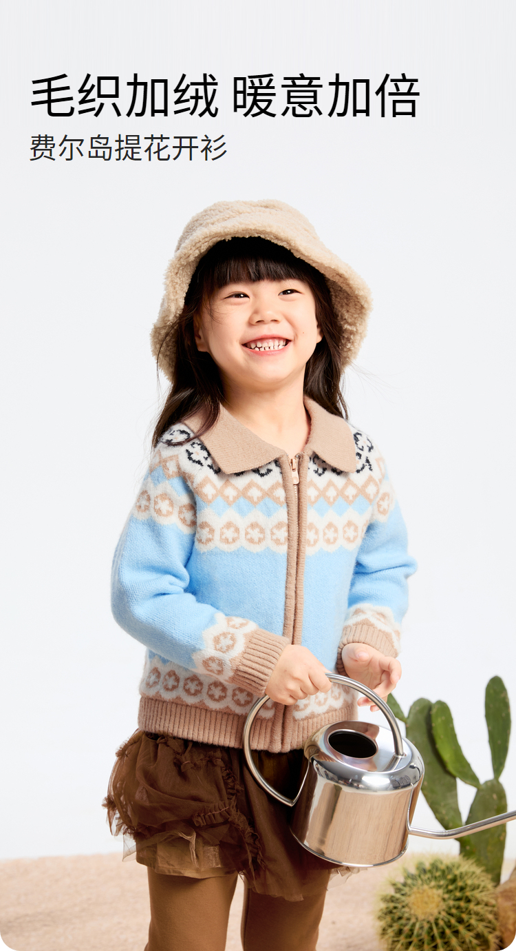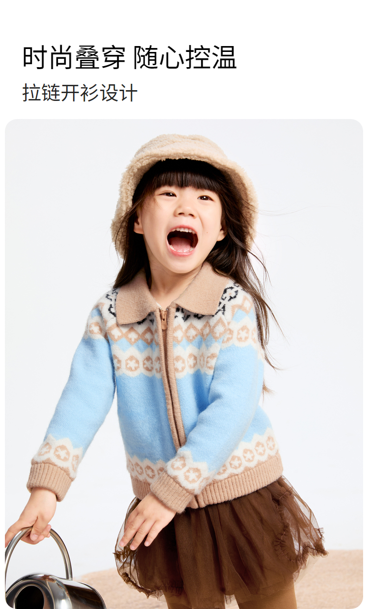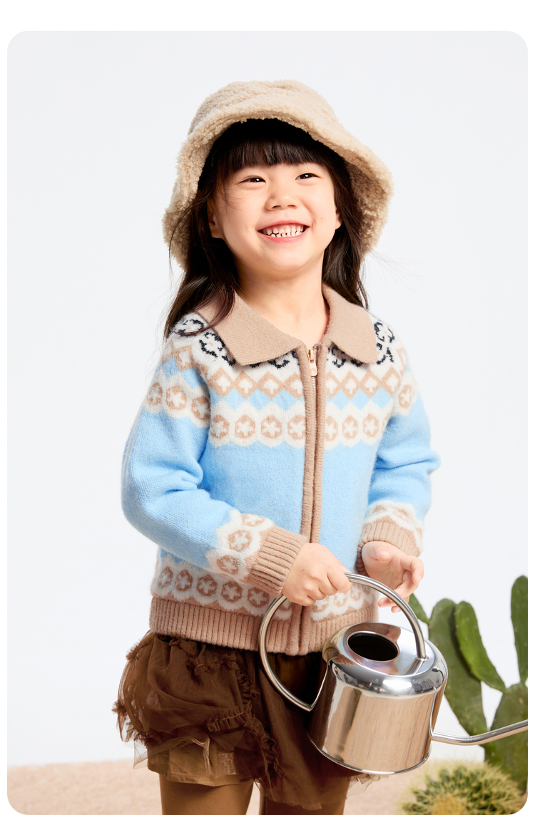 女童北极绒翻领开衫冬季新款安奈儿童装实体店同款XG444586