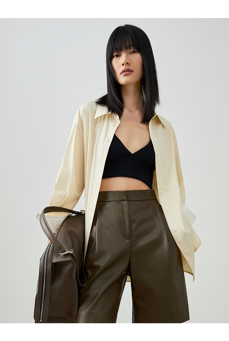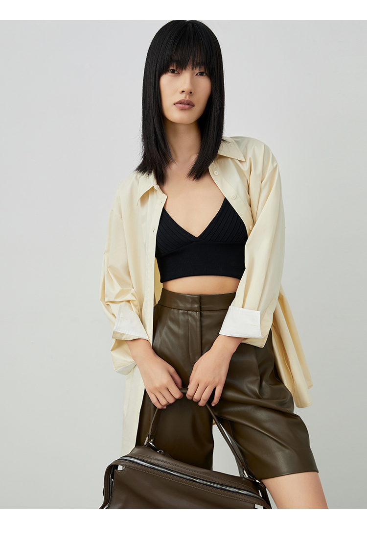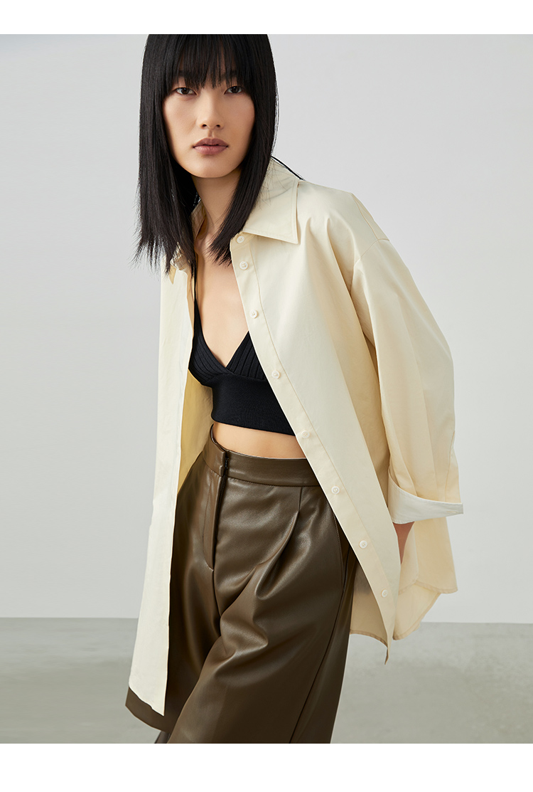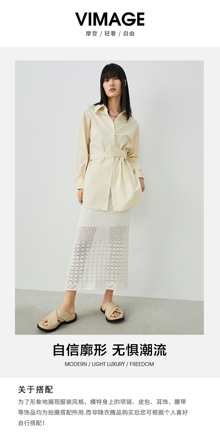 VIMAGE/纬漫纪春季新款时尚个性设计宽松帅气100%棉衬衫上衣V1709305