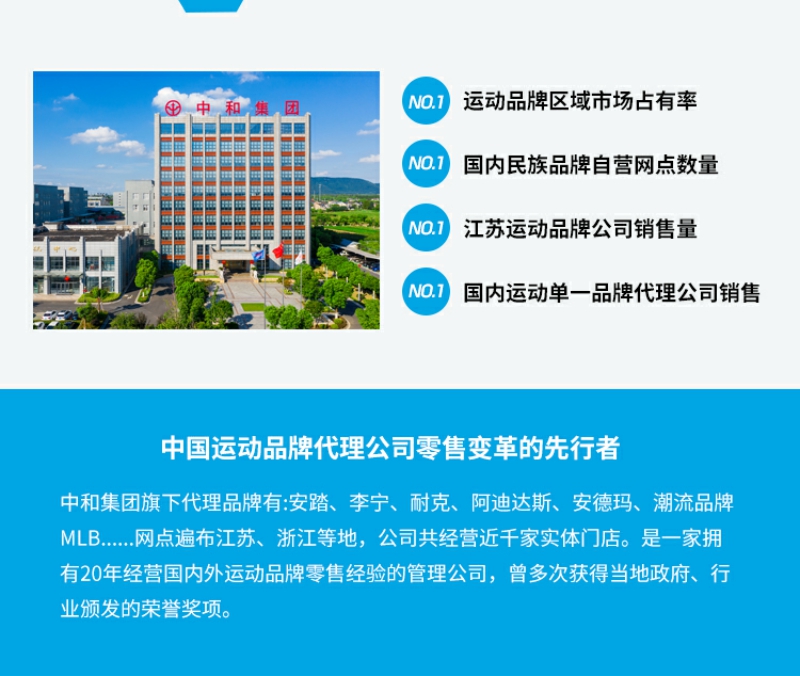 - 中和集团旗下代理安踏、李宁、耐克、安德玛、耐克、中国李宁、MIB等运动时尚品牌,网点遍布江苏、浙江、湖北等身份