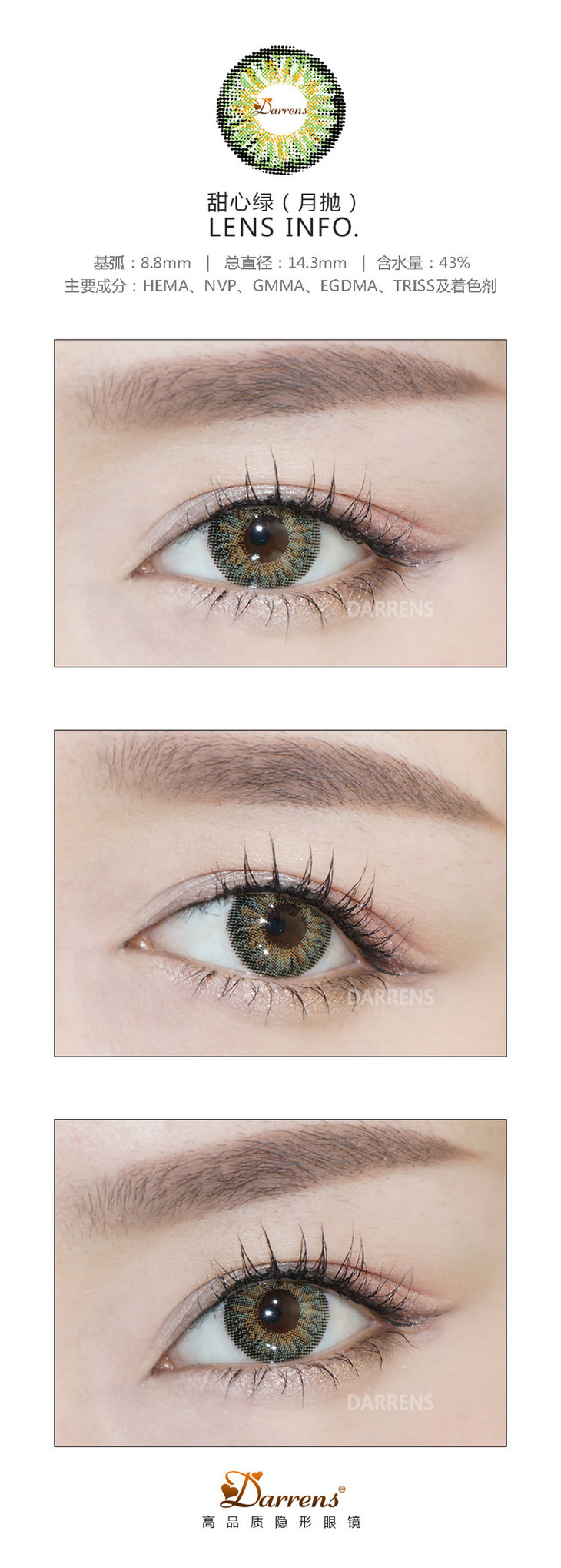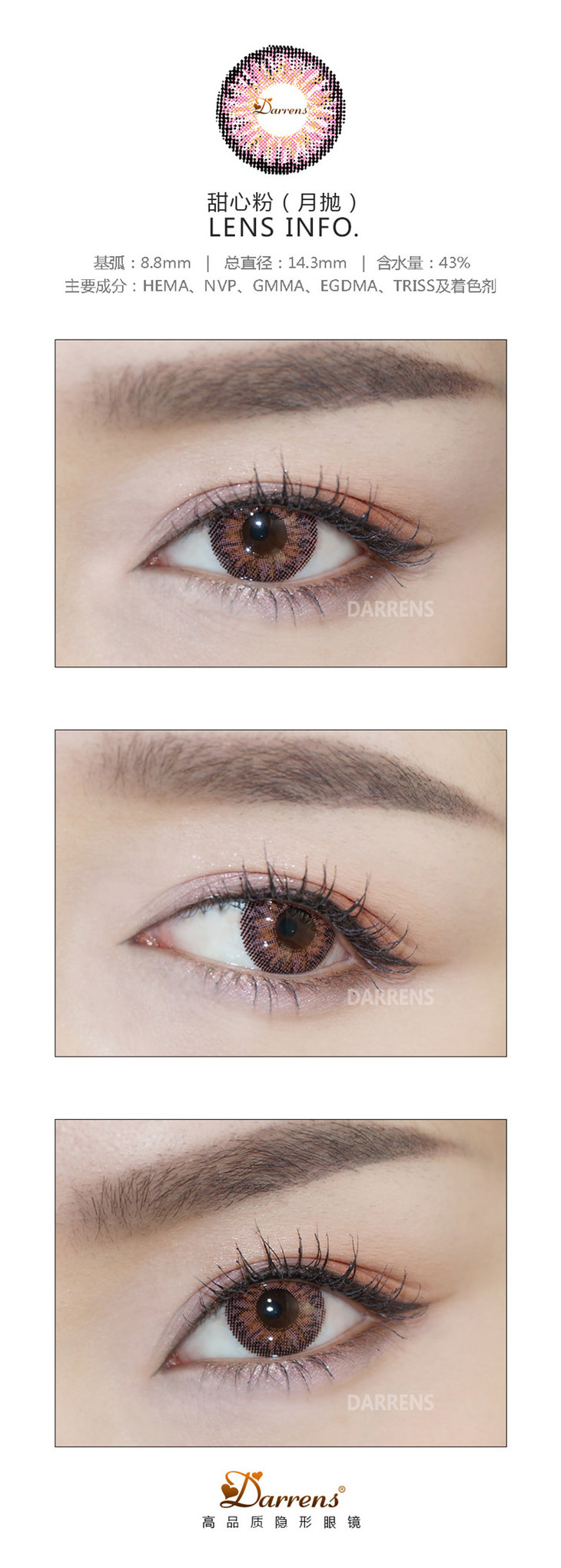 Darrens | 甜心系列棕/灰/粉/绿 | (月抛)3片 | 无售后 | 14.3mm | 适中扩瞳