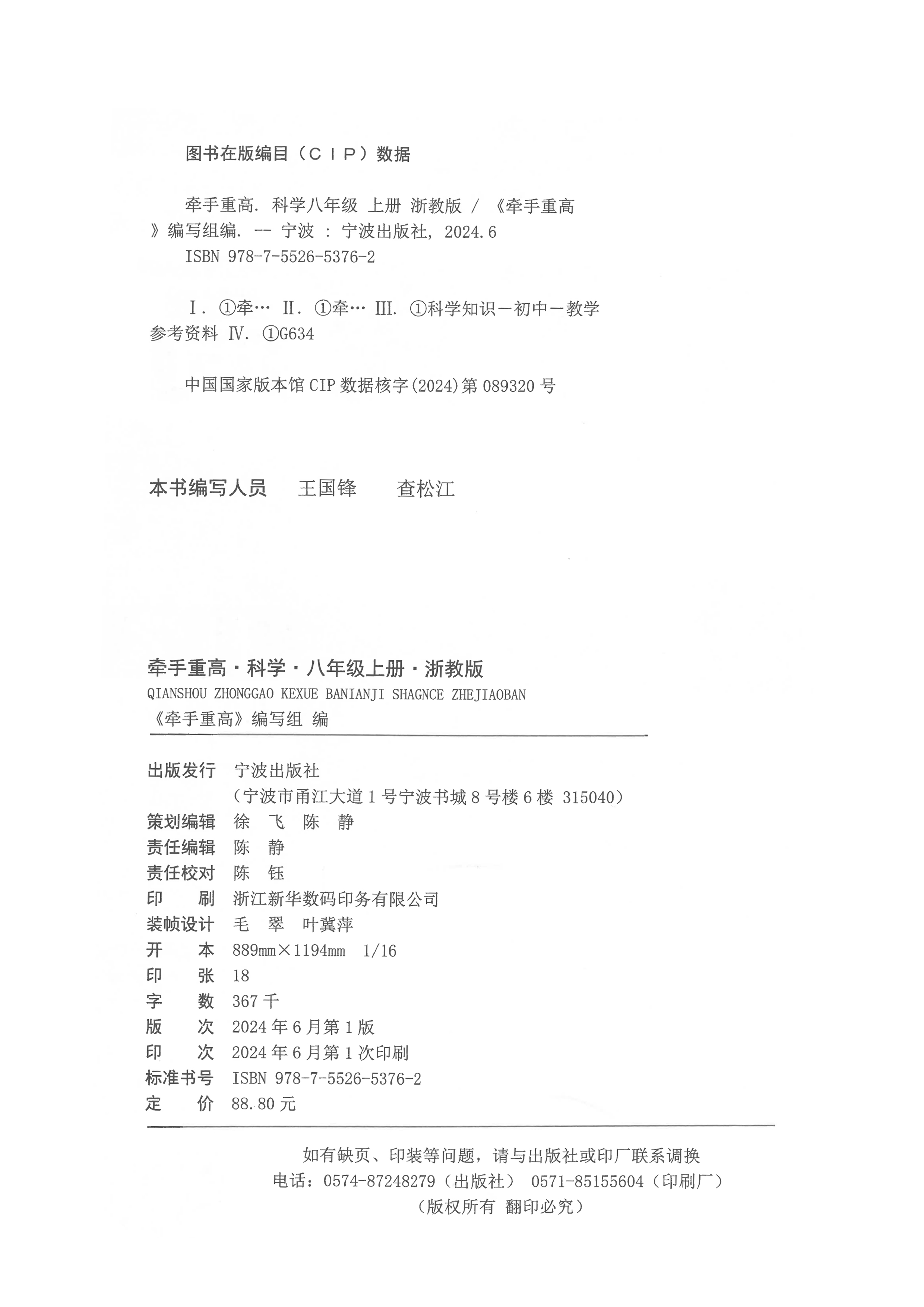 牵手重高 科学八年级上册 浙教版