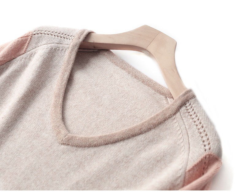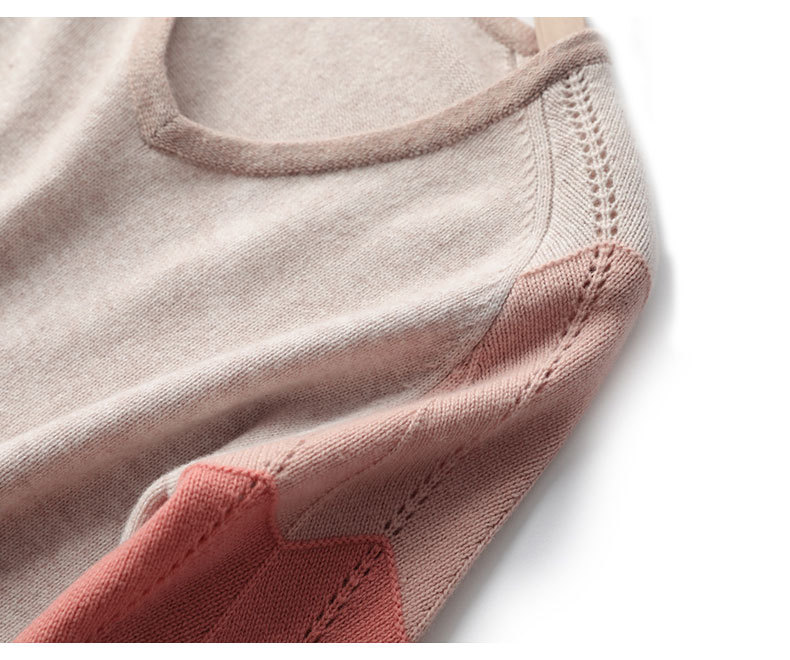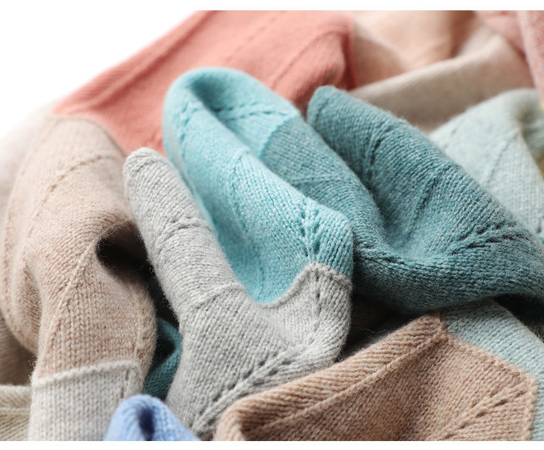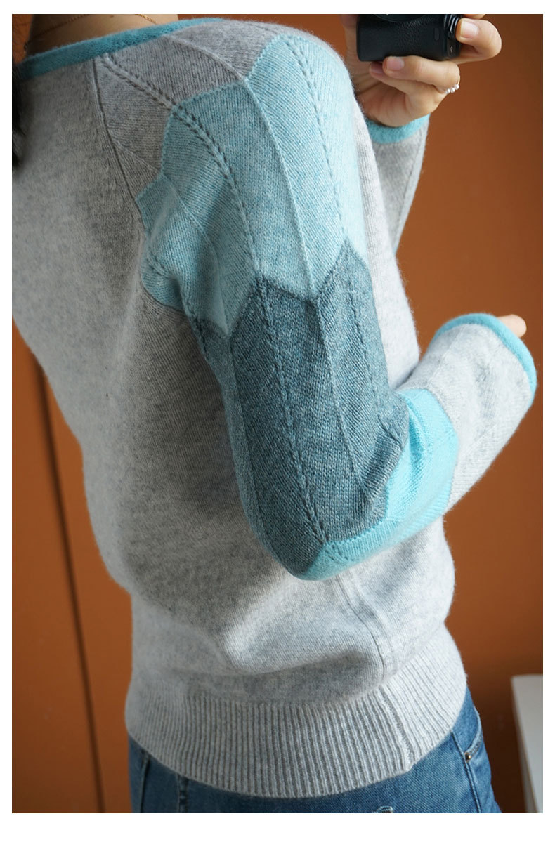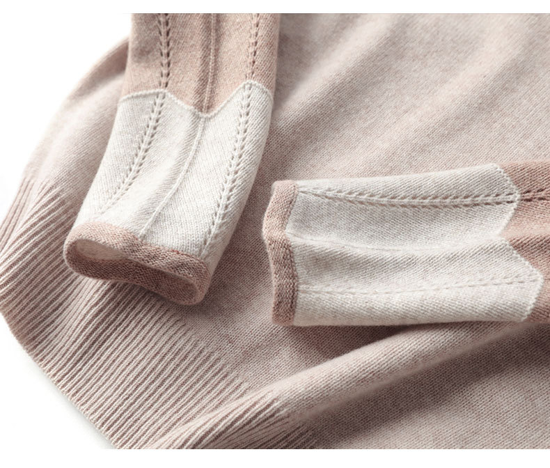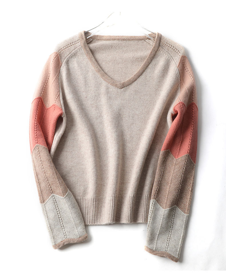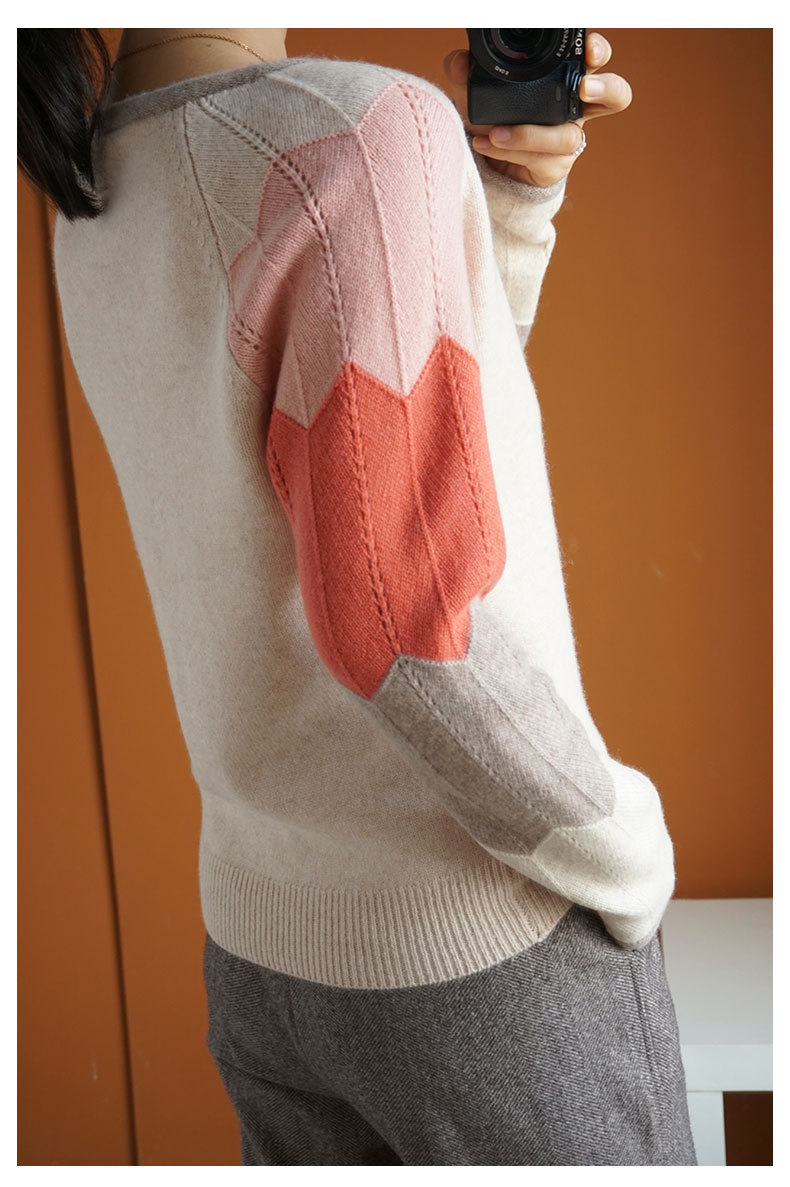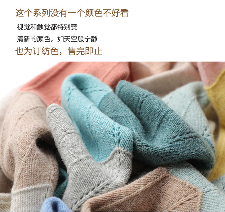 QHJY-JY807撞色羊毛衫女V领 23秋冬新款女装V领套头拼接彩色保暖针织毛衣女
