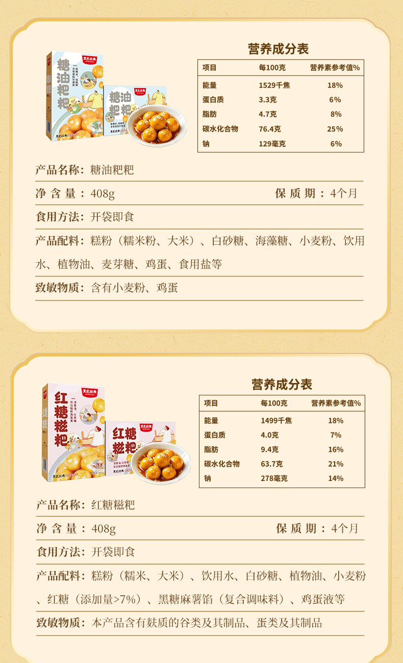 【长沙特色】黑色经典糖油糍粑 408g/盒