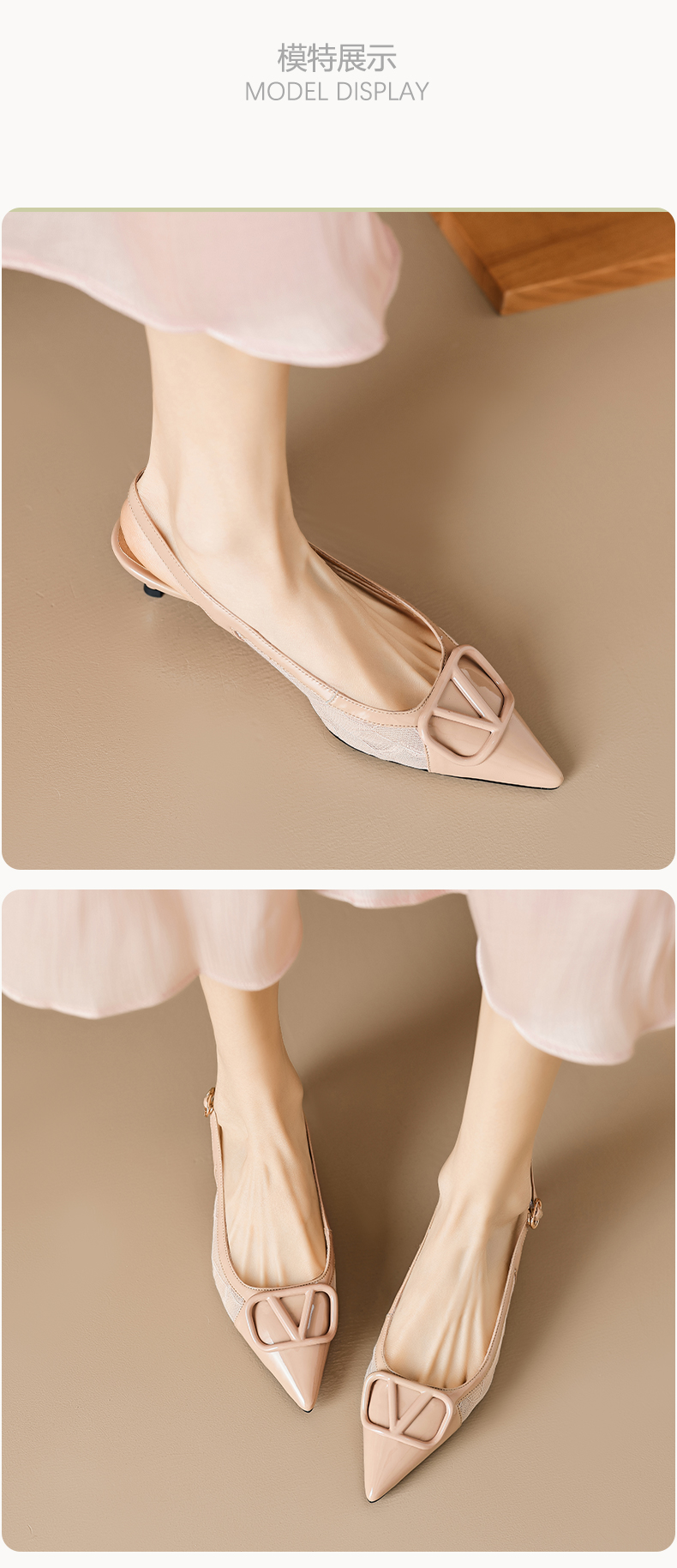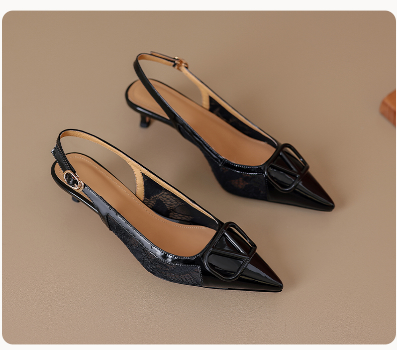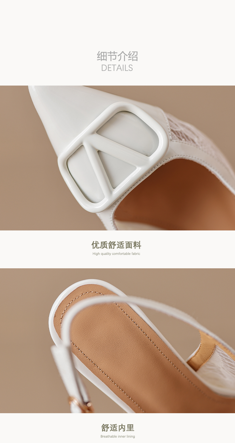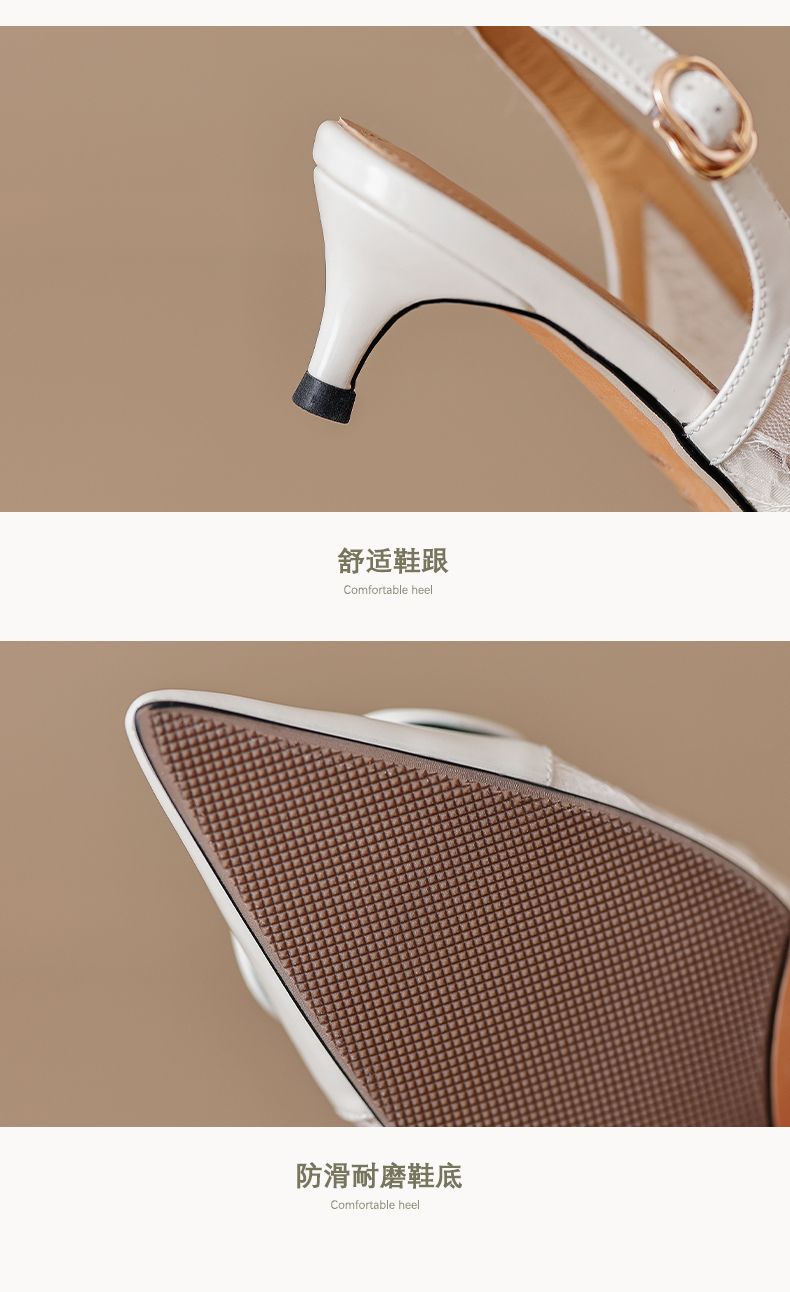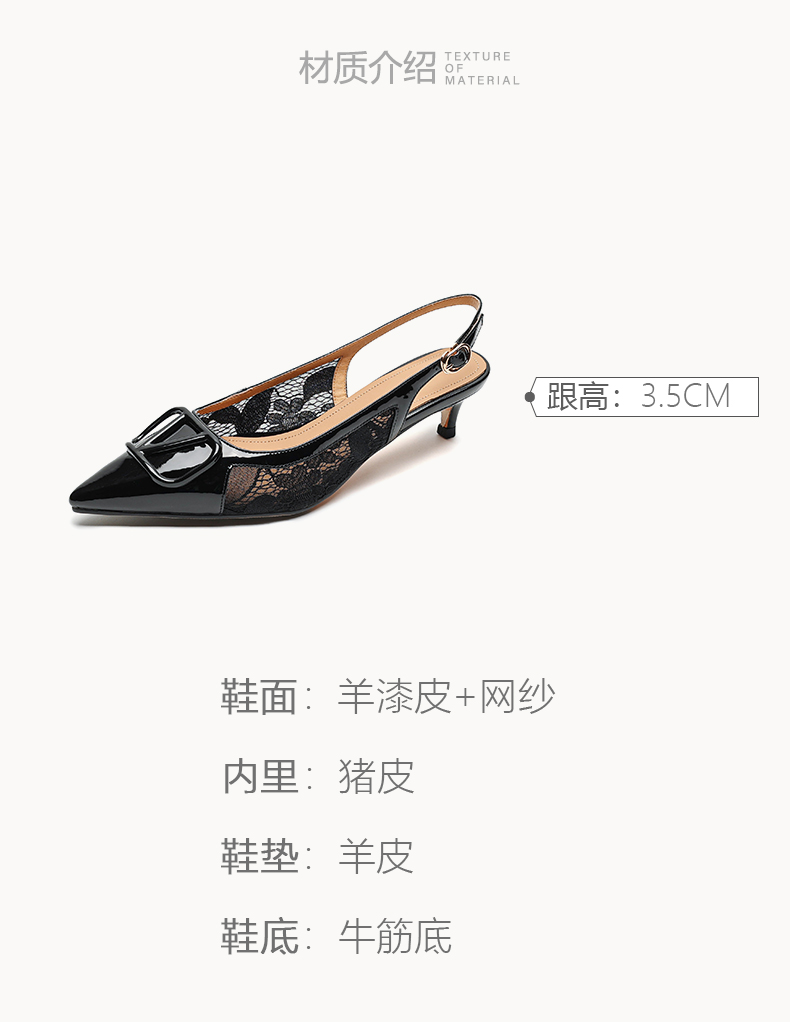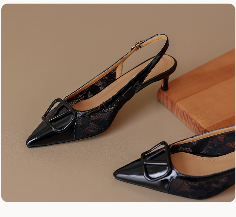 气质感V扣,尖头细跟低跟后空蕾丝凉鞋MLD-D6052