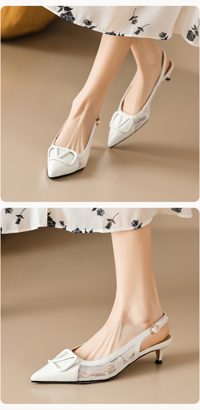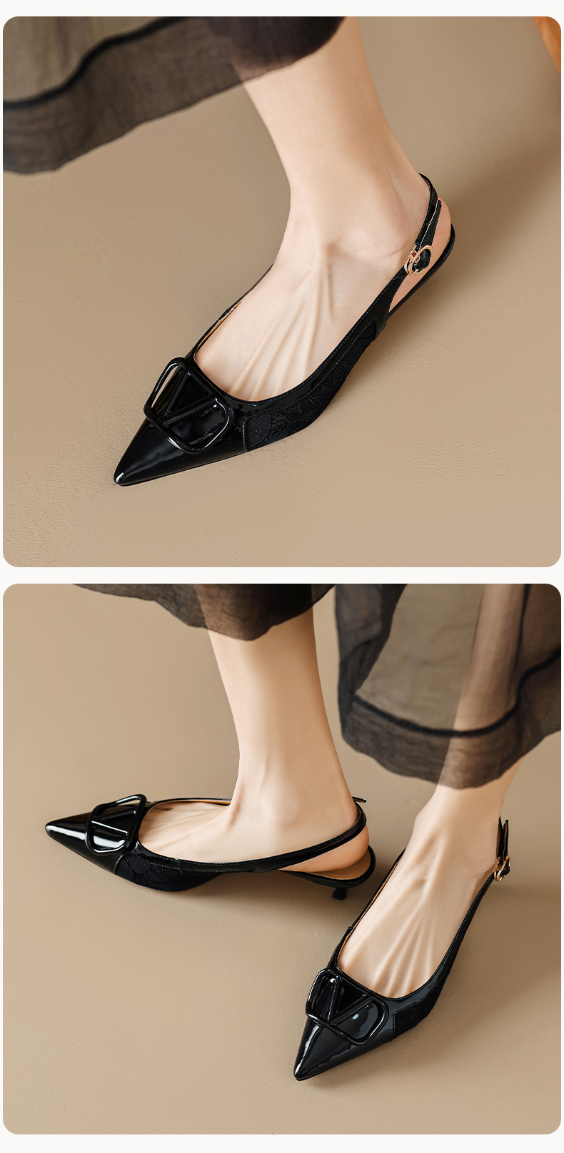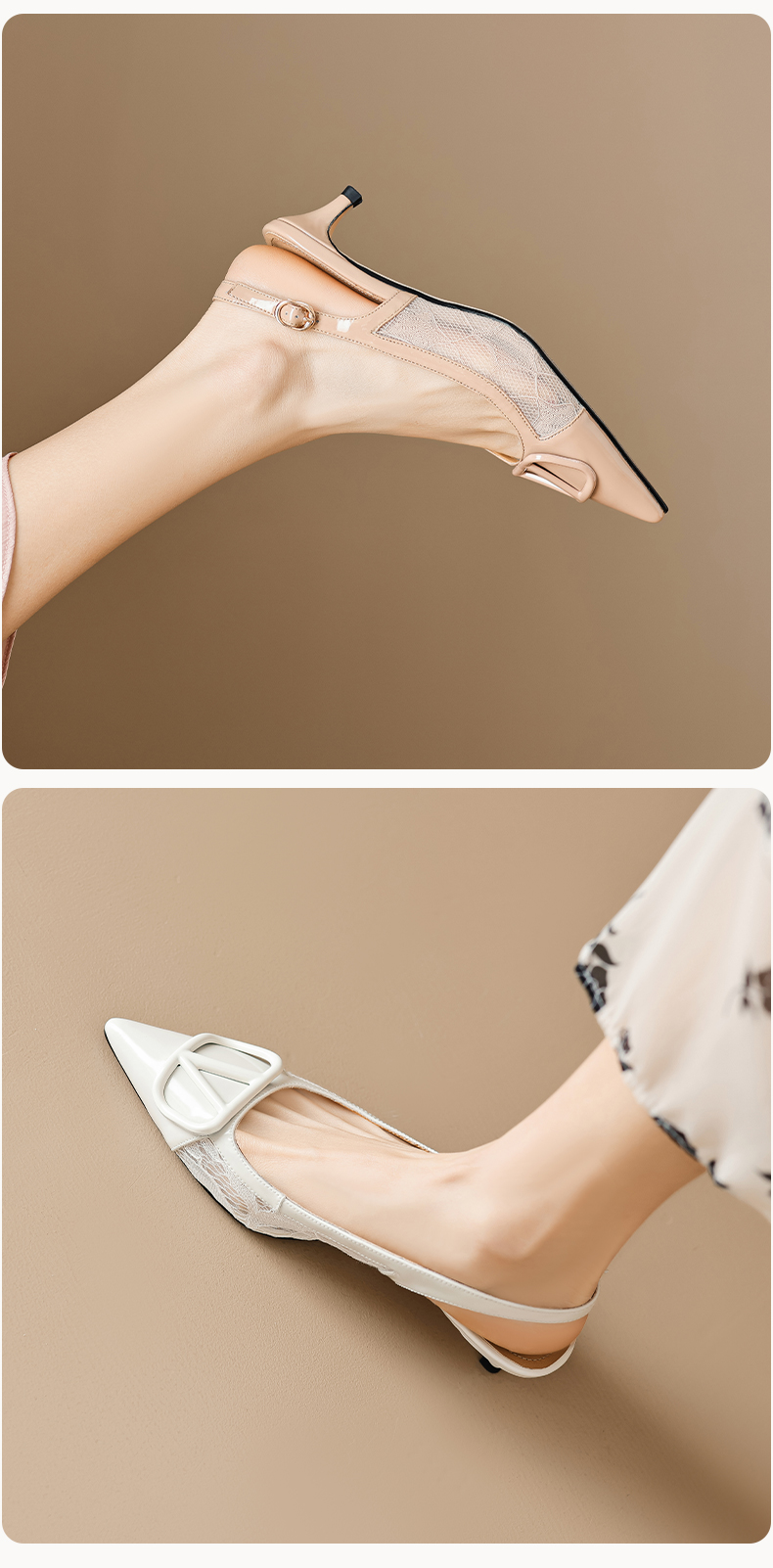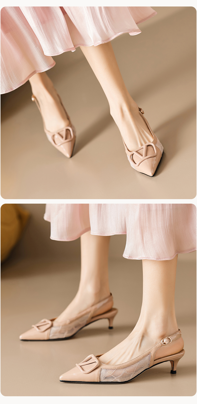 气质感V扣,尖头细跟低跟后空蕾丝凉鞋MLD-D6052