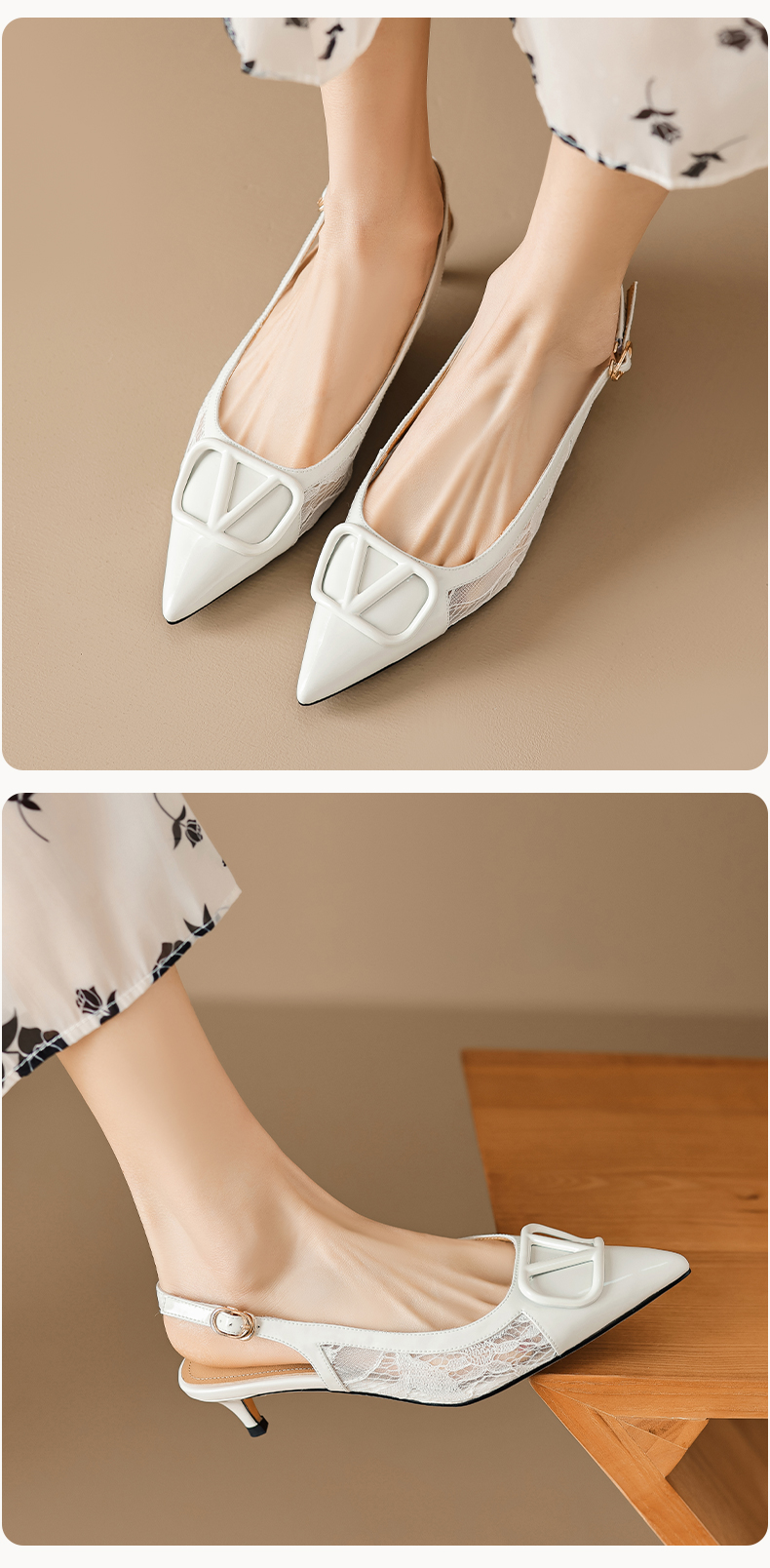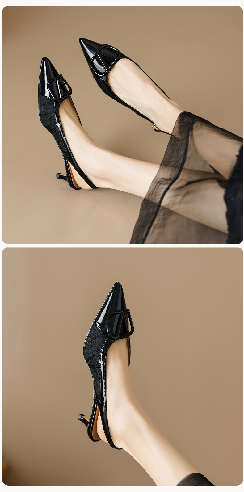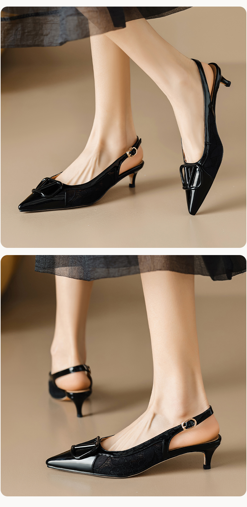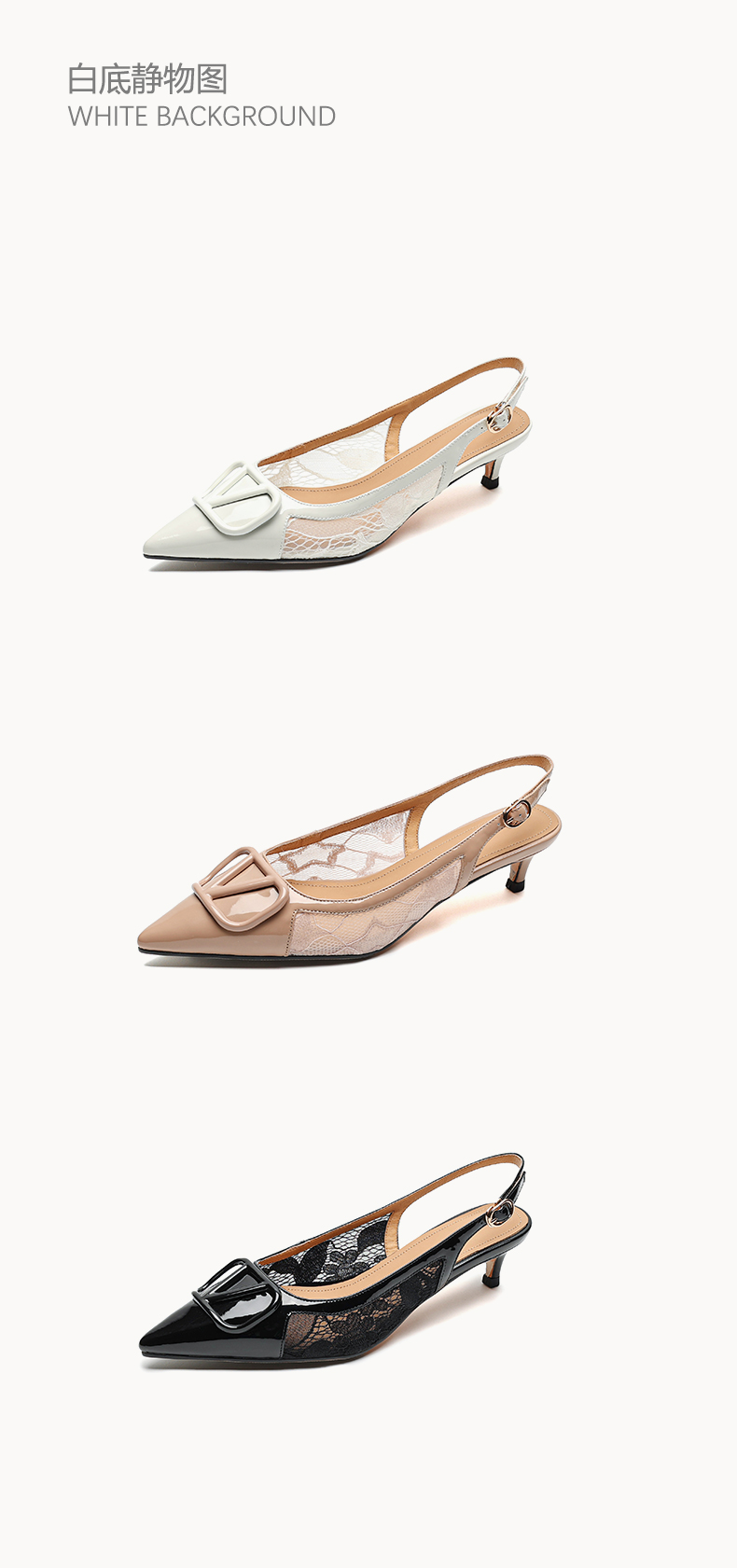 气质感V扣,尖头细跟低跟后空蕾丝凉鞋MLD-D6052