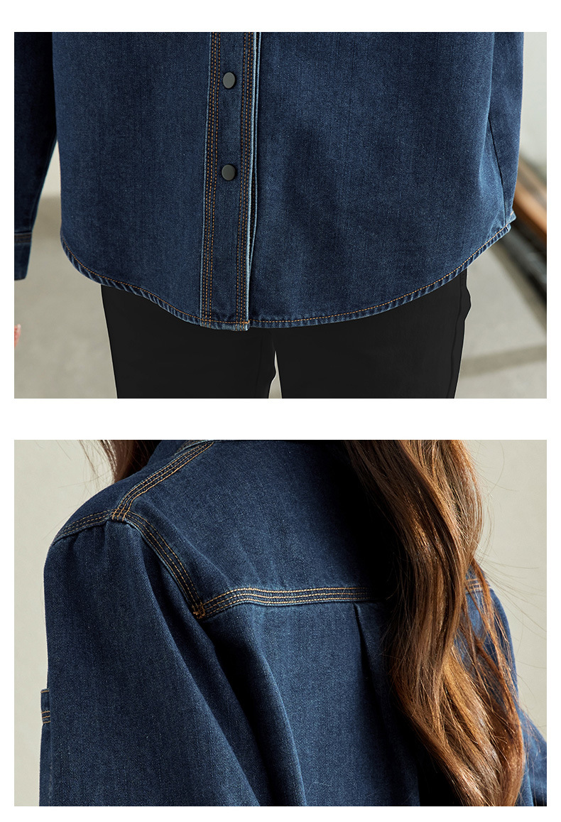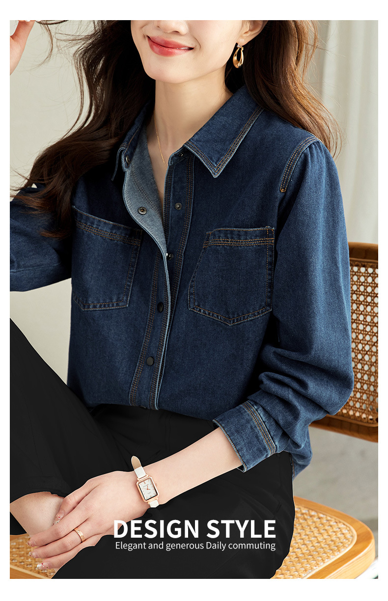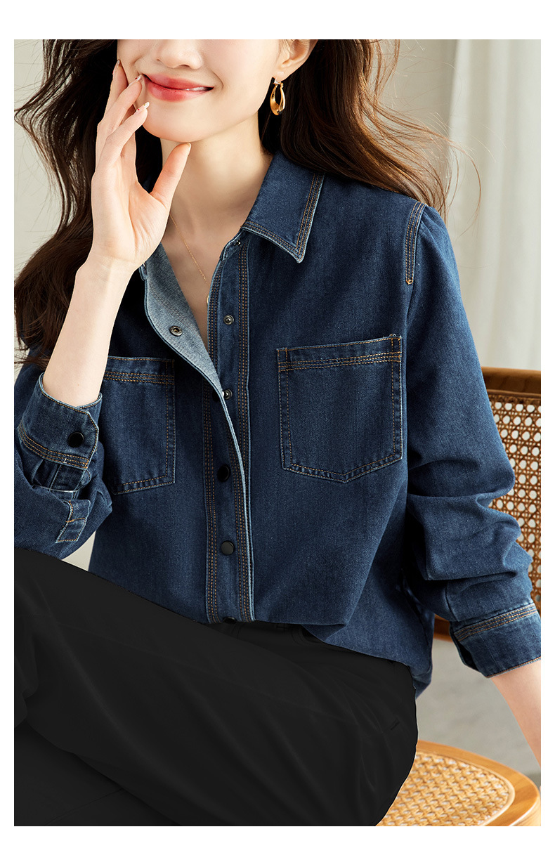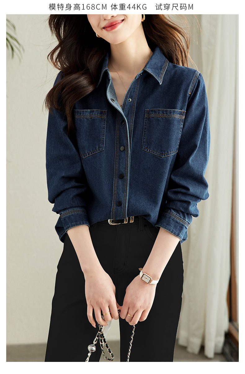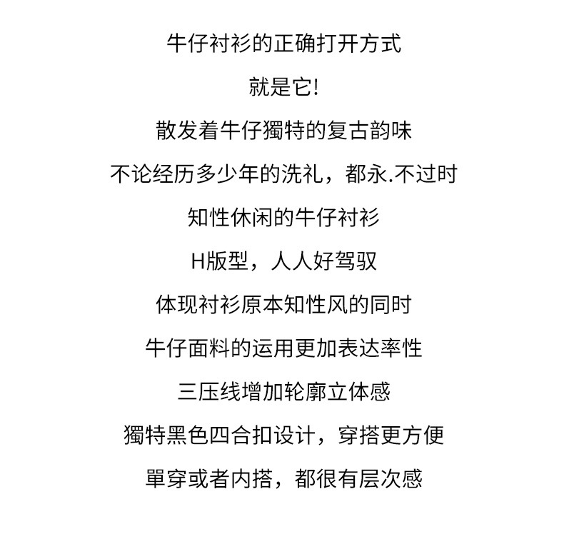 丁摩 小众设计感重工压线牛仔衬衫女气质通勤宽松百搭休闲上衣5ZF-41067