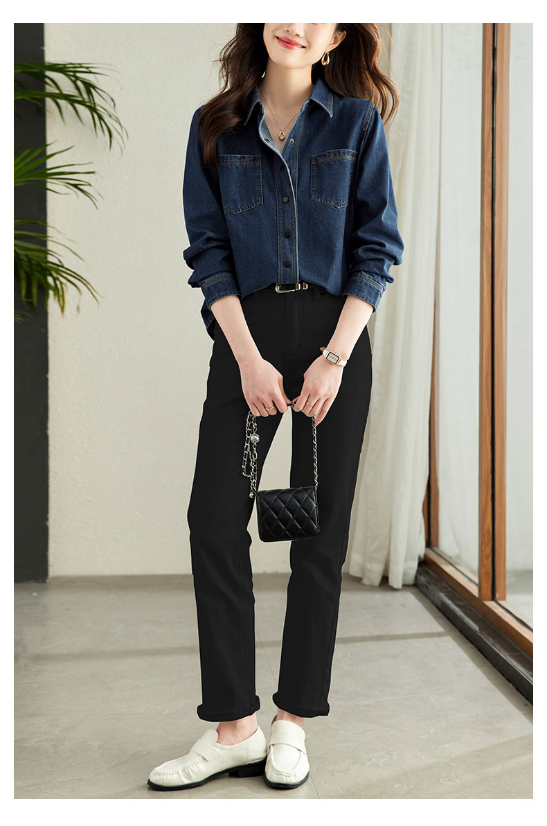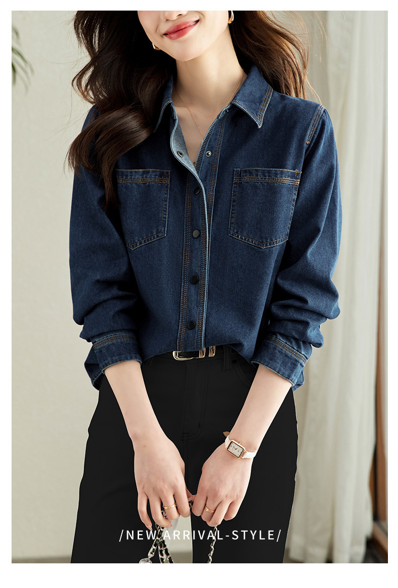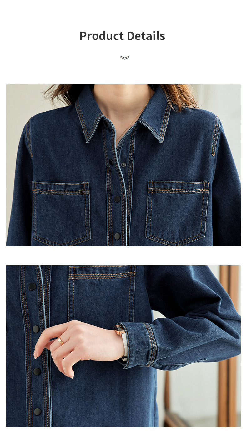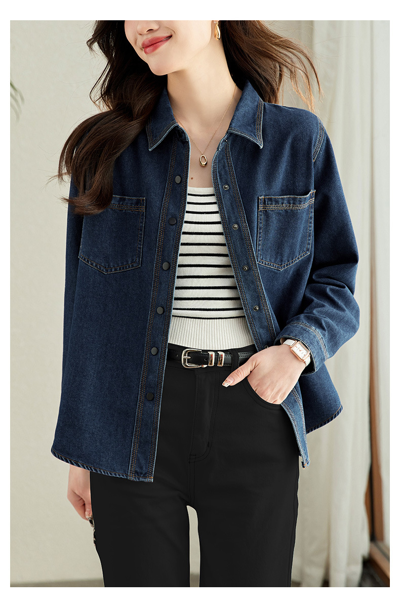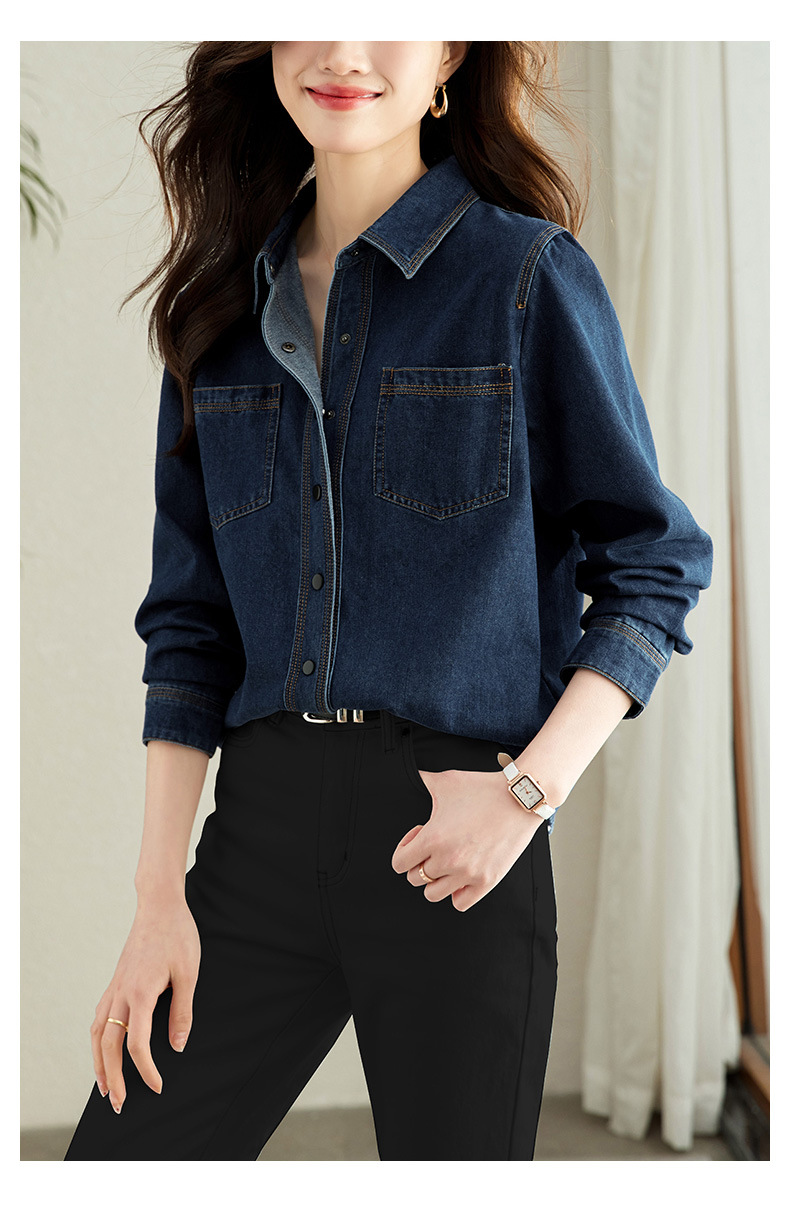 丁摩 小众设计感重工压线牛仔衬衫女气质通勤宽松百搭休闲上衣5ZF-41067