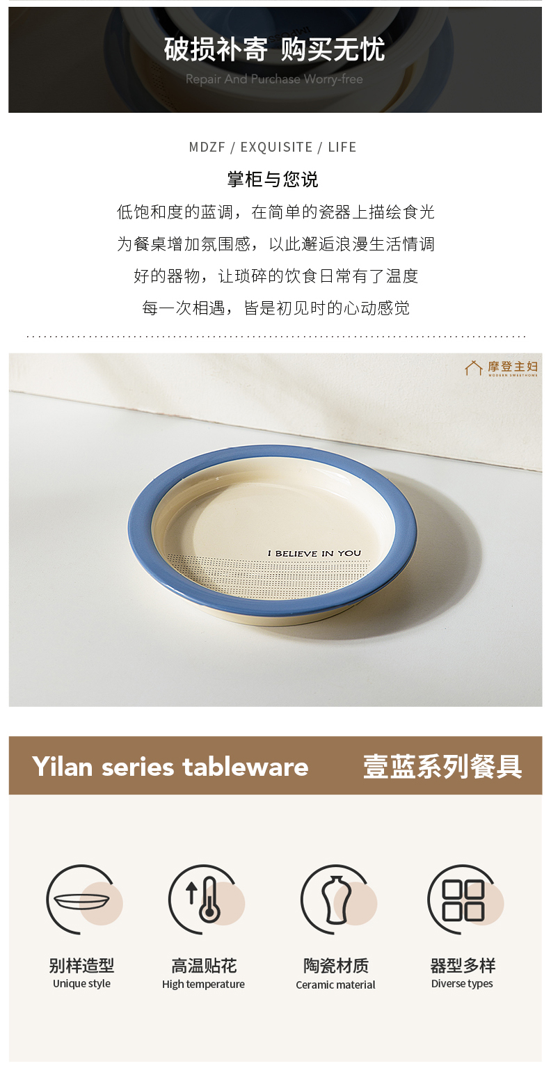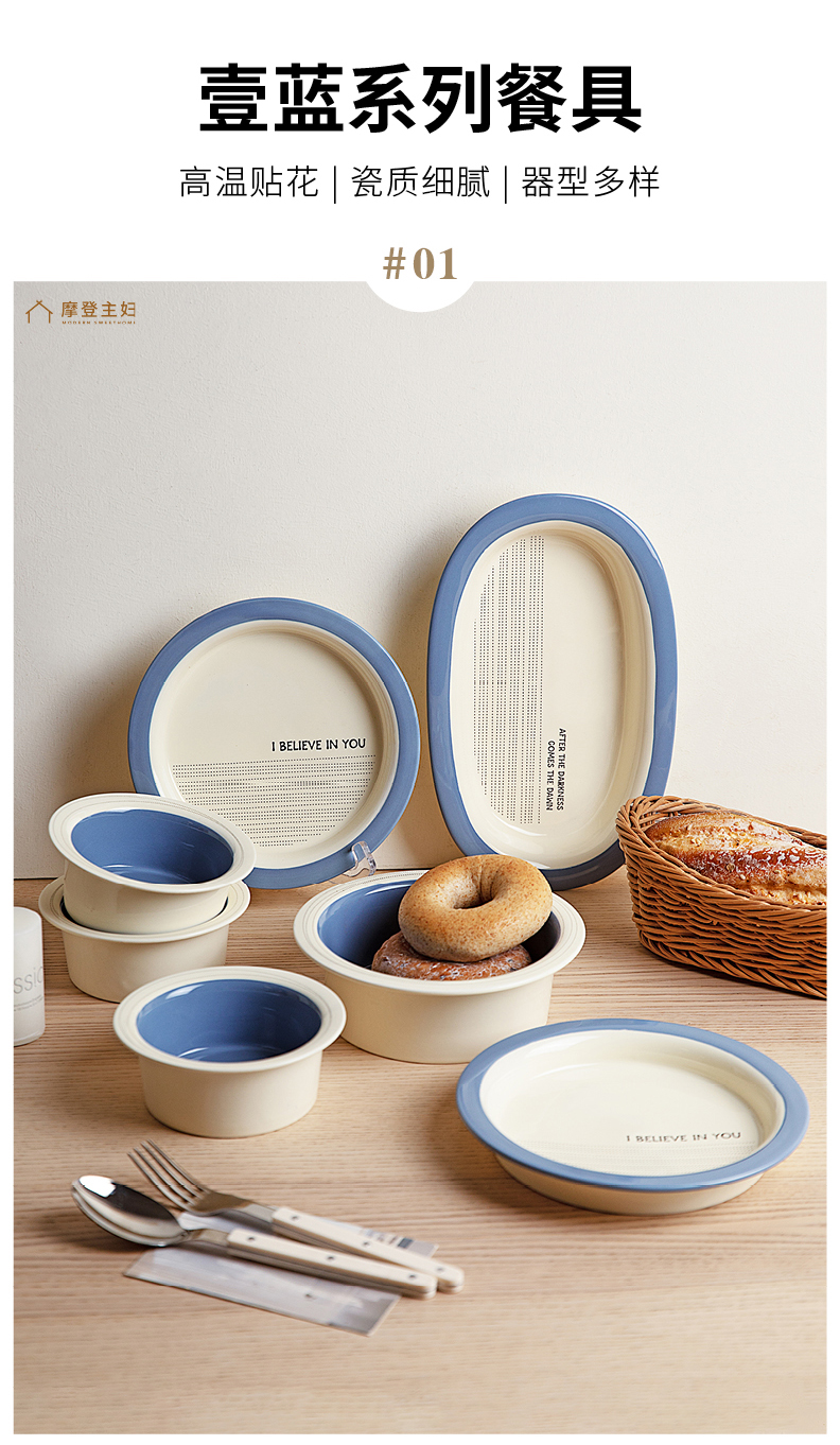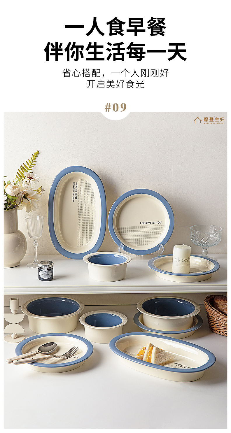 摩登主妇陶瓷酸奶碗早餐盘子家用菜盘高级感沙拉水果盘一人食餐具