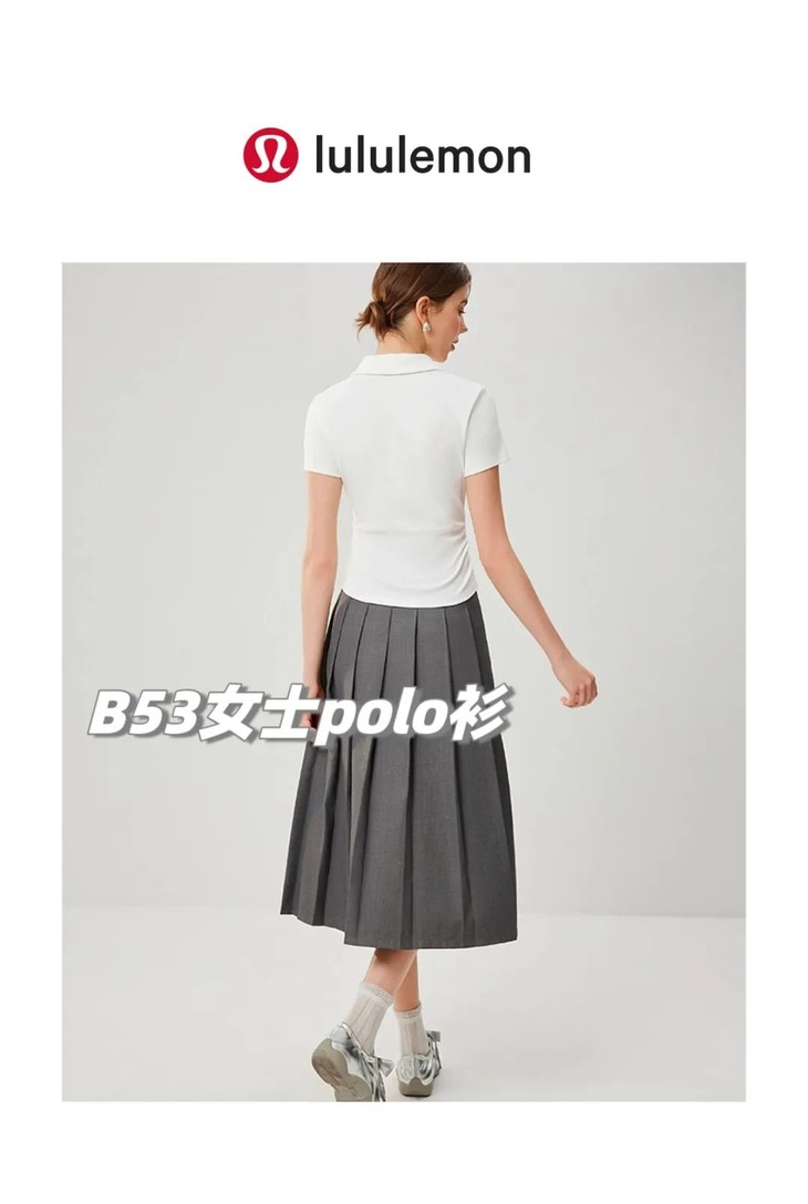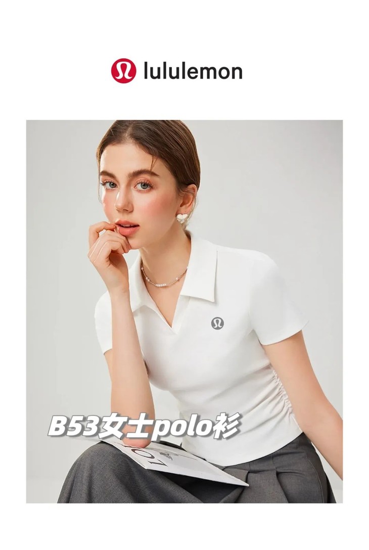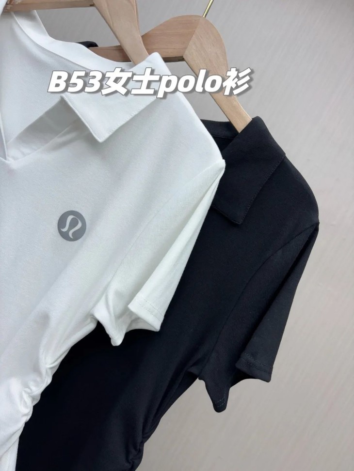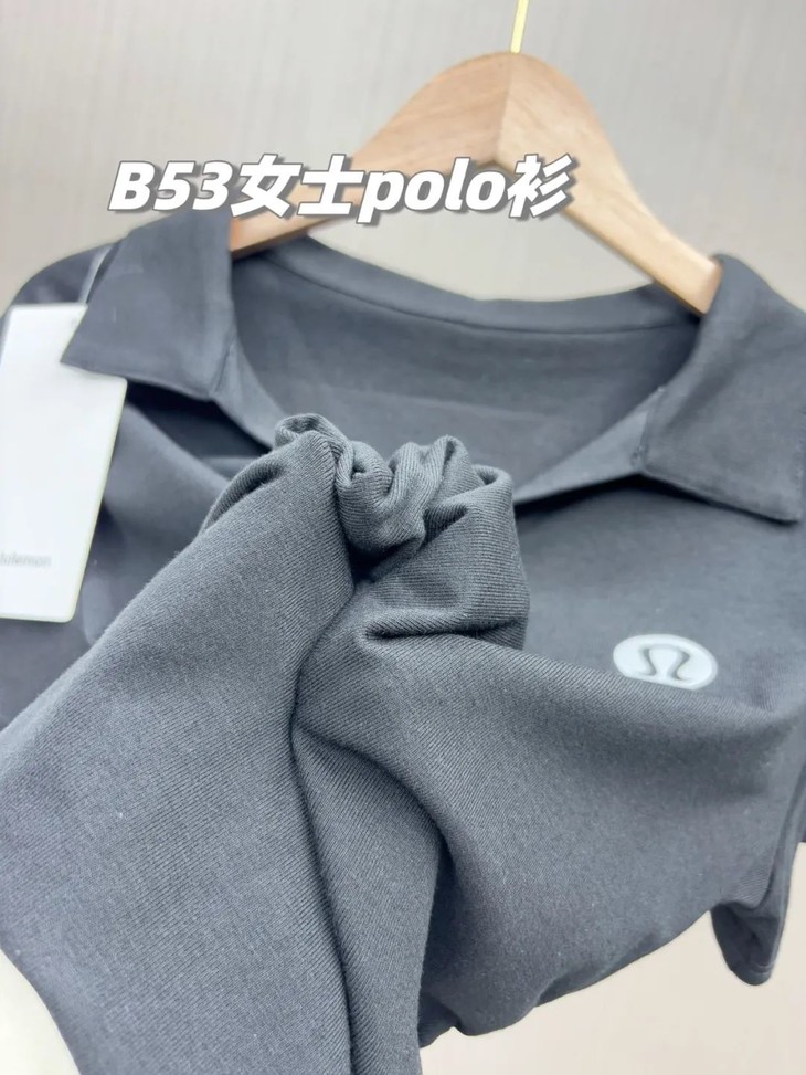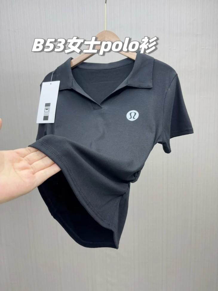 LULU2025夏季新款商务女神范小蛮腰POLO,高弹力短袖T恤,修身遮肉运动上衣!绝对服lulu家的设计师,真的超级百搭好看,褶皱小蛮腰+商务小翻领,不爆都难! 品名:B53款lulu女士polo衫 杭州汉威贸易公司订单,供专柜的订单,今年的最新款,第一批出货后尾巴,不到两百包,全部原装原料的,放心拿啦! 原厂原单进口超细螺纹棉,贴身穿真的很舒服,弹力无敌大,绝对的最易清洗、易干的面料,不闷汉,透气性良好!弹力超级大,柔软又细腻,穿上真的巨舒服!超级轻柔,无任何束缚感,好到不知怎么形容了,手感垂顺,面料柔软关键是,谁穿谁好看,还不挑肤色! 立体收腰的瑜伽版型的设计,修身腰线,完美遮肉不臃肿,尽显好身材。回弹力好,不松垮不变性,上身超级显精神的! 商务范十足再加上性感的小蛮腰设计,效果超乎想象,只能自己脑补了! 适合任何年龄段,任意场合,脑补上身效果,现货不多,铁粉闭眼冲!