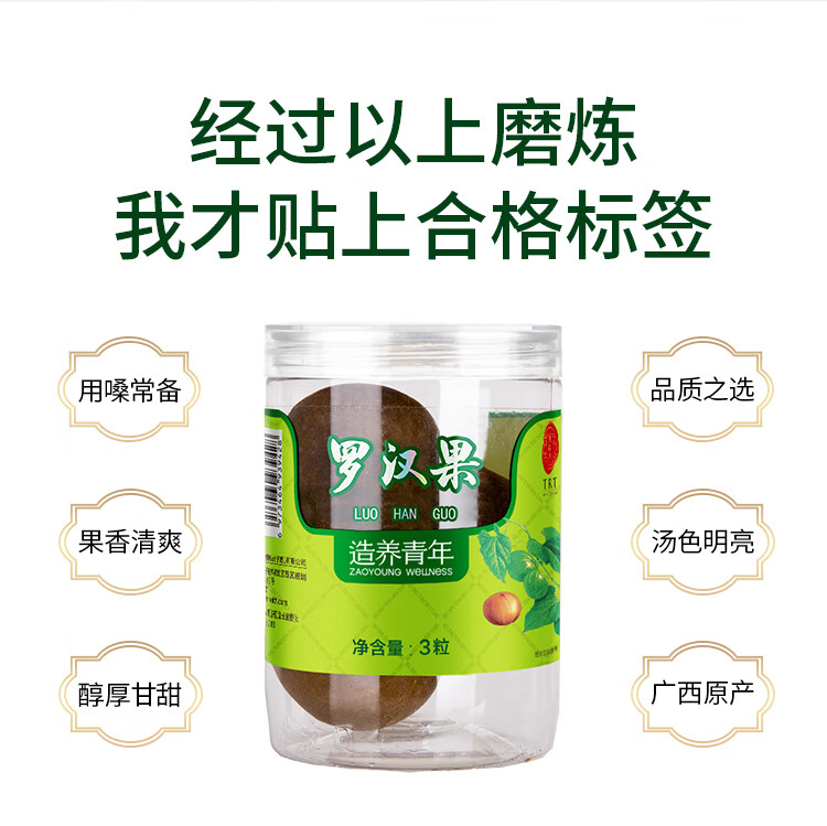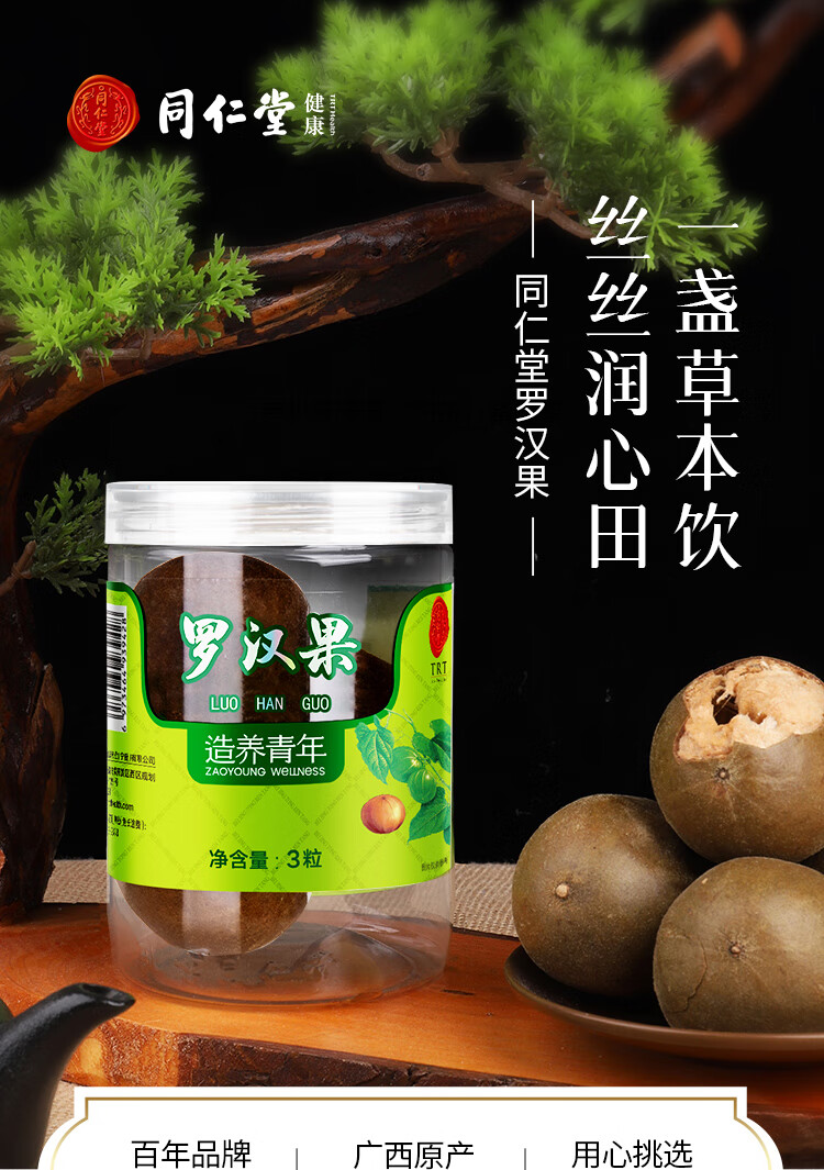 【正宗同仁堂品牌】北京同仁堂 罗汉果3粒/瓶*2瓶装 广西罗汉果 颗粒饱满 绒毛丰富SY