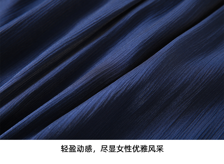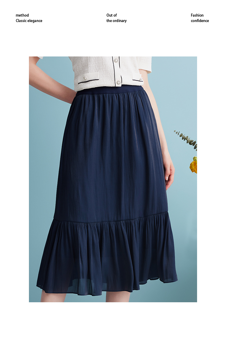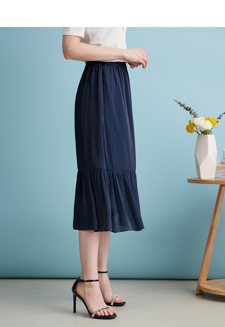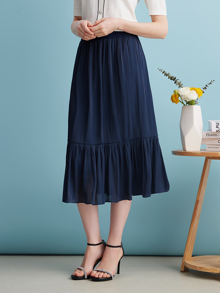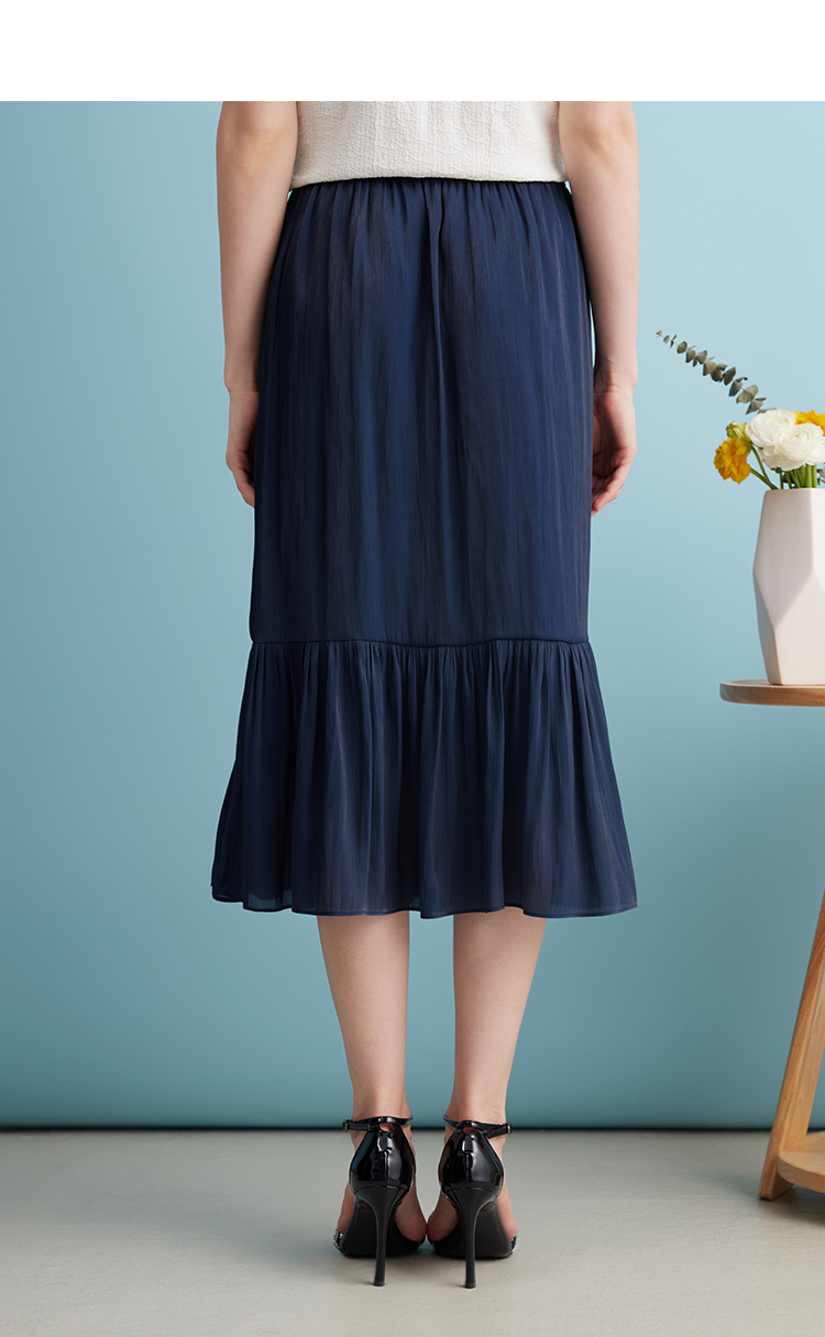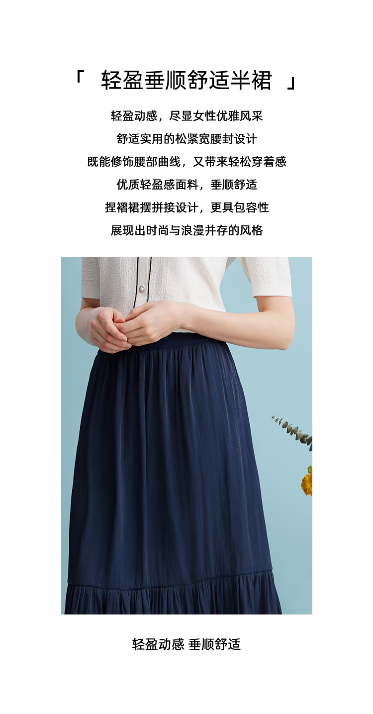 EITIE爱特爱夏季新款垂坠压褶文艺感通勤显瘦深蓝色半身裙B2406308