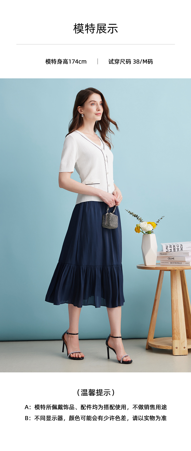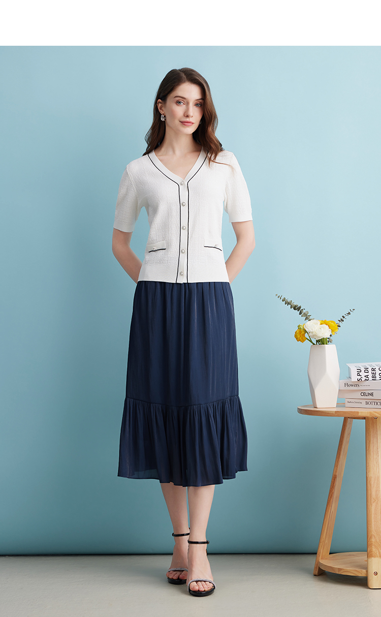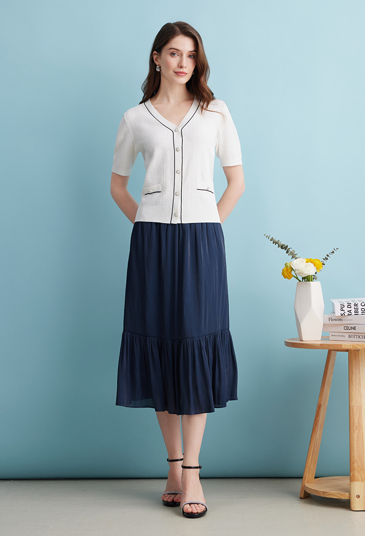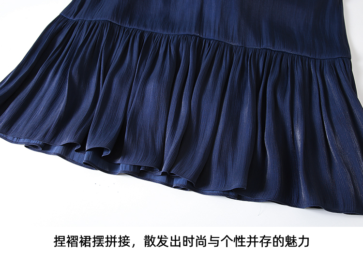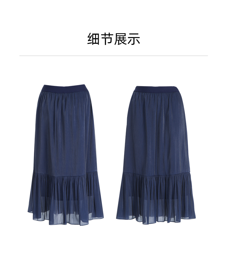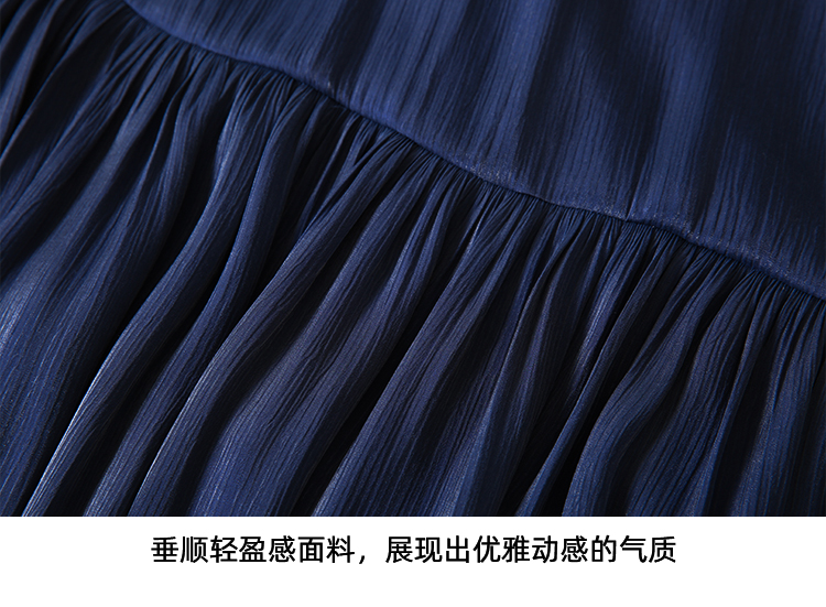 EITIE爱特爱夏季新款垂坠压褶文艺感通勤显瘦深蓝色半身裙B2406308