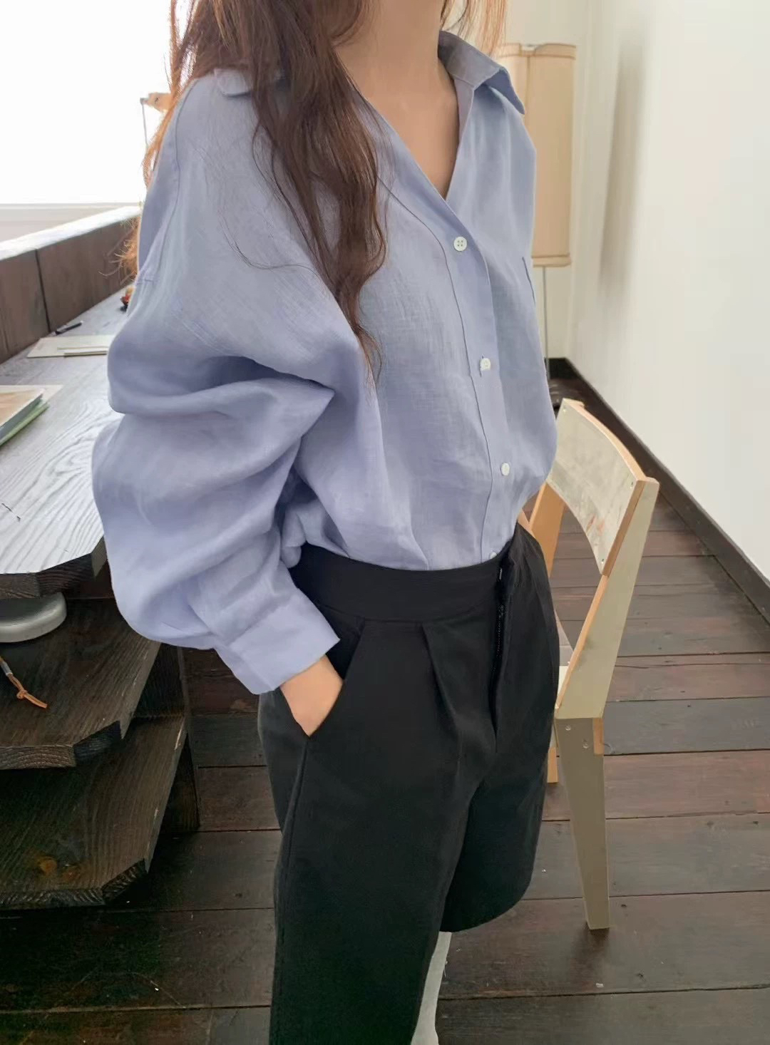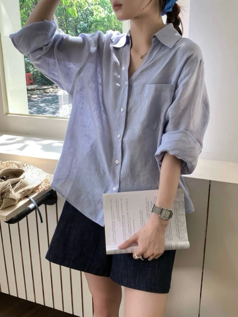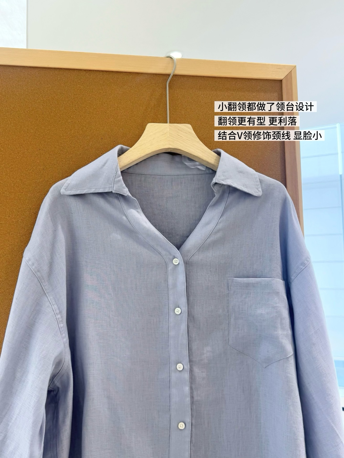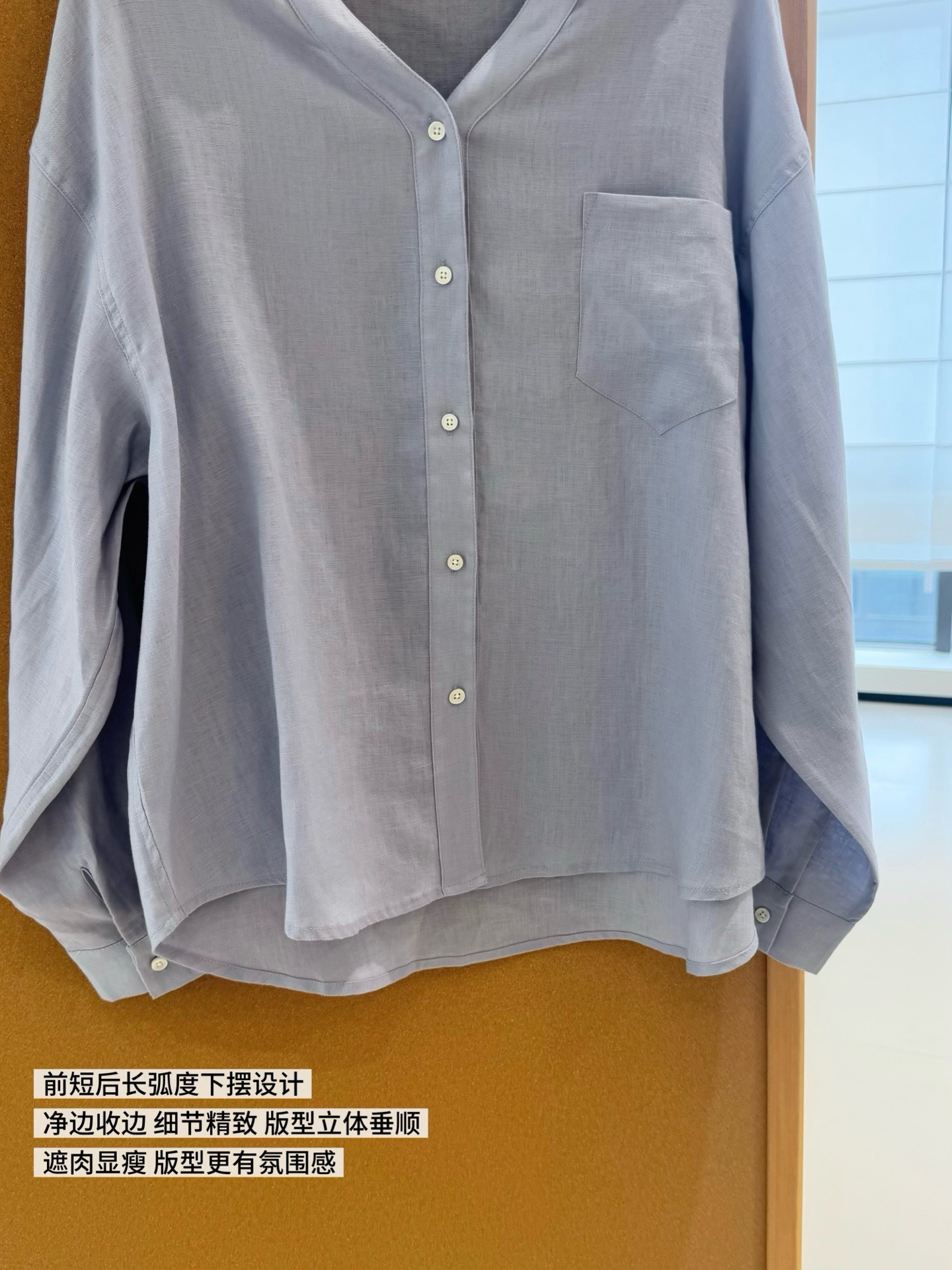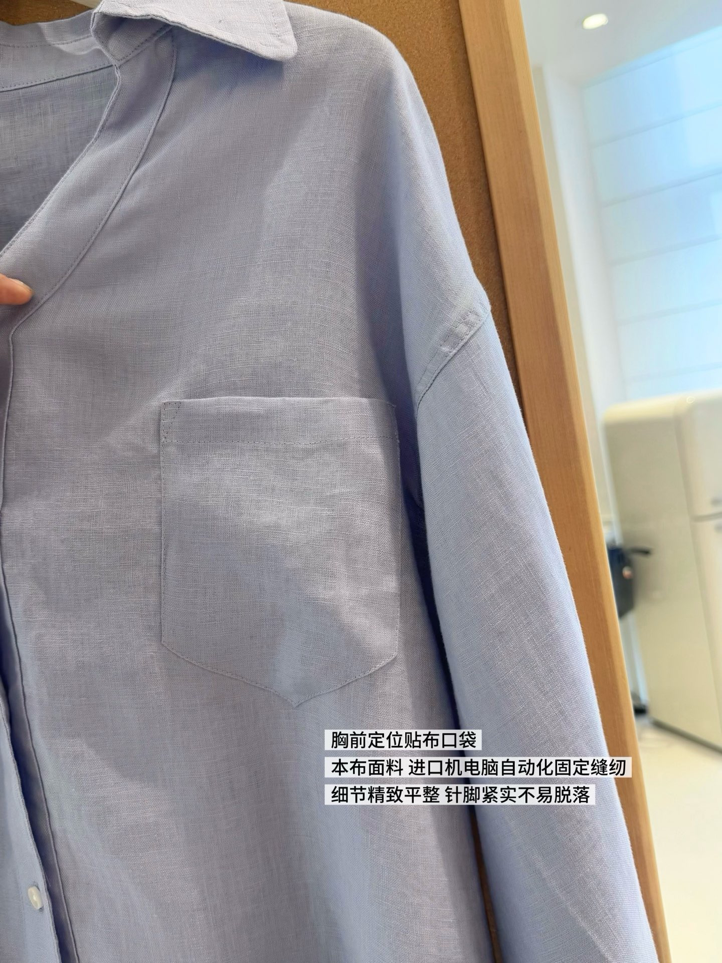 韩国h家新款口袋亚麻衬衣衬衫 初秋这样穿很清爽呀