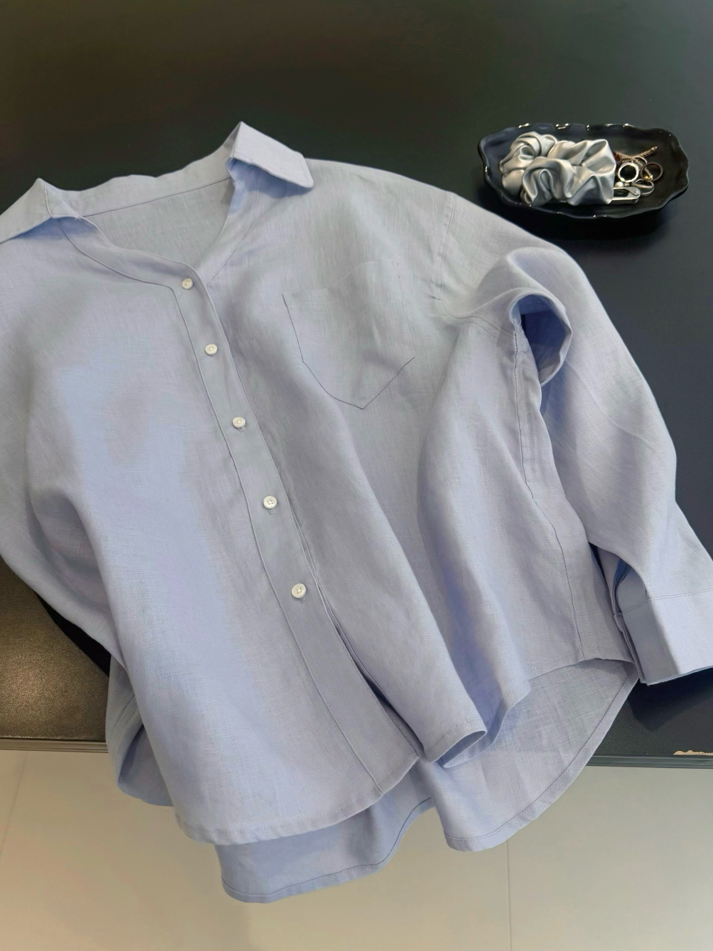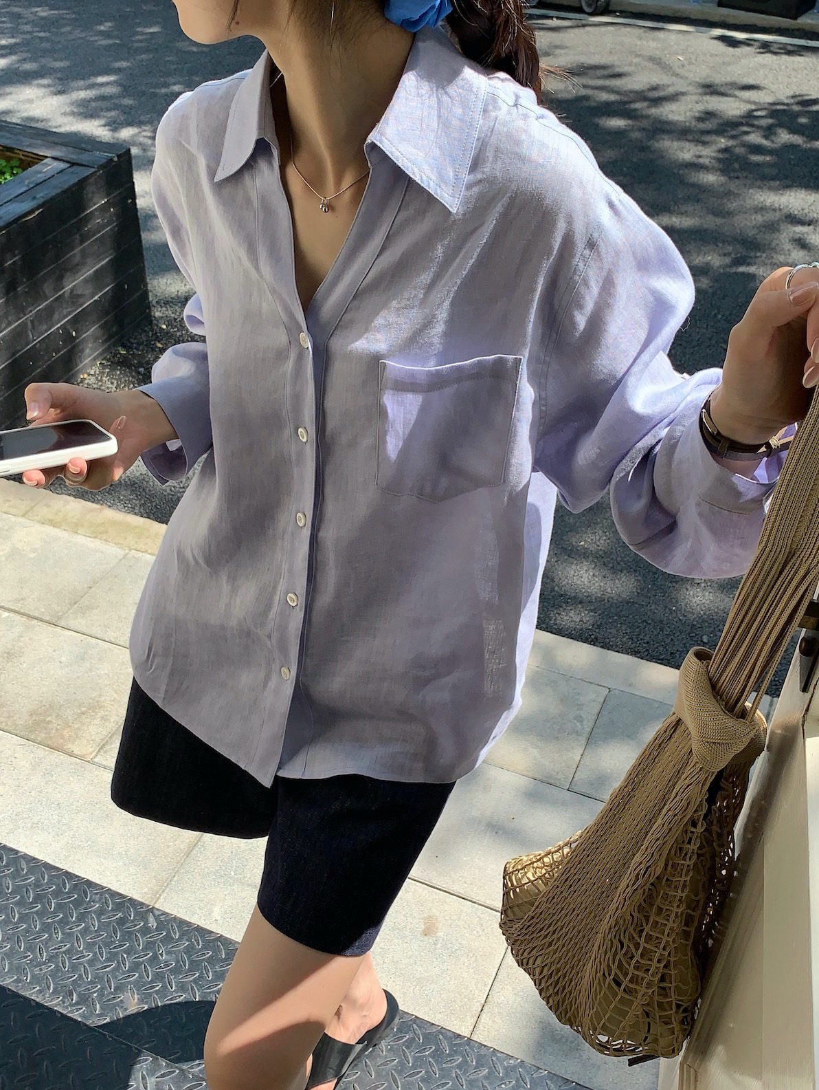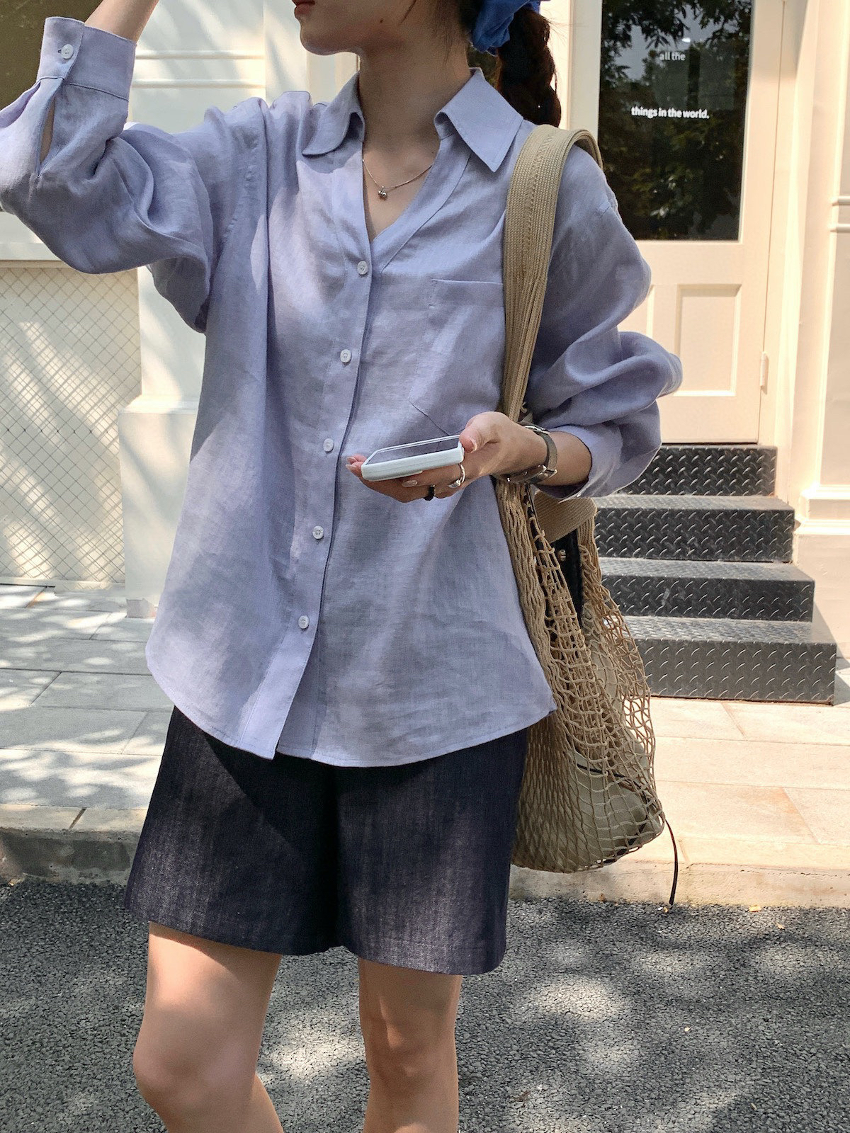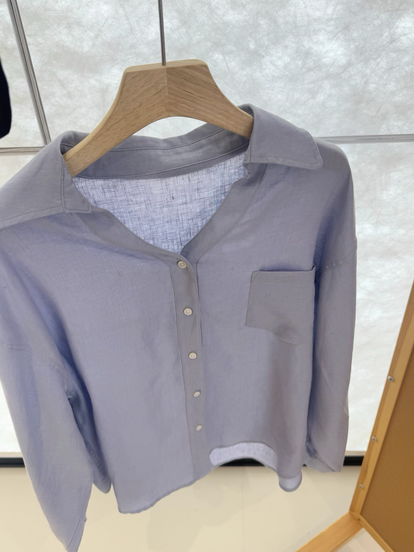 韩国h家新款口袋亚麻衬衣衬衫 初秋这样穿很清爽呀