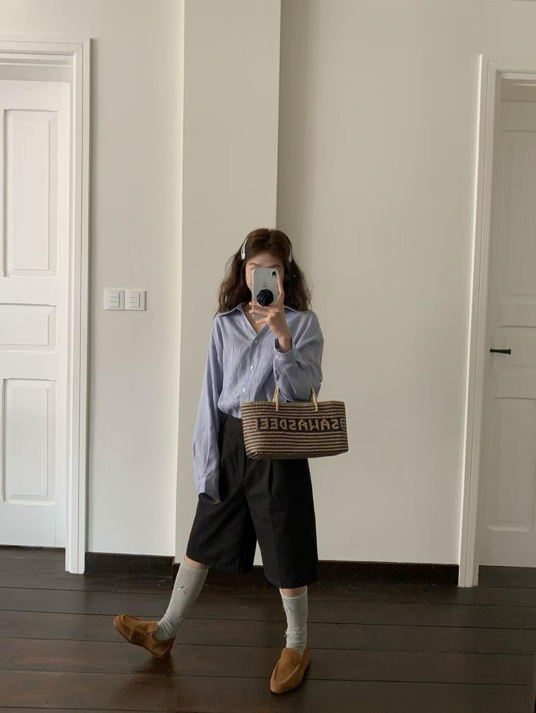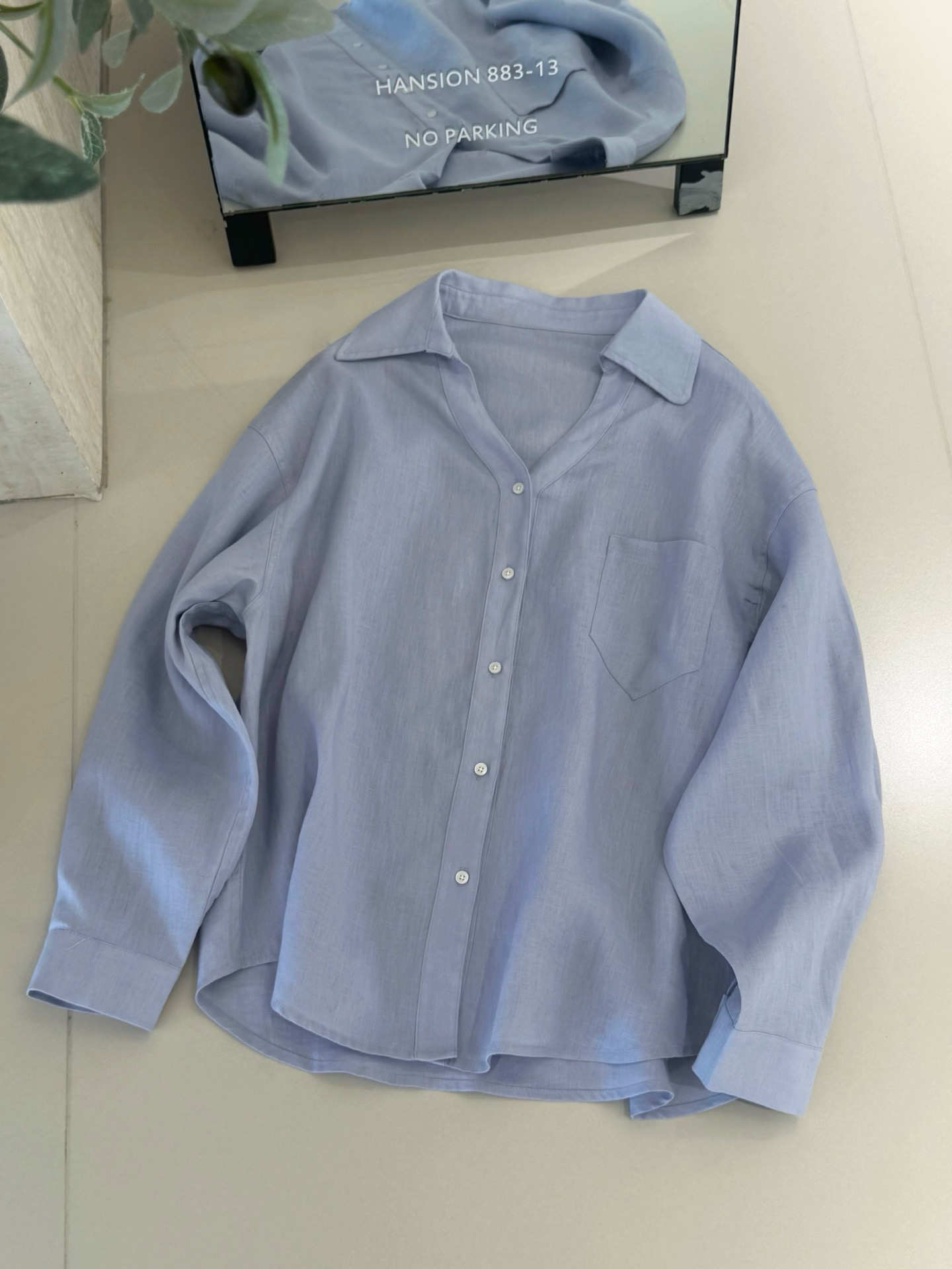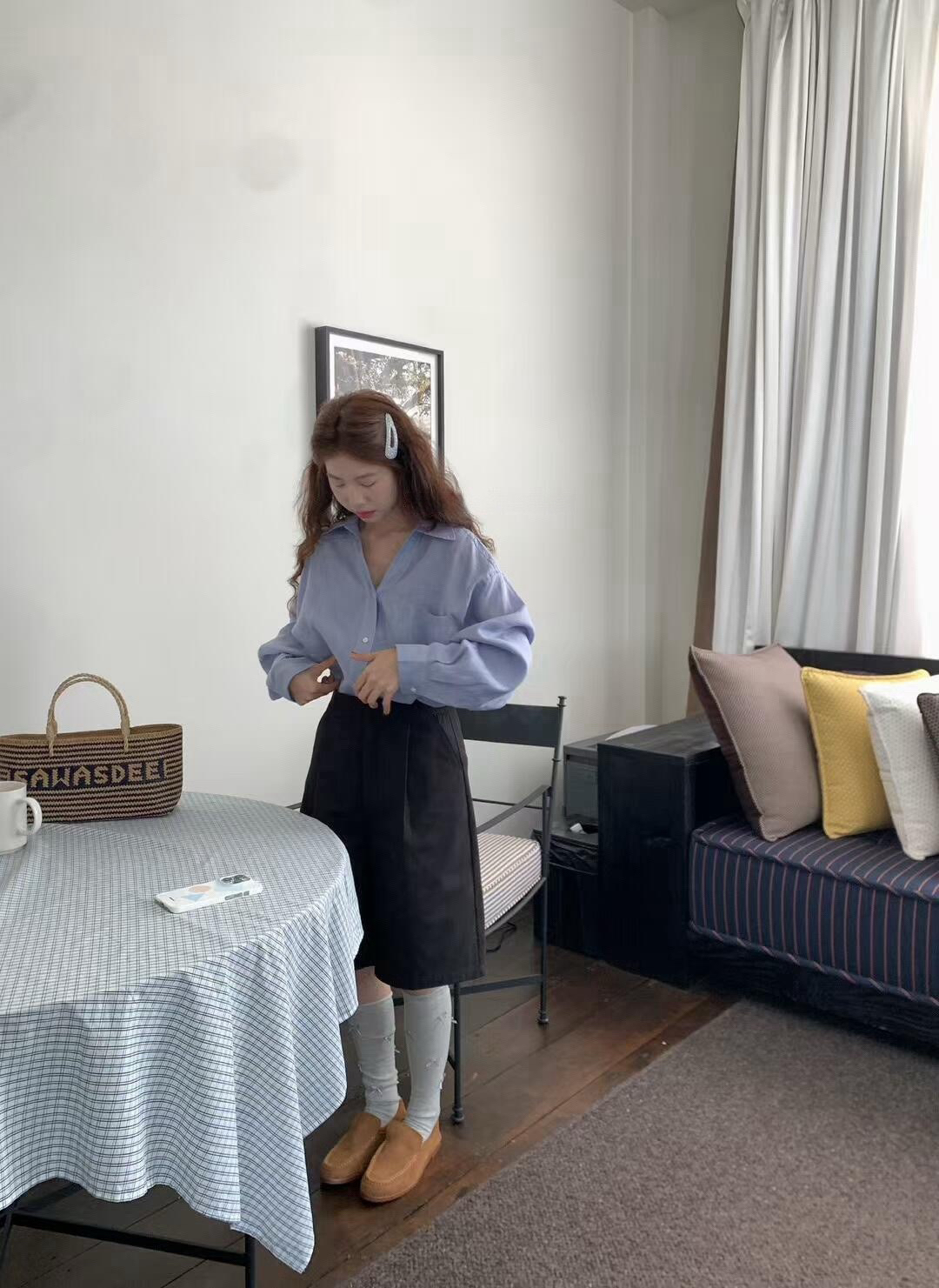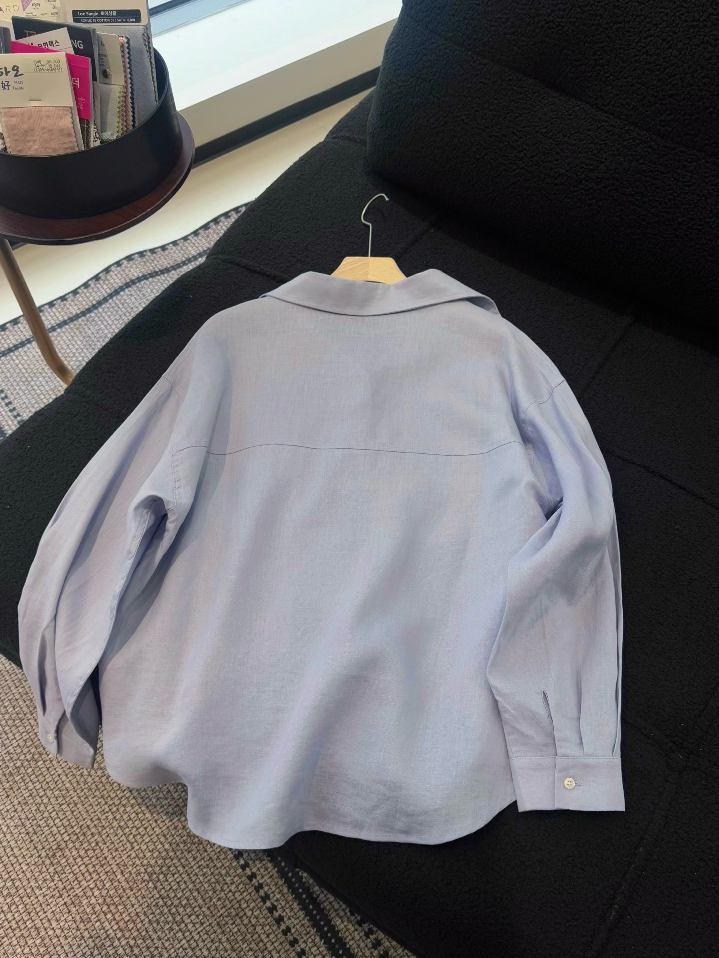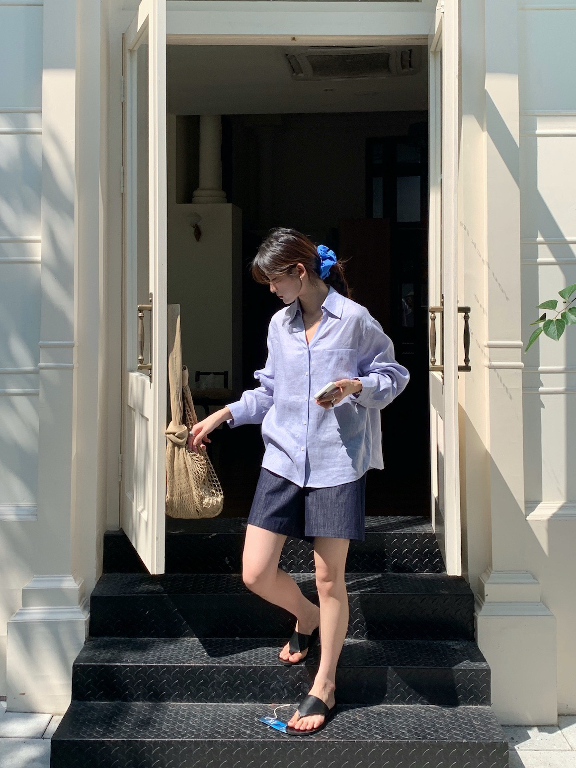 韩国h家新款口袋亚麻衬衣衬衫 初秋这样穿很清爽呀