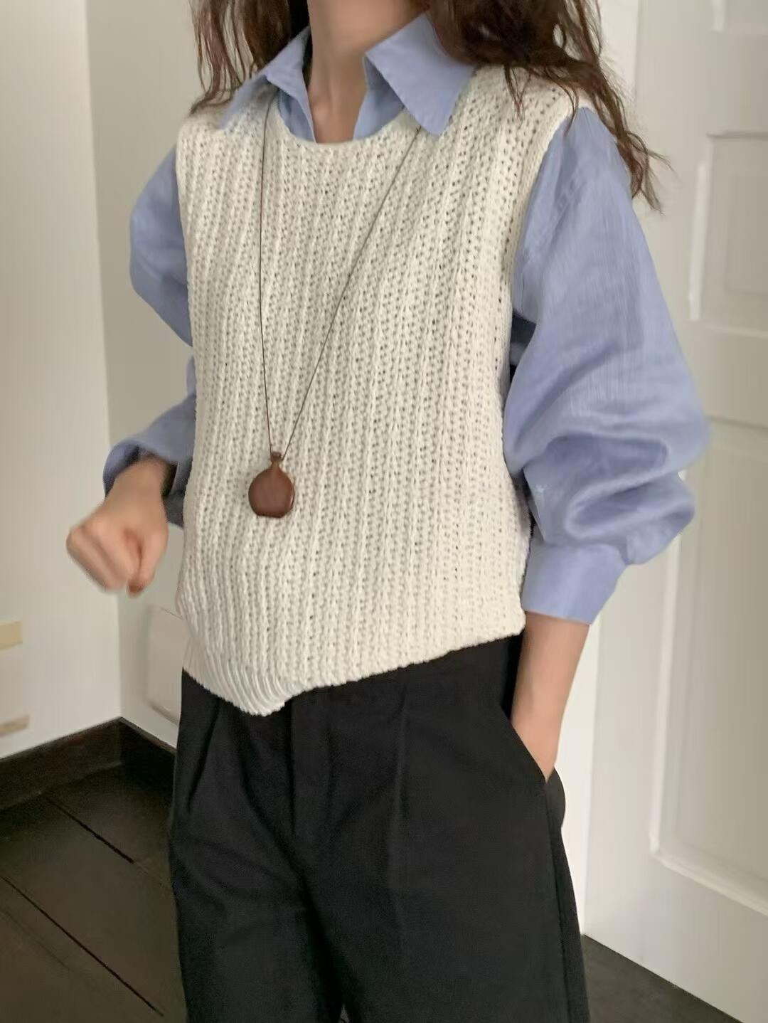 深秋叠搭各种针织马甲、卫衣、毛衣……也很好看